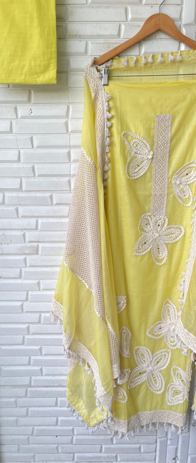 😊 mul cotton fabric dupatta with crotia border lace and crotia insertions and tassel lace
