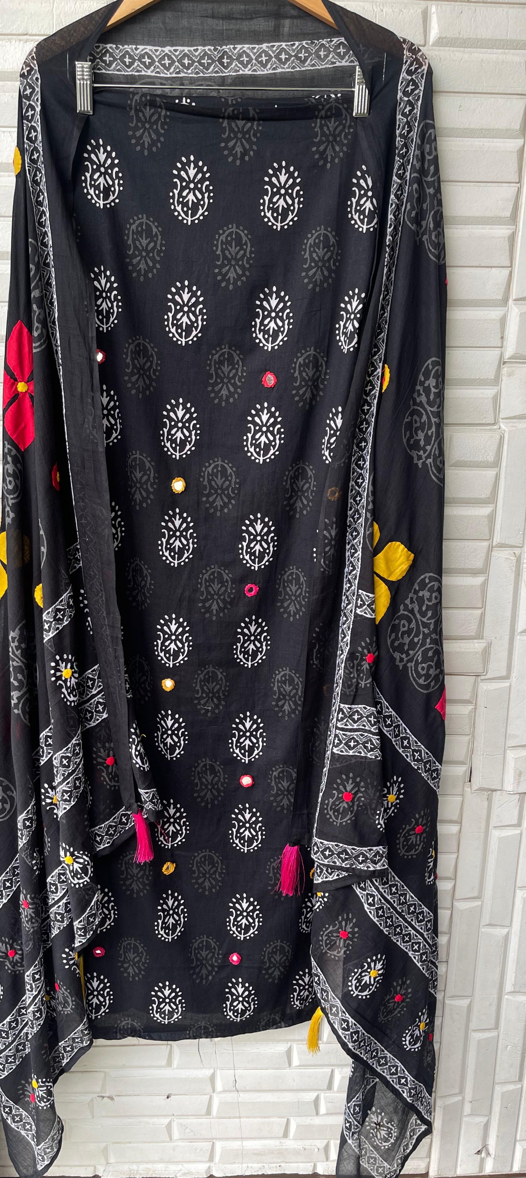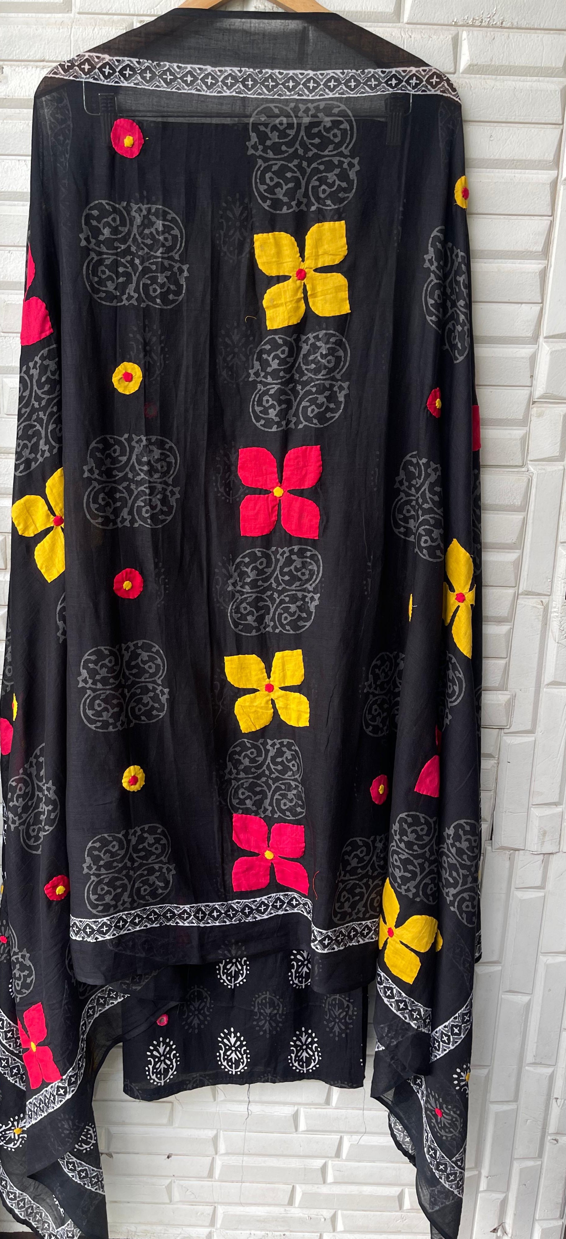 😊 pure Mulmul cotton fabric dupatta with latkans and stunning appliqué work embroidery