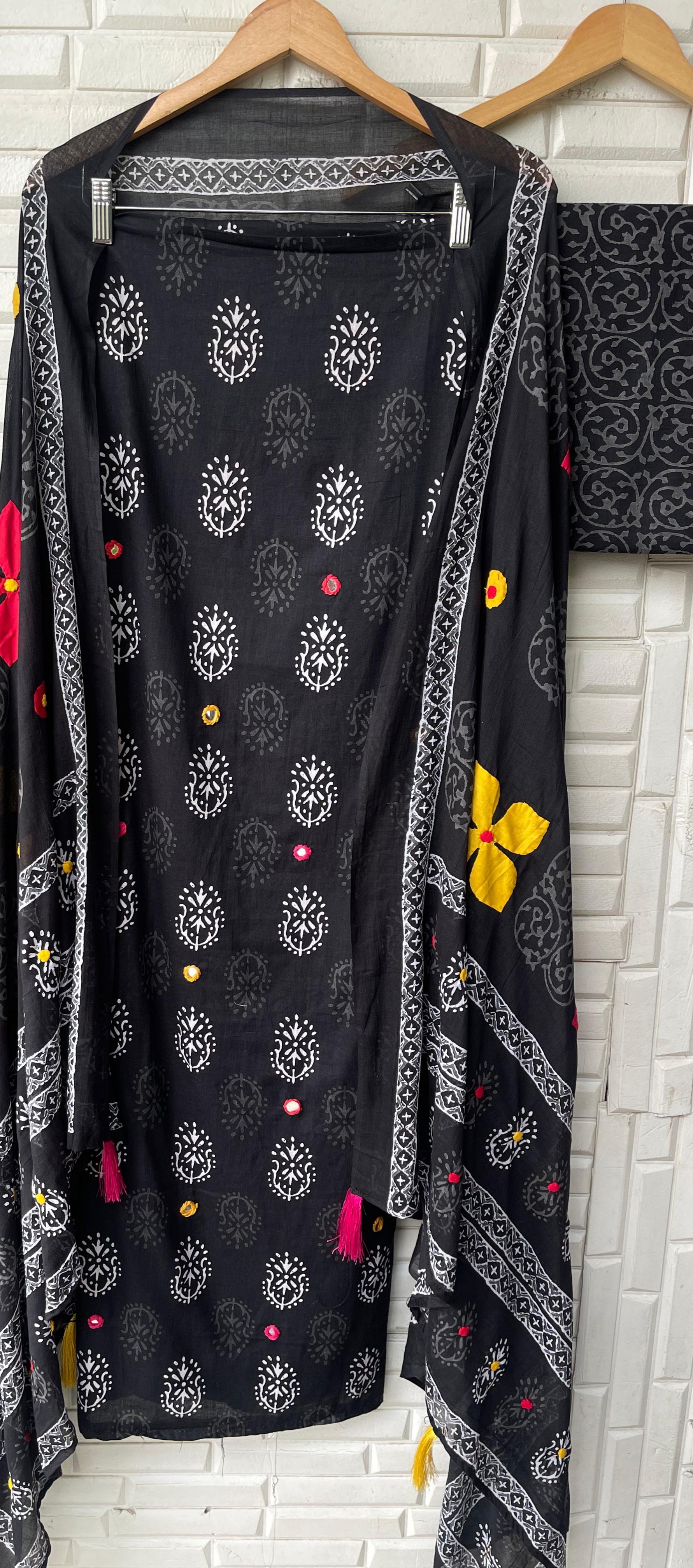 😊 pure Mulmul cotton printed fabric unstitched shirt with mirror work resham embroidery