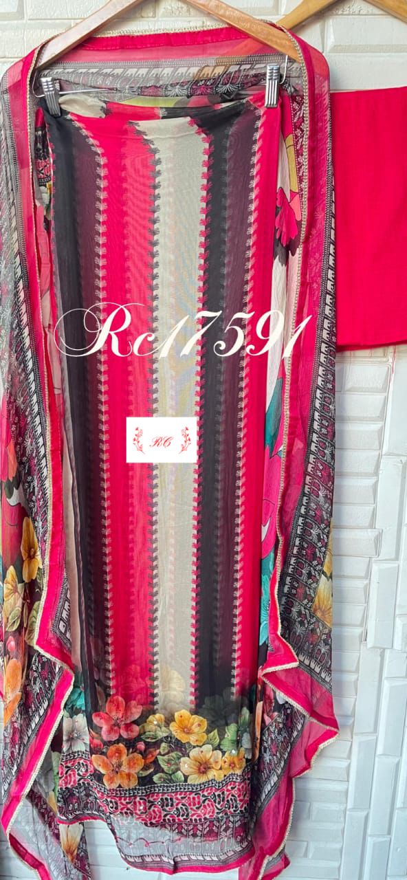 Muslin burberry printed unstitched ladies suit Rc17591