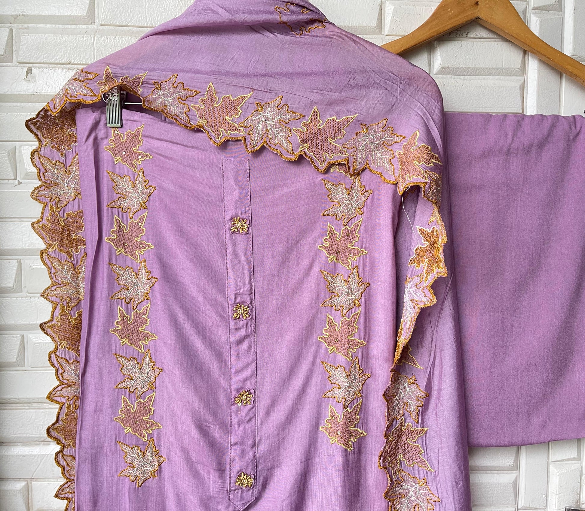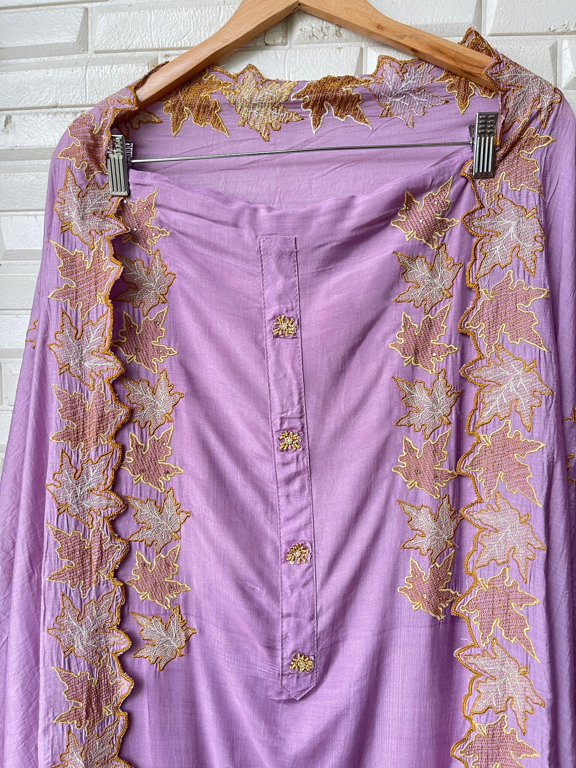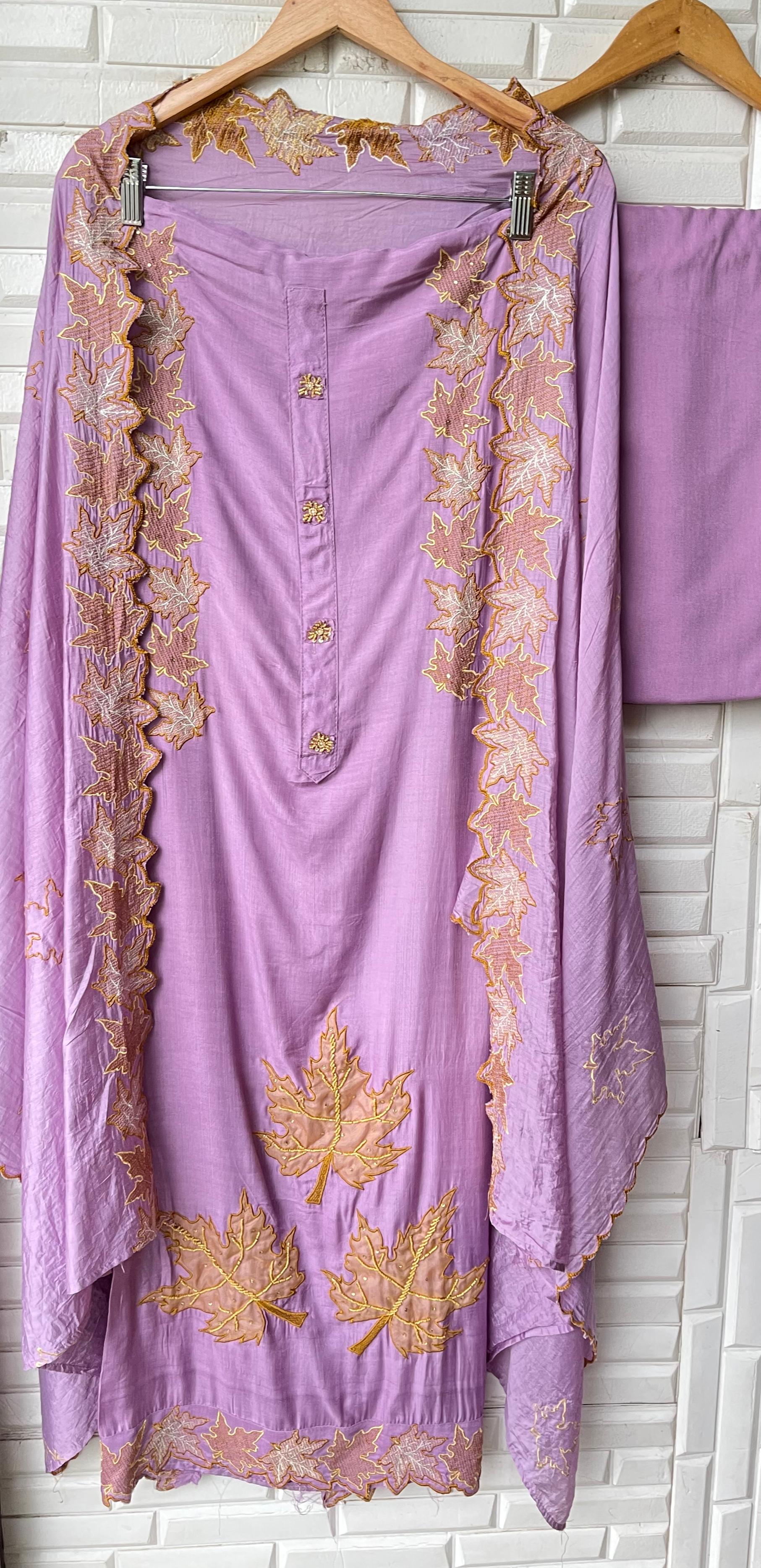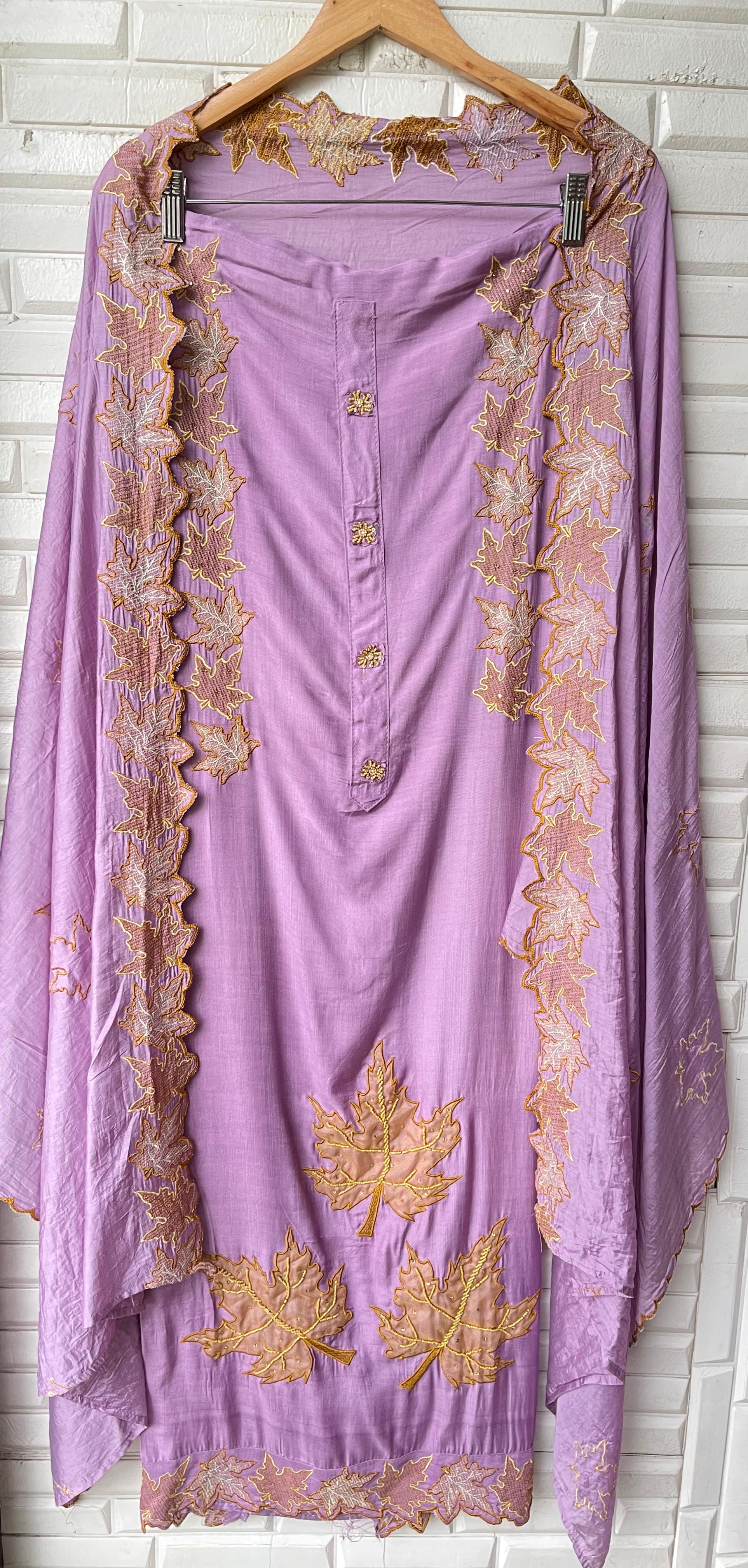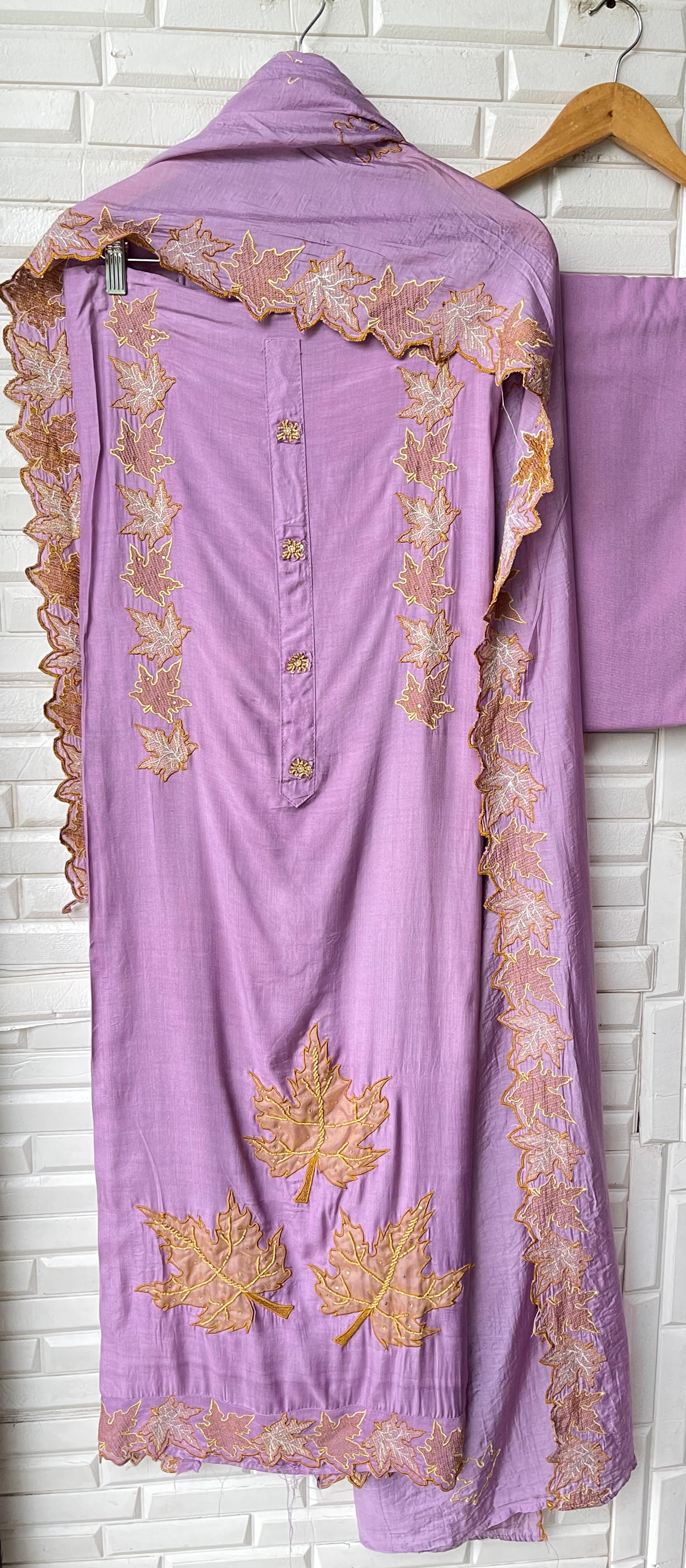 😊 muslin cotton fabric unstitched shirt with patchwork and resham embroidery plus scalping with pearl highlighting
