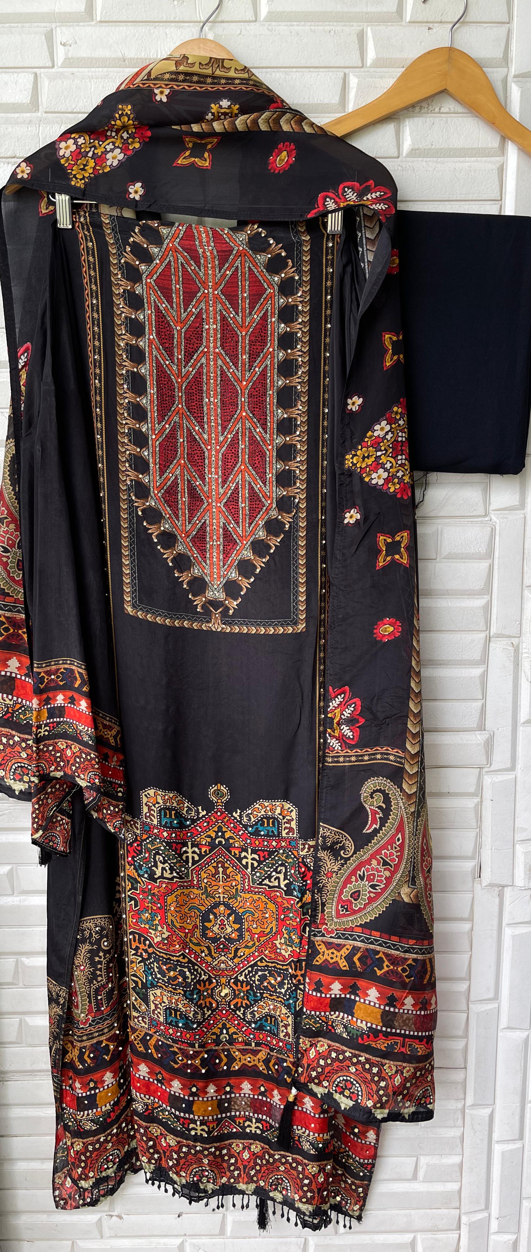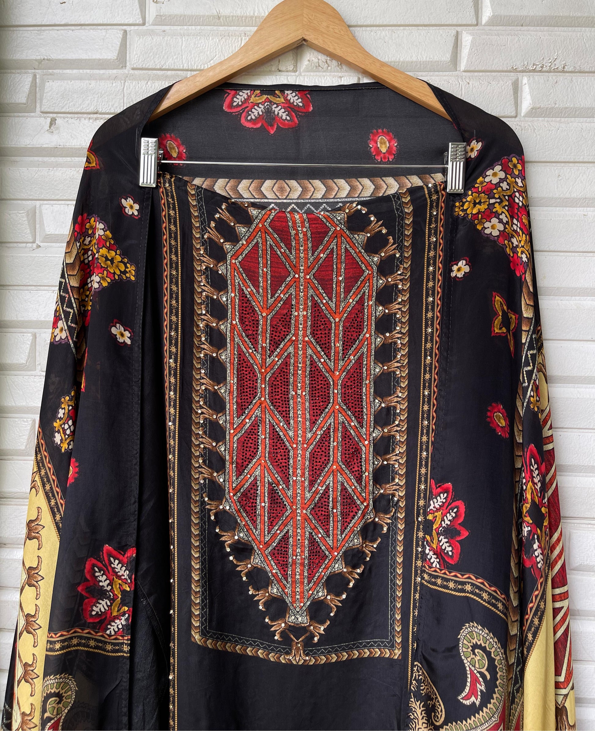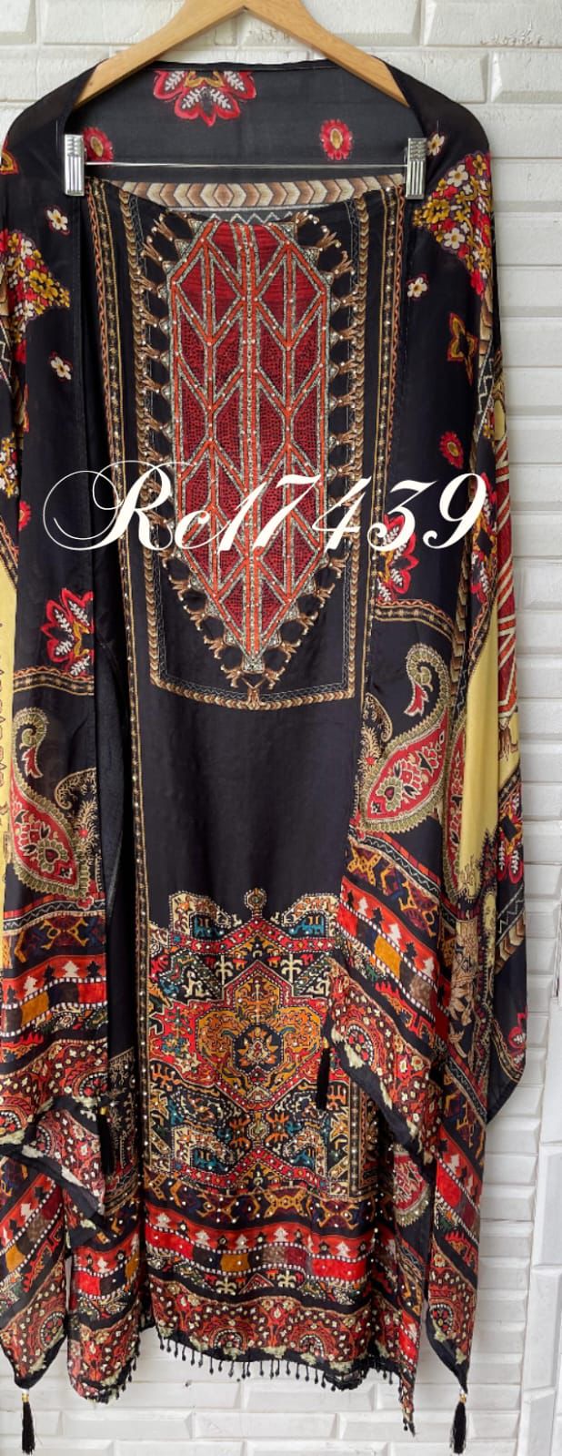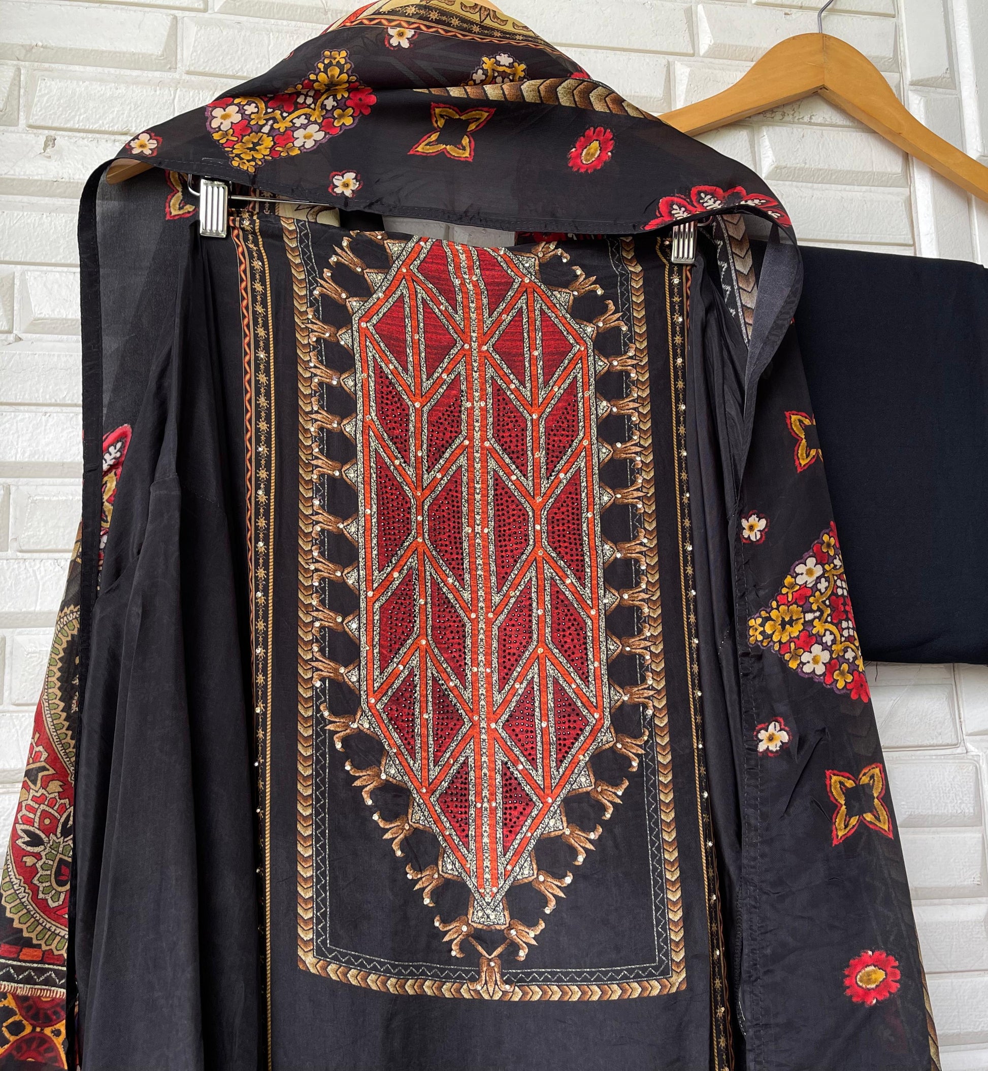 😊 muslin crape printed fabric unstitched shirt with mirror work swarowski highlighting