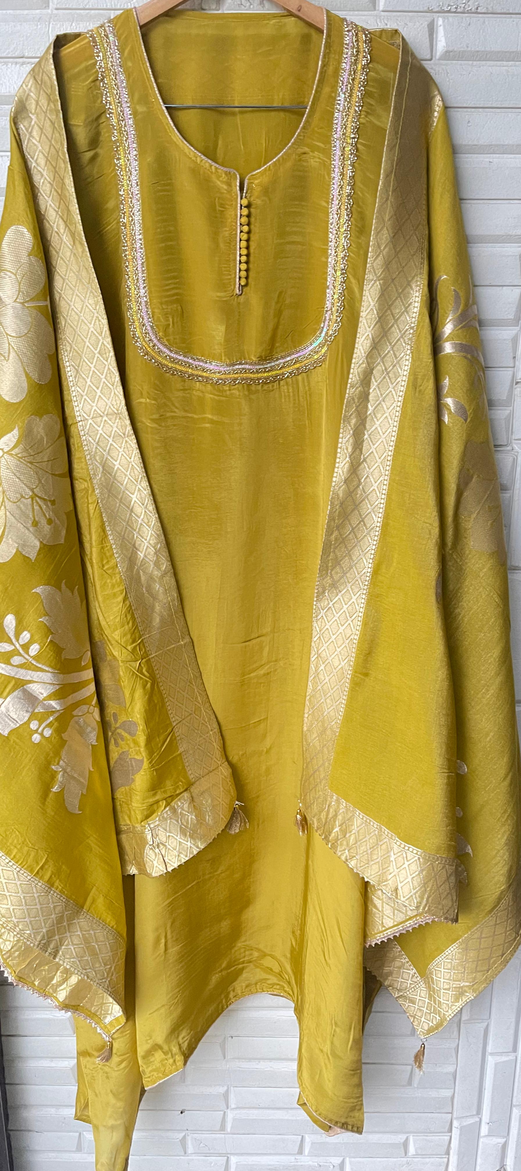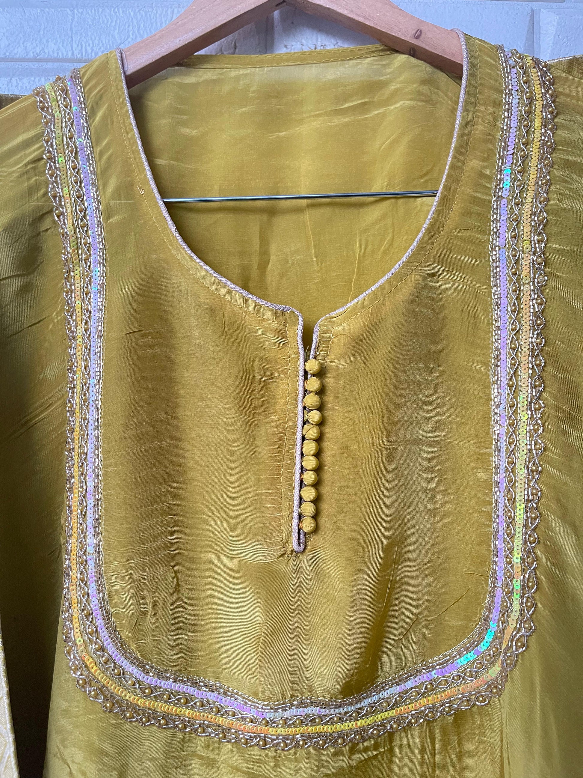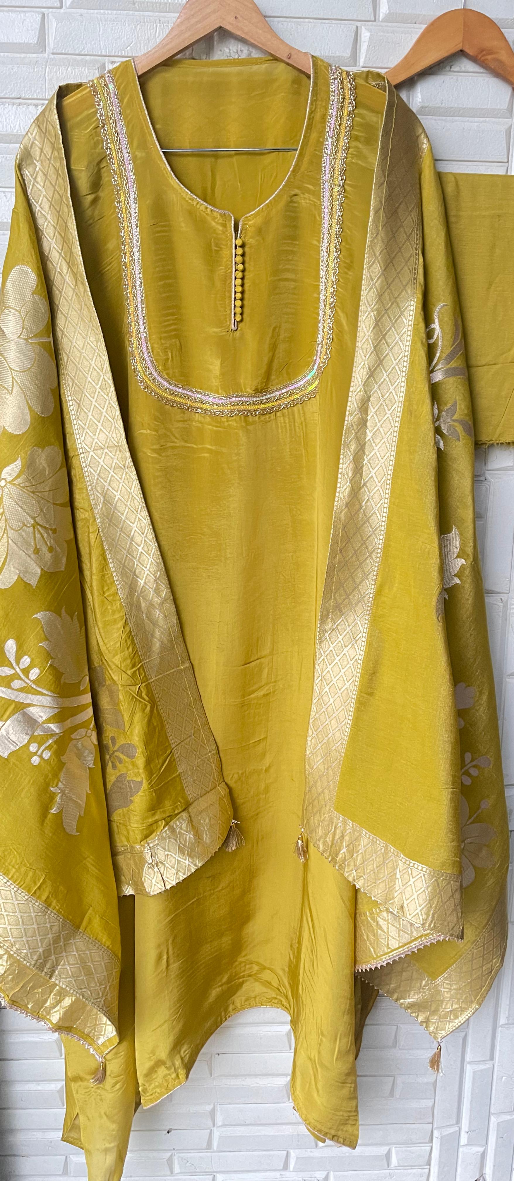 😊 muslin crape fabric unstitched shirt with kutdanna sequence pearl zari embroidery