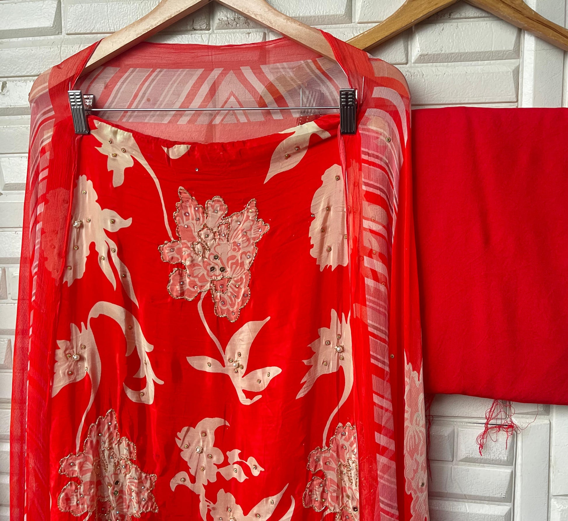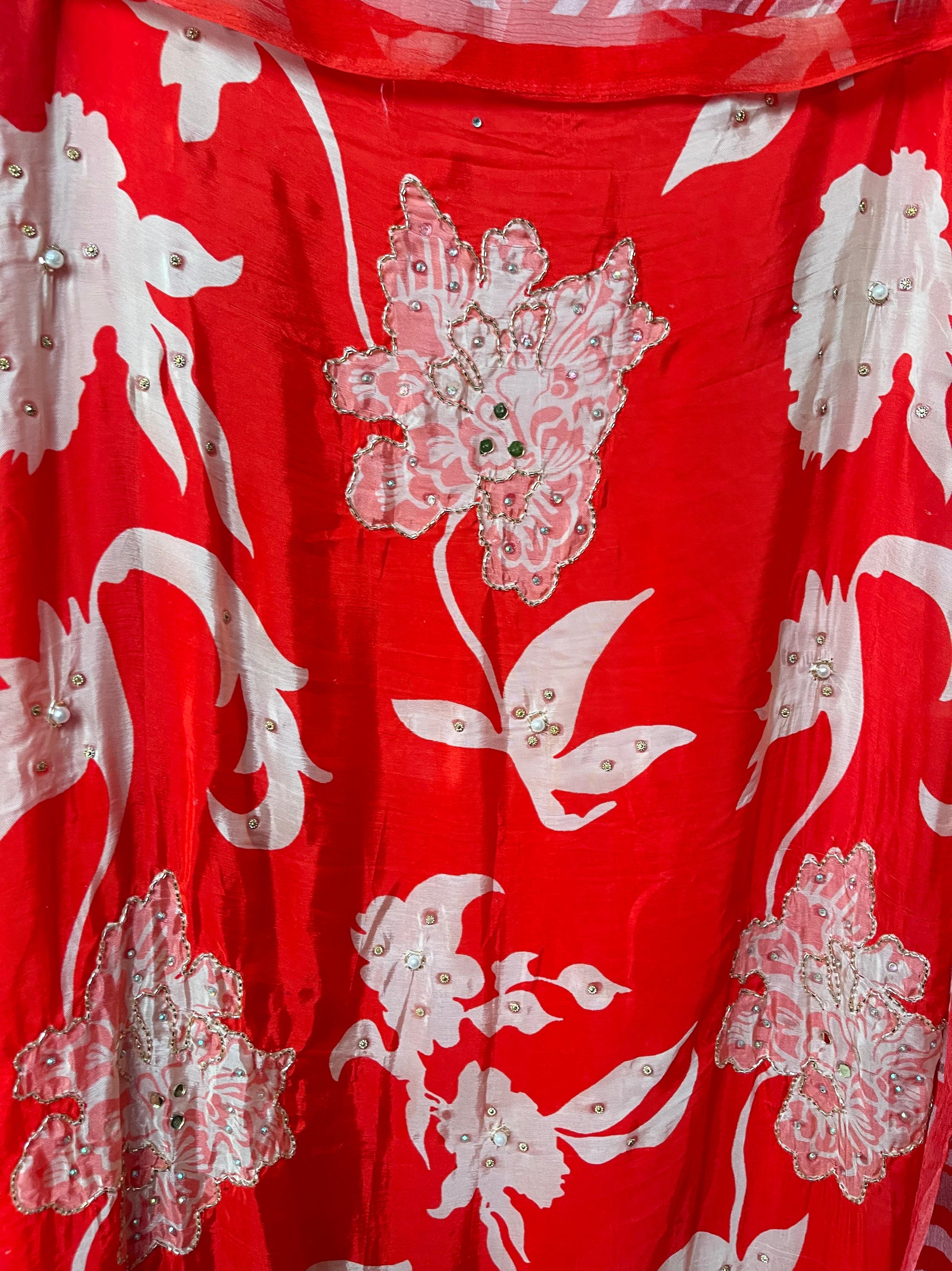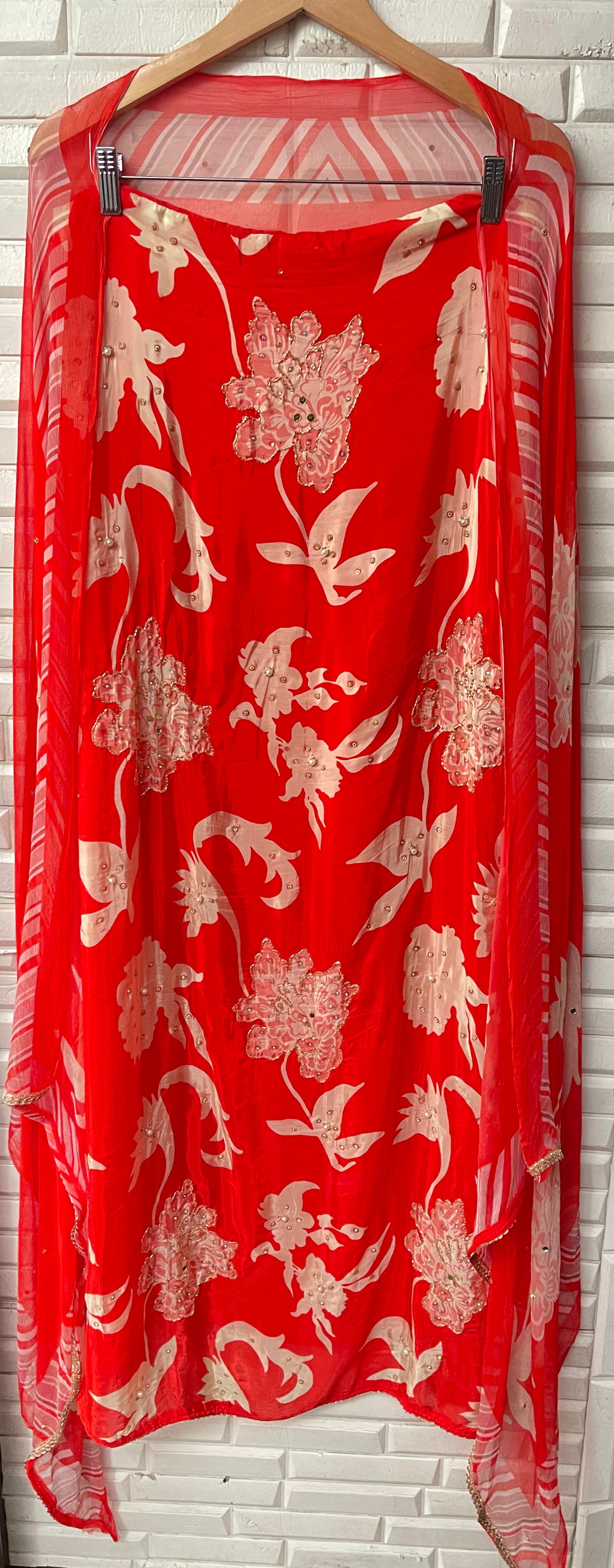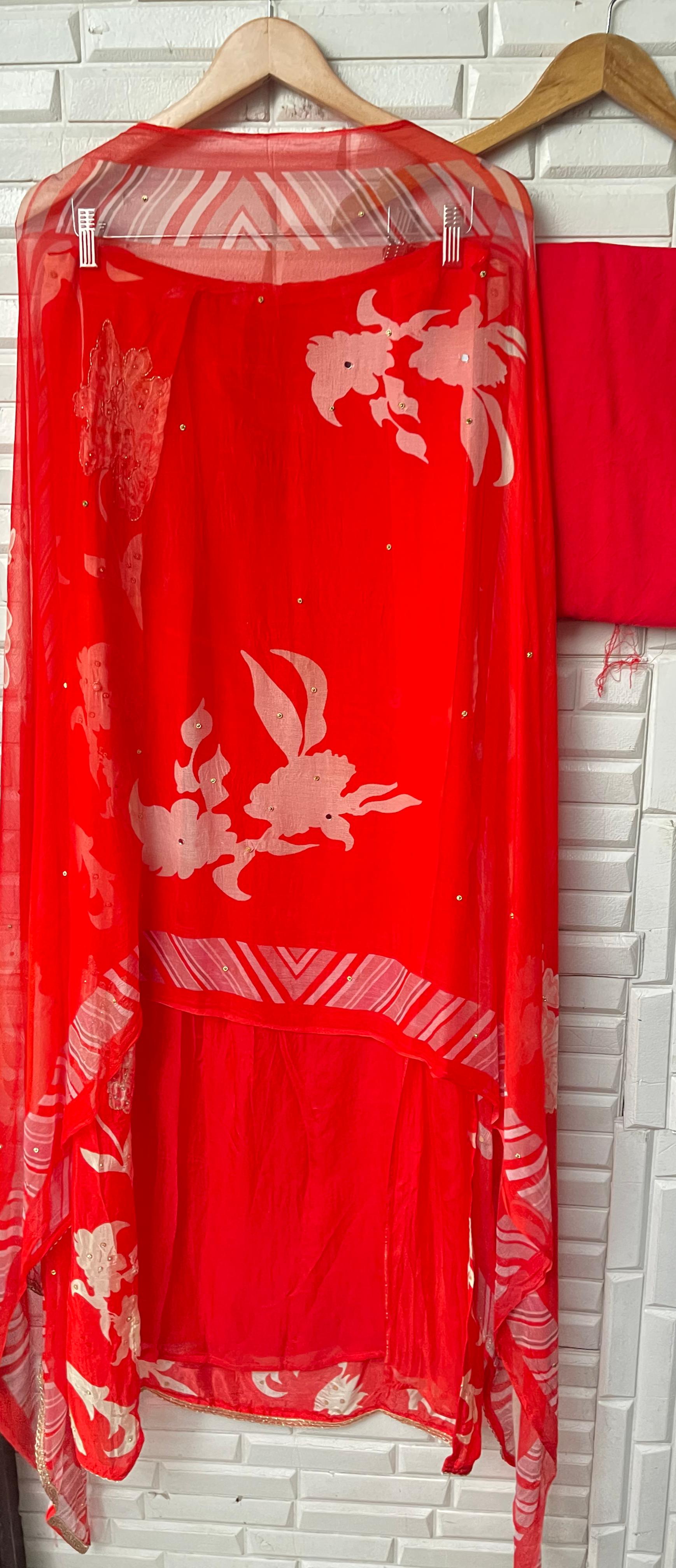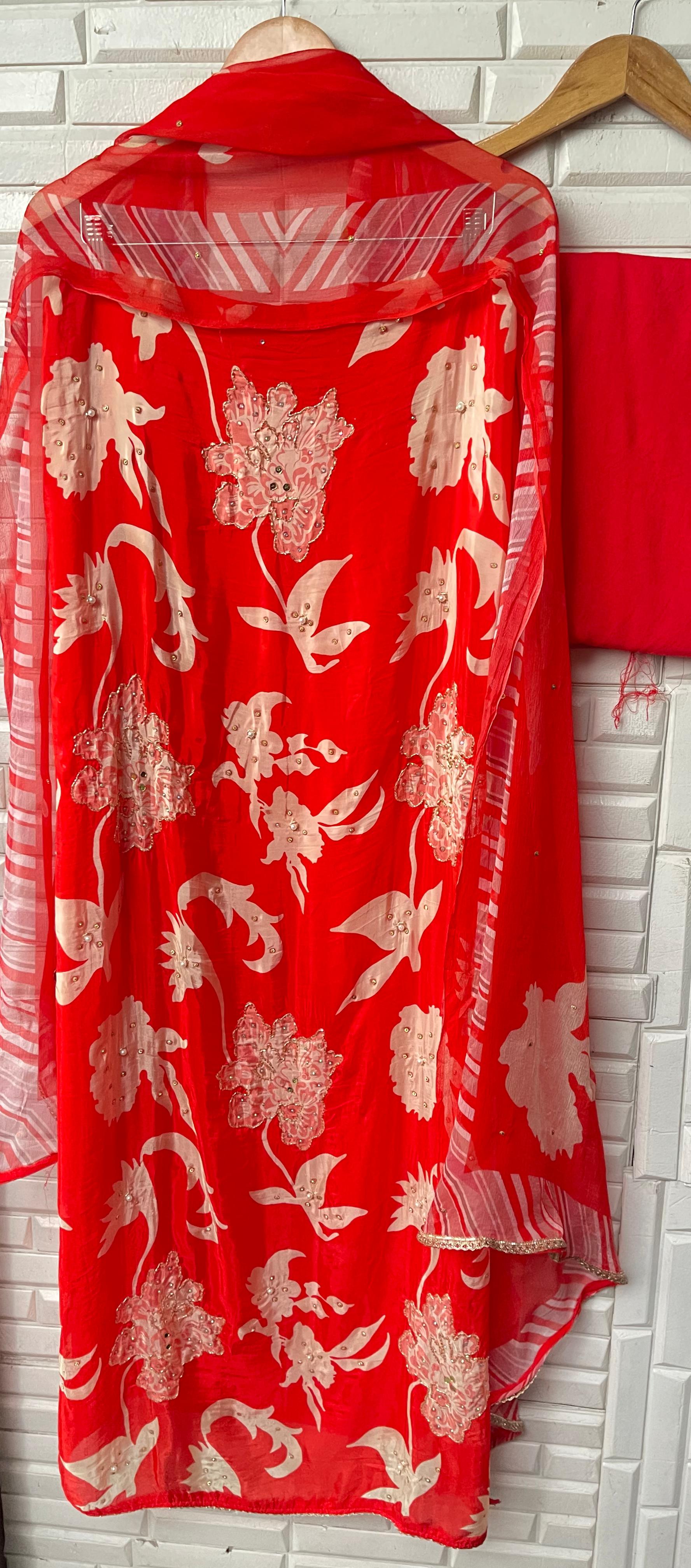 π muslin crape printed fabric unstitched shirt with mirror work kutdanna sequence pearl swarowski embroidery