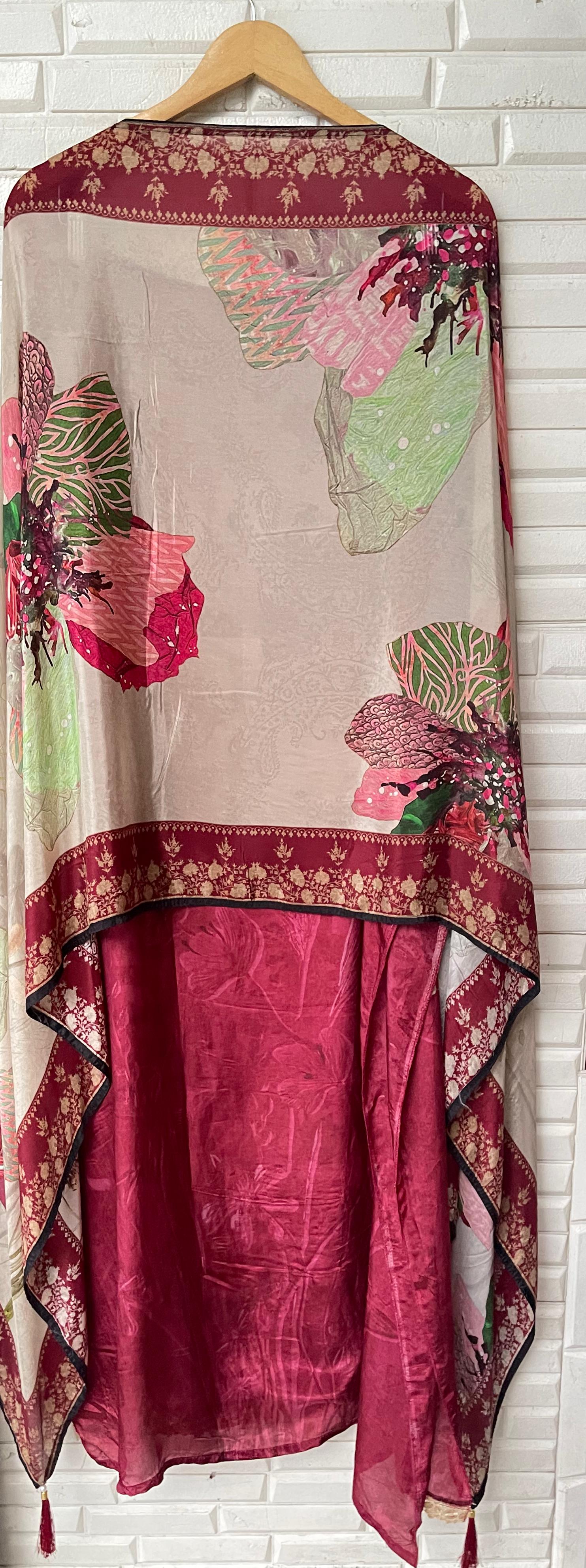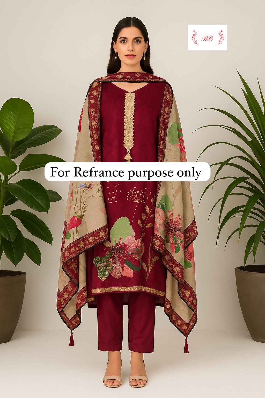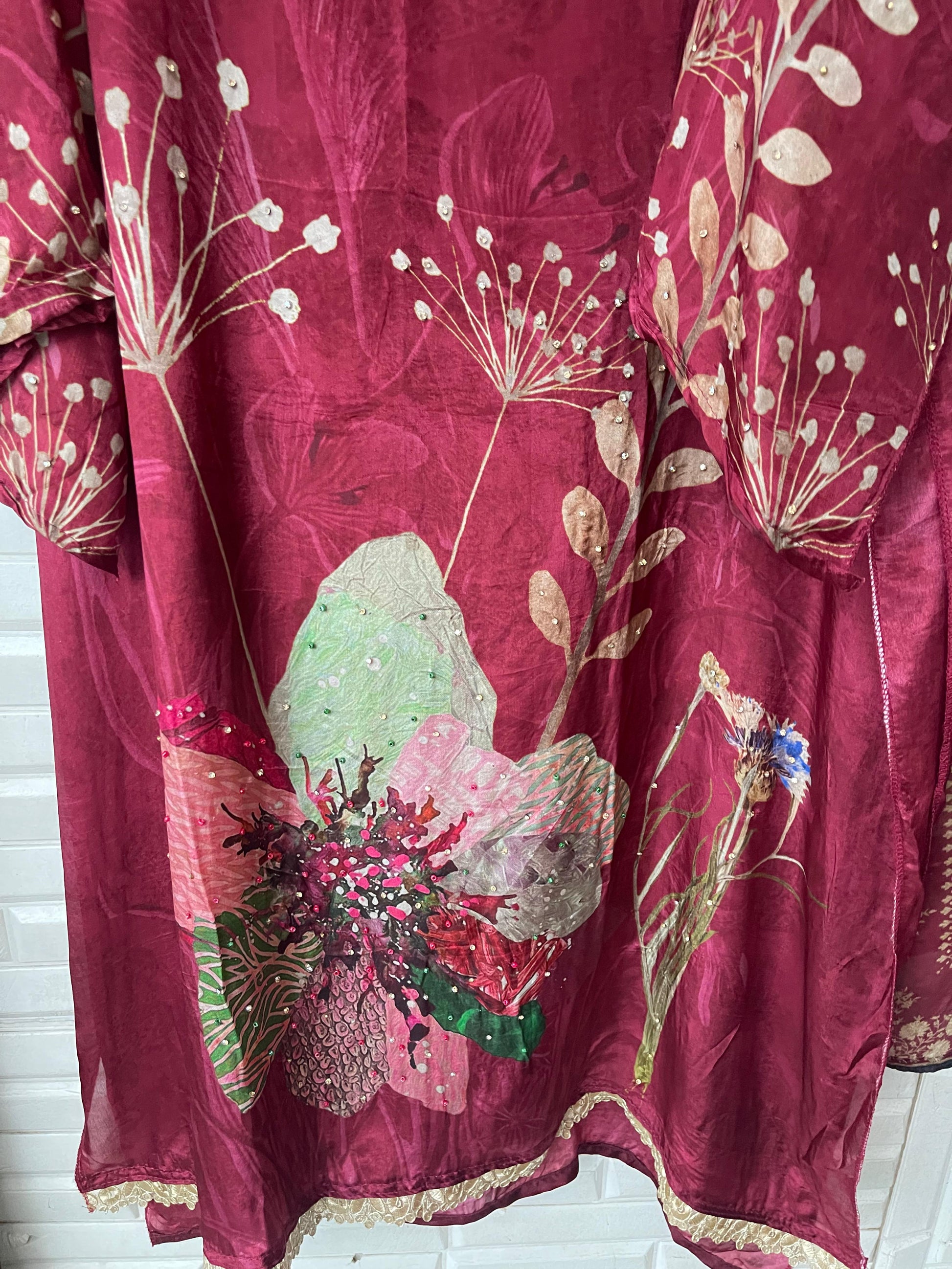 😊muslin crape unstitched shirt with jarkan and zari embroidered kurta Patti