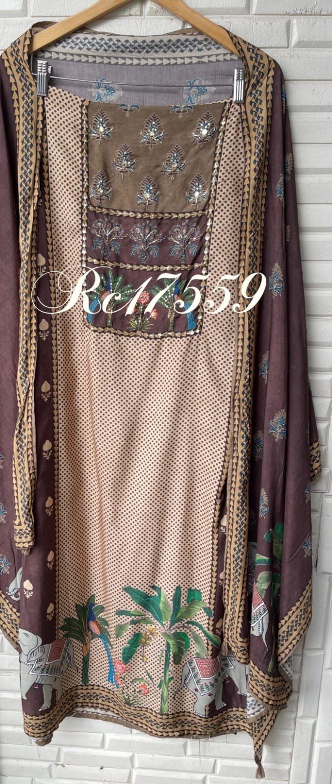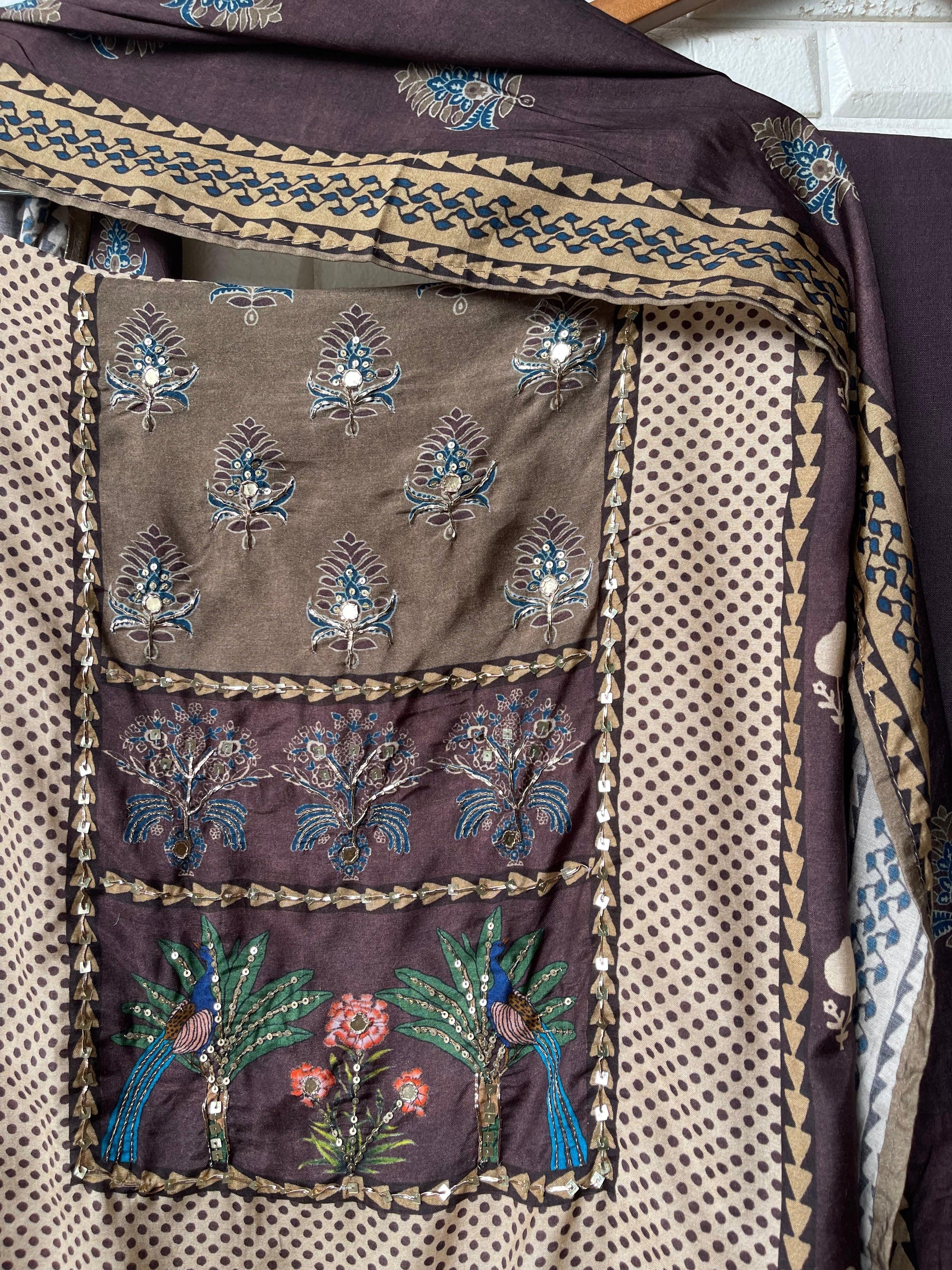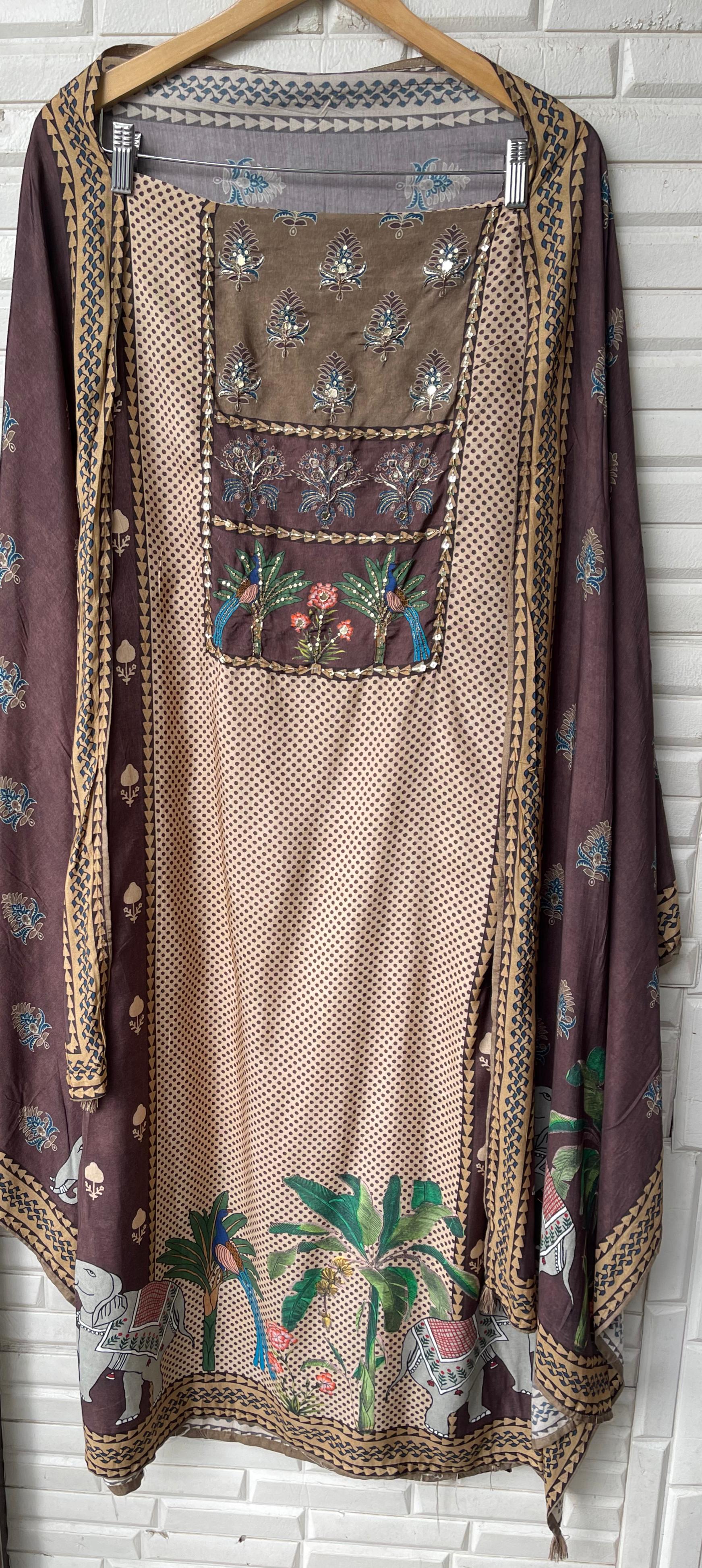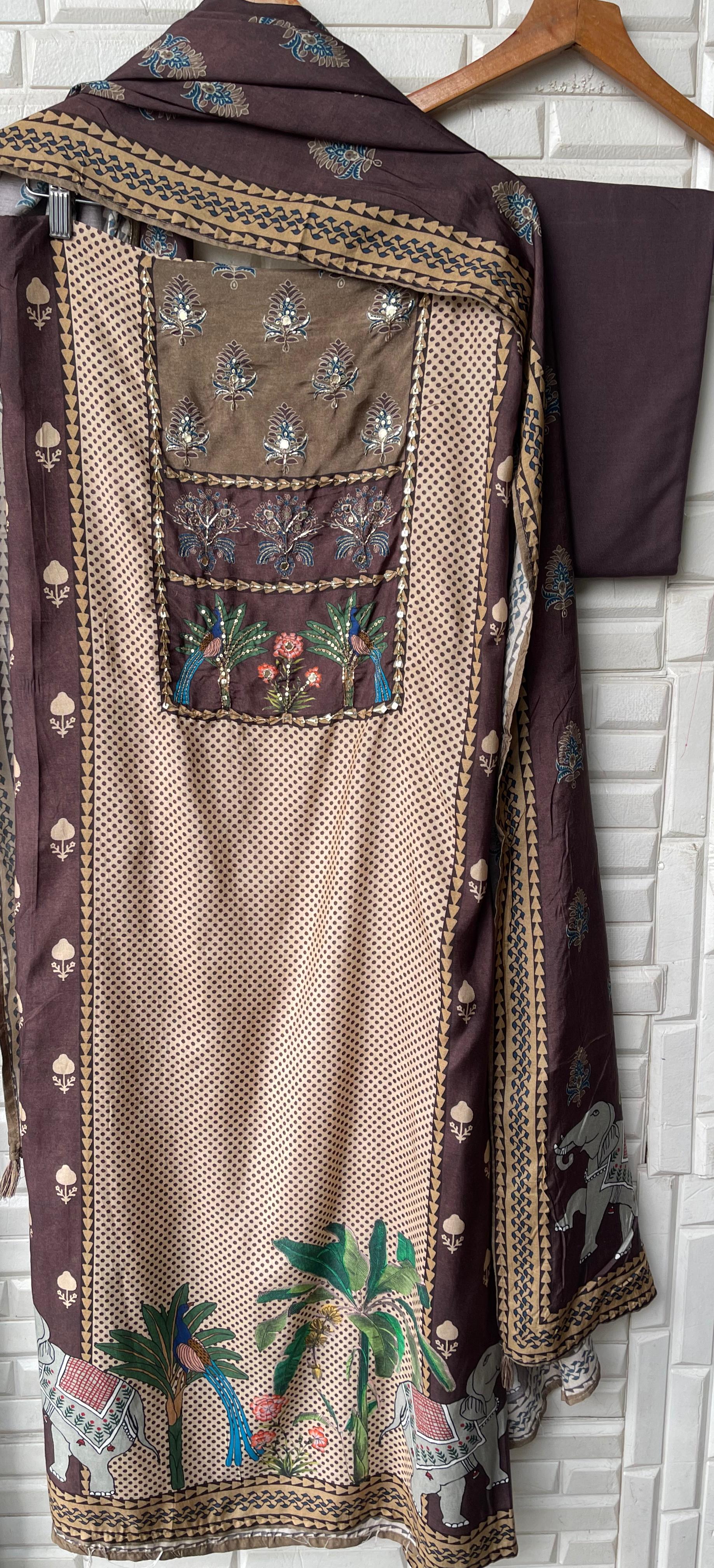 ๐ muslin printed fabric unstitched shirt with mirror work pearl resham sequence embroidery