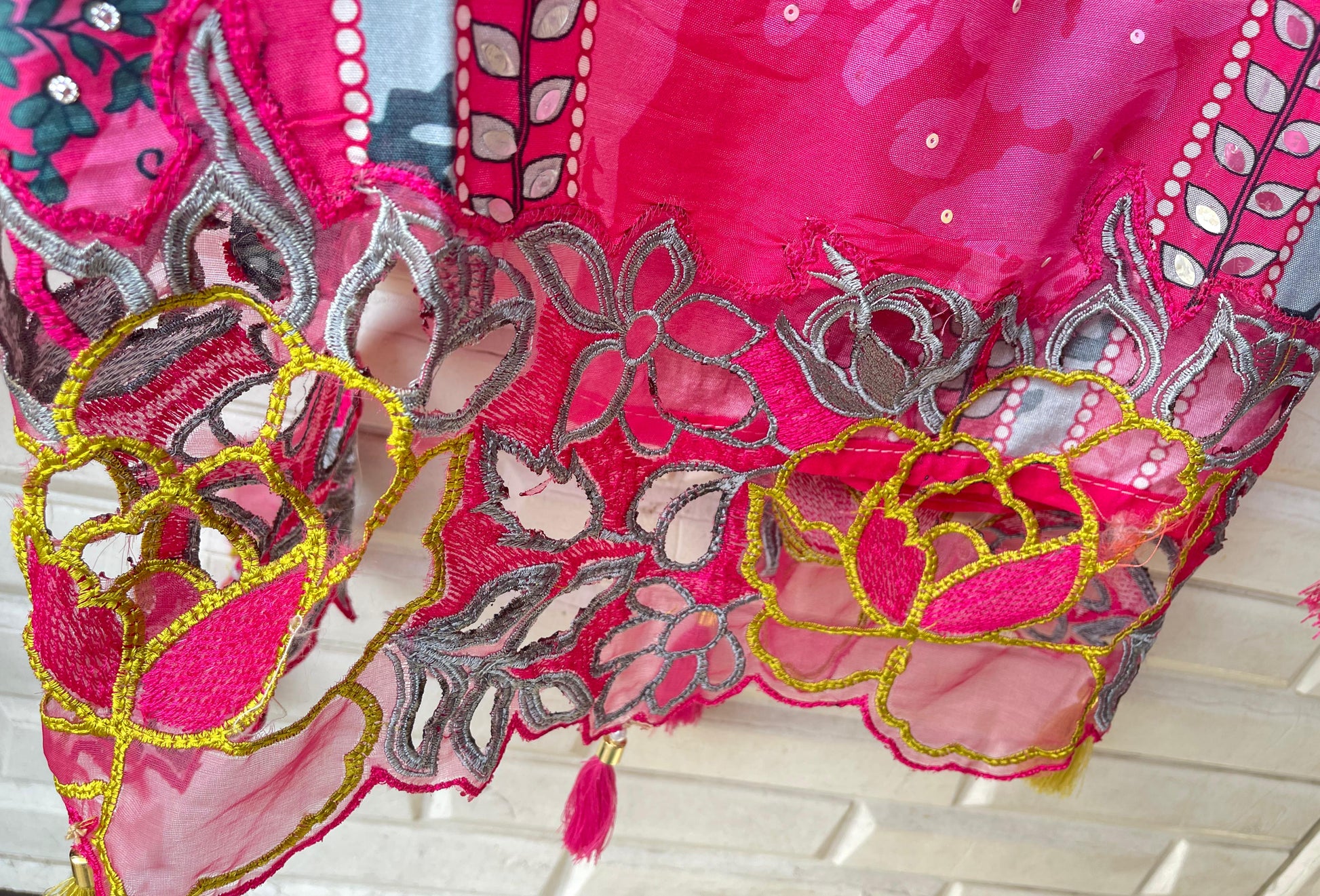 π muslin printed fabric unstitched shirt with swarowski sequence pearl mirror work patri highlighting