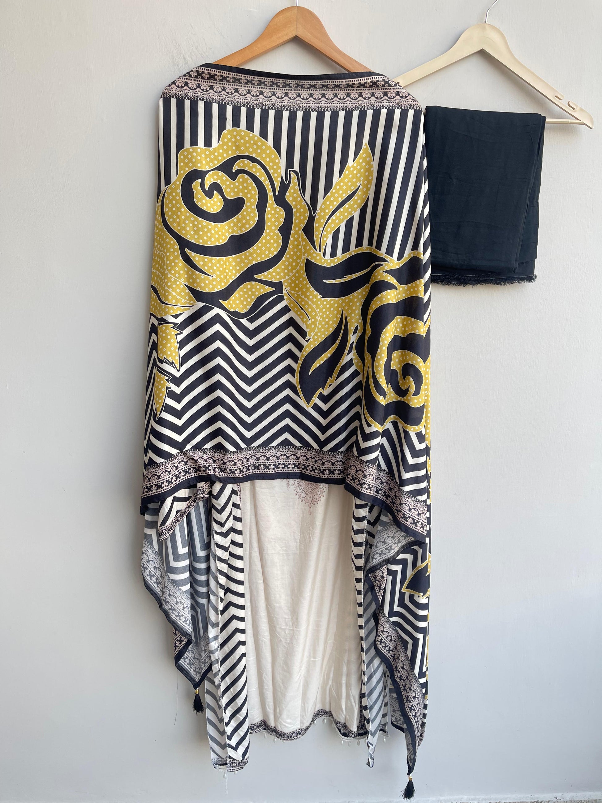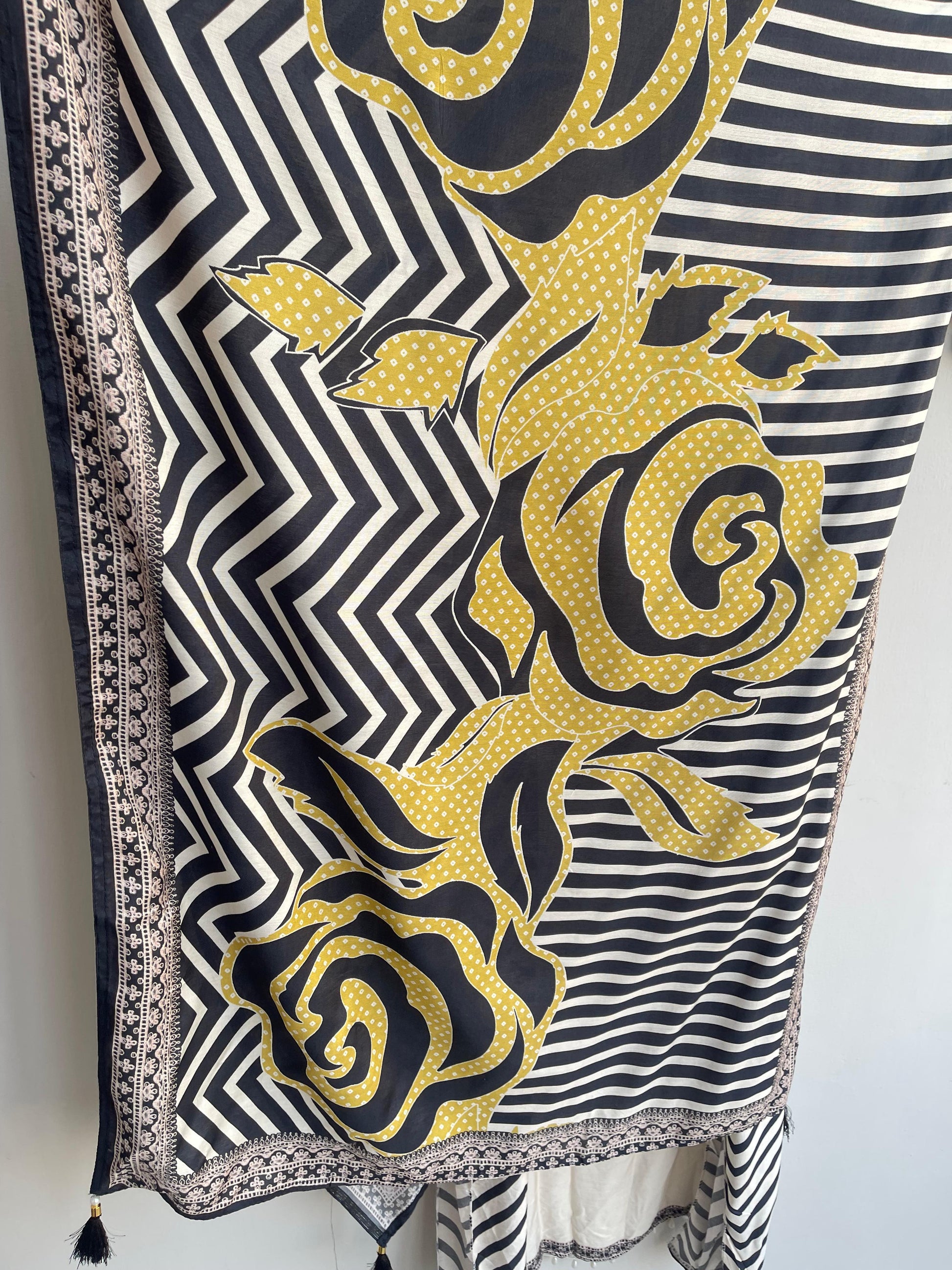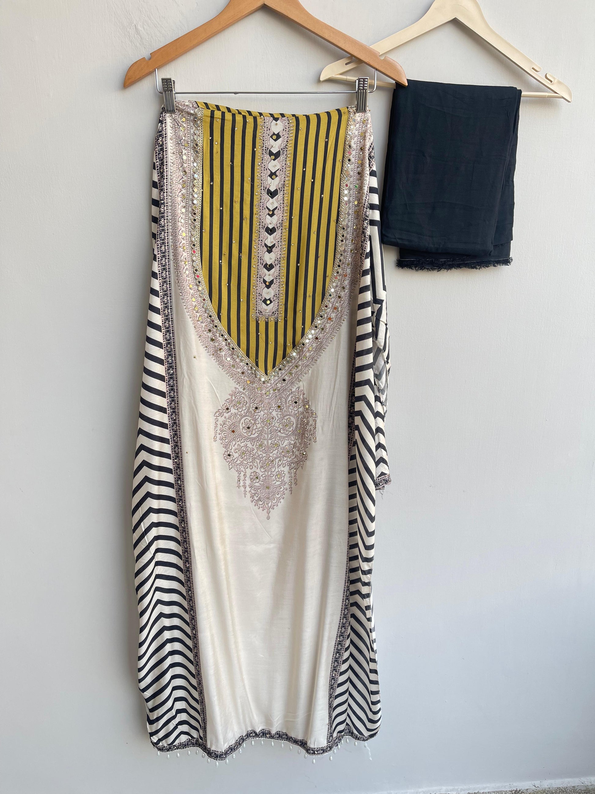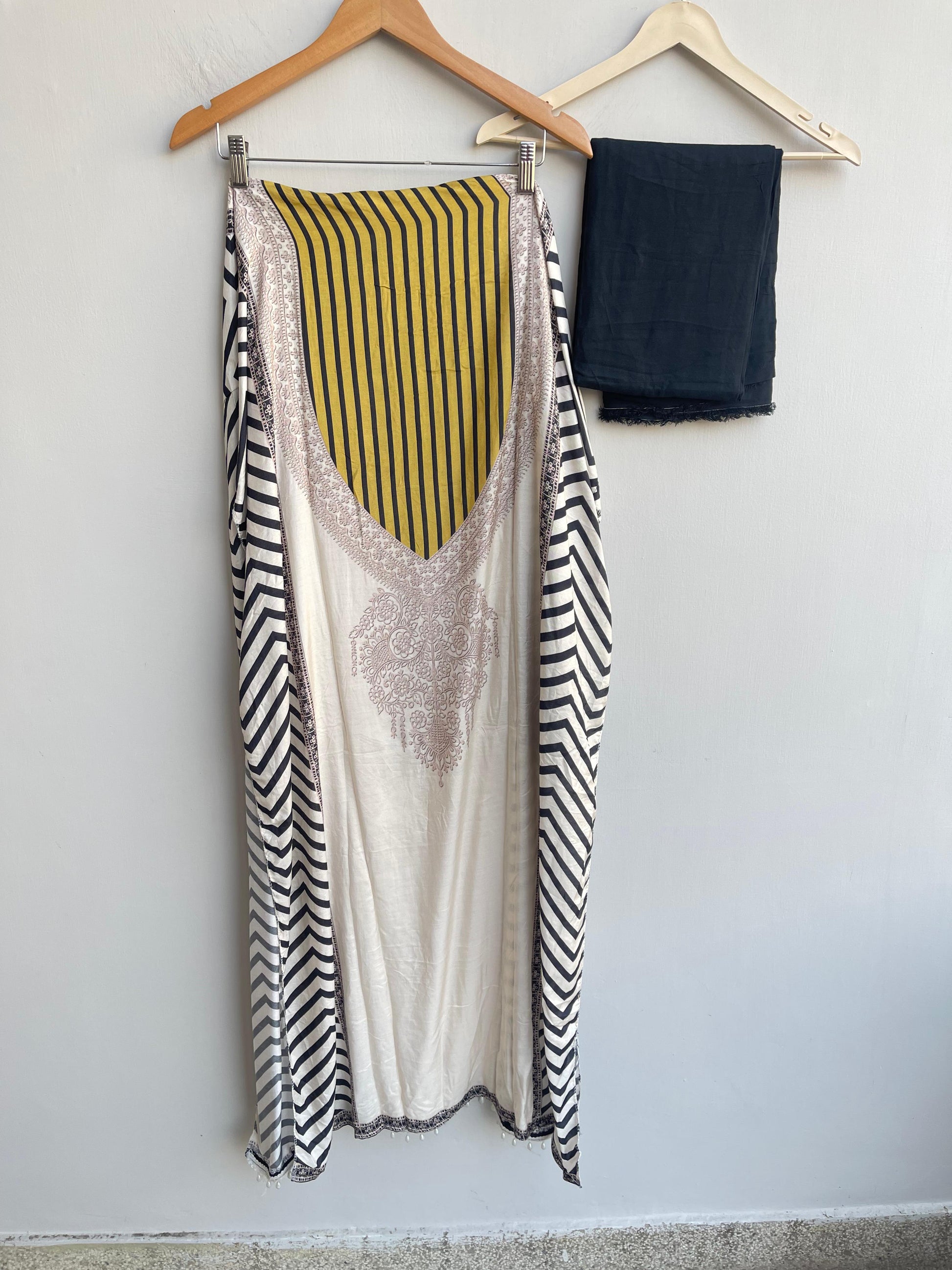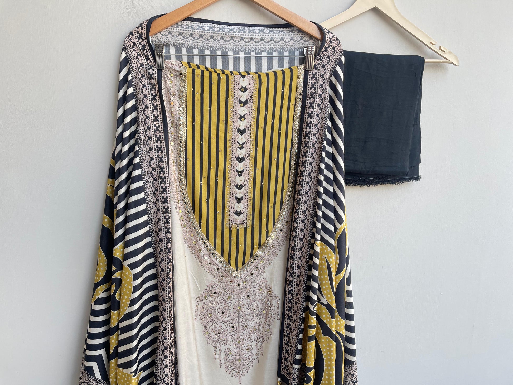 π muslin printed fabric unstitched shirt with mirror work and swarowski and highlighting