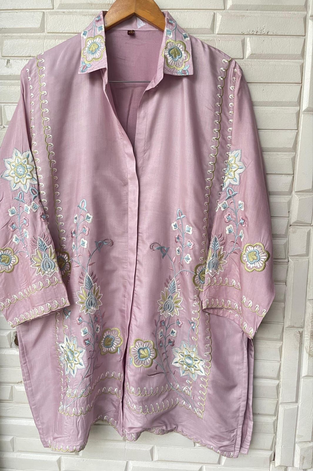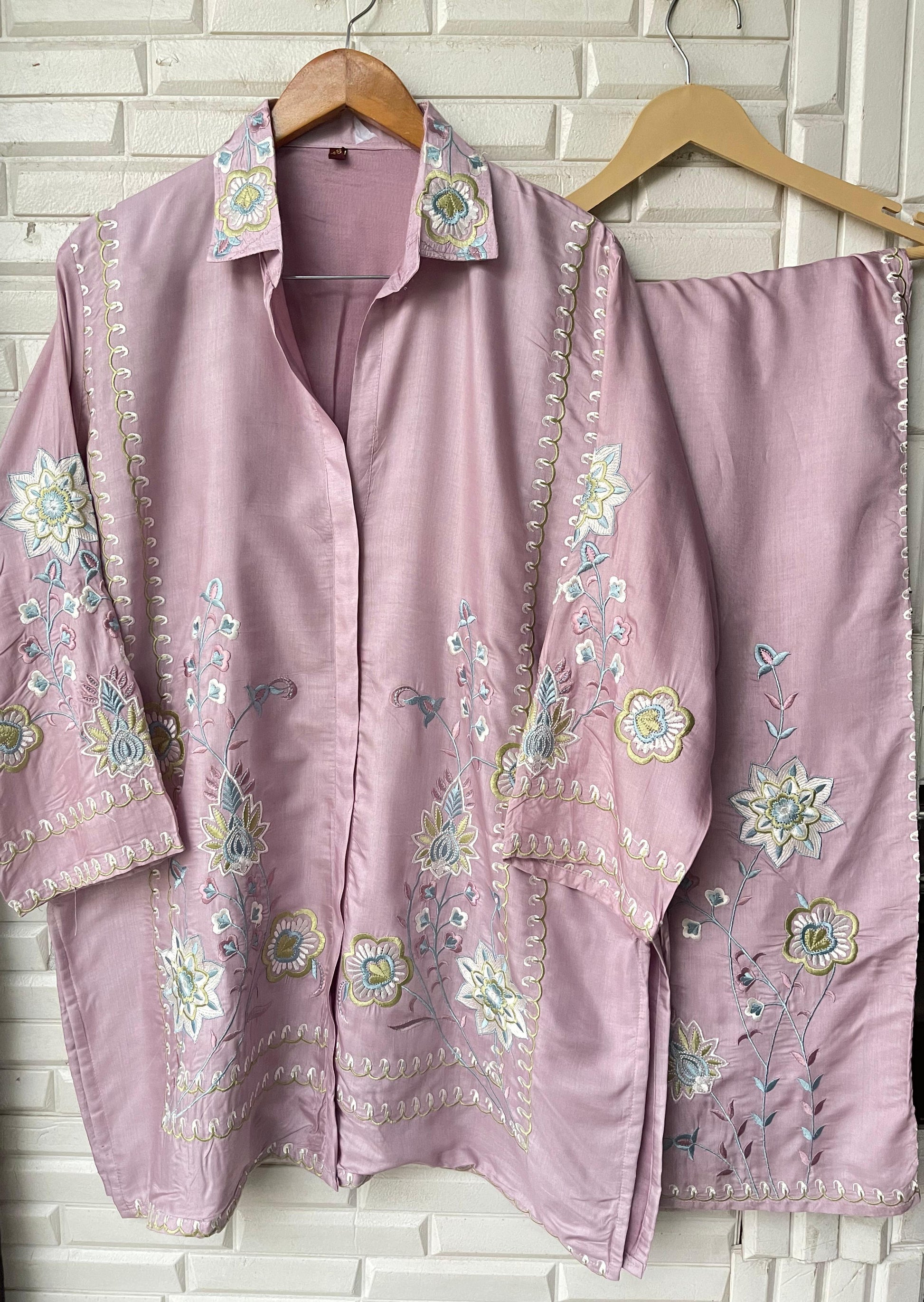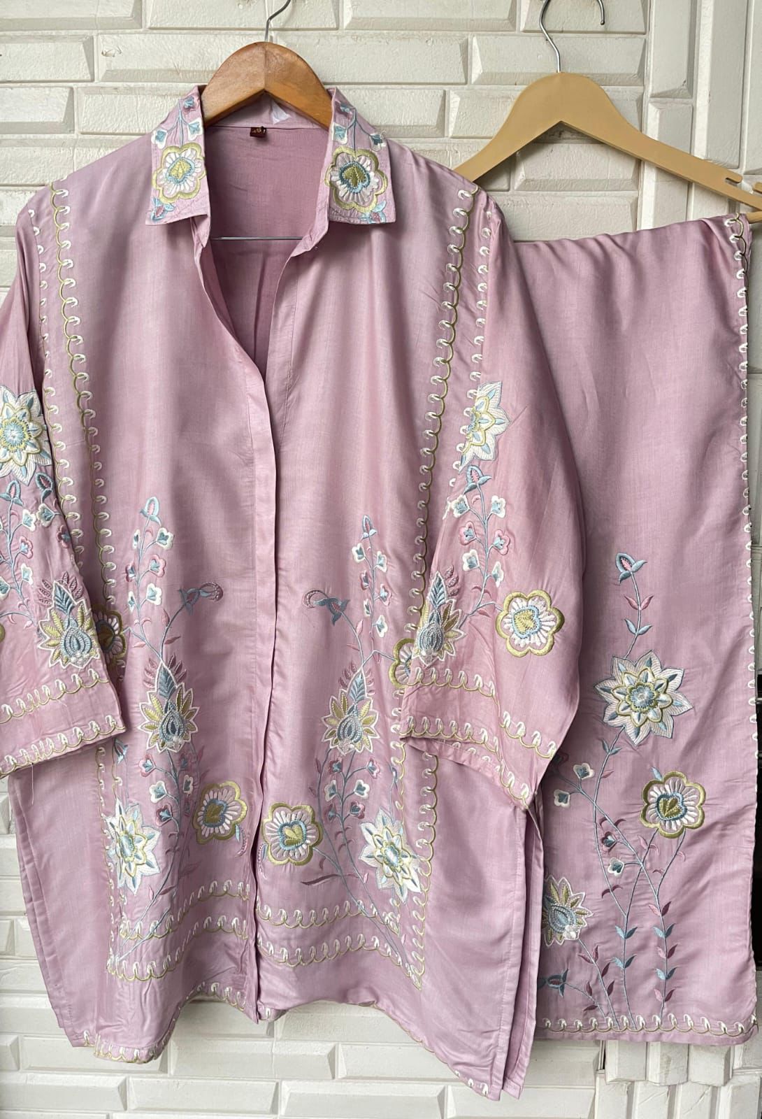 😊 muslin fabric readymade coord set shirt with stunning resham embroidery