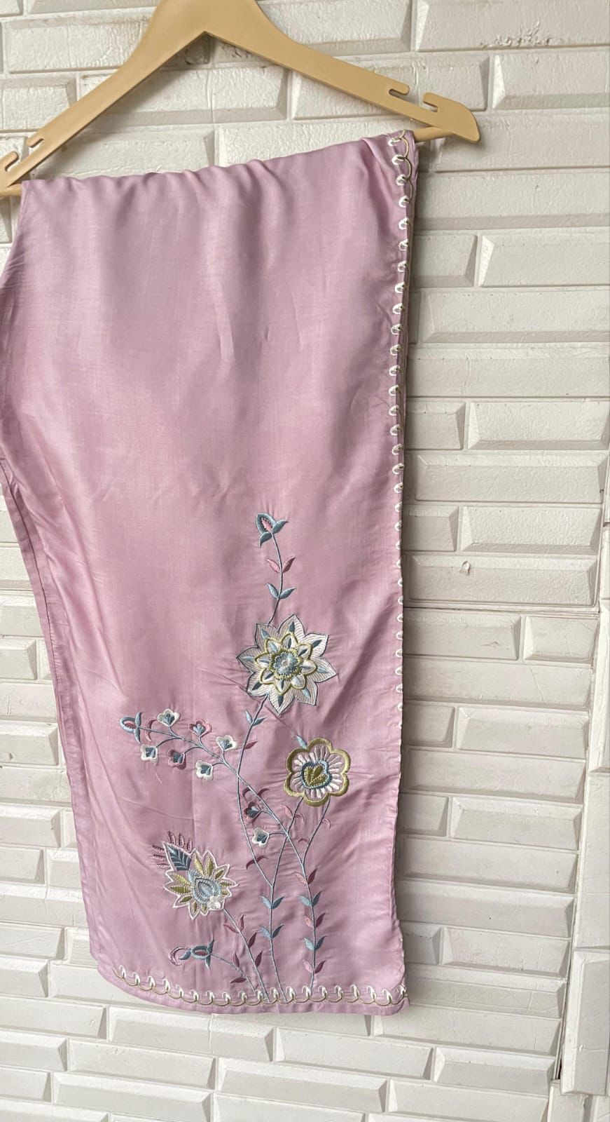 😊 muslin fabric readymade pants with resham embroidery