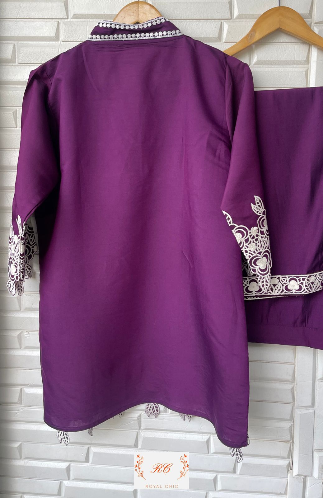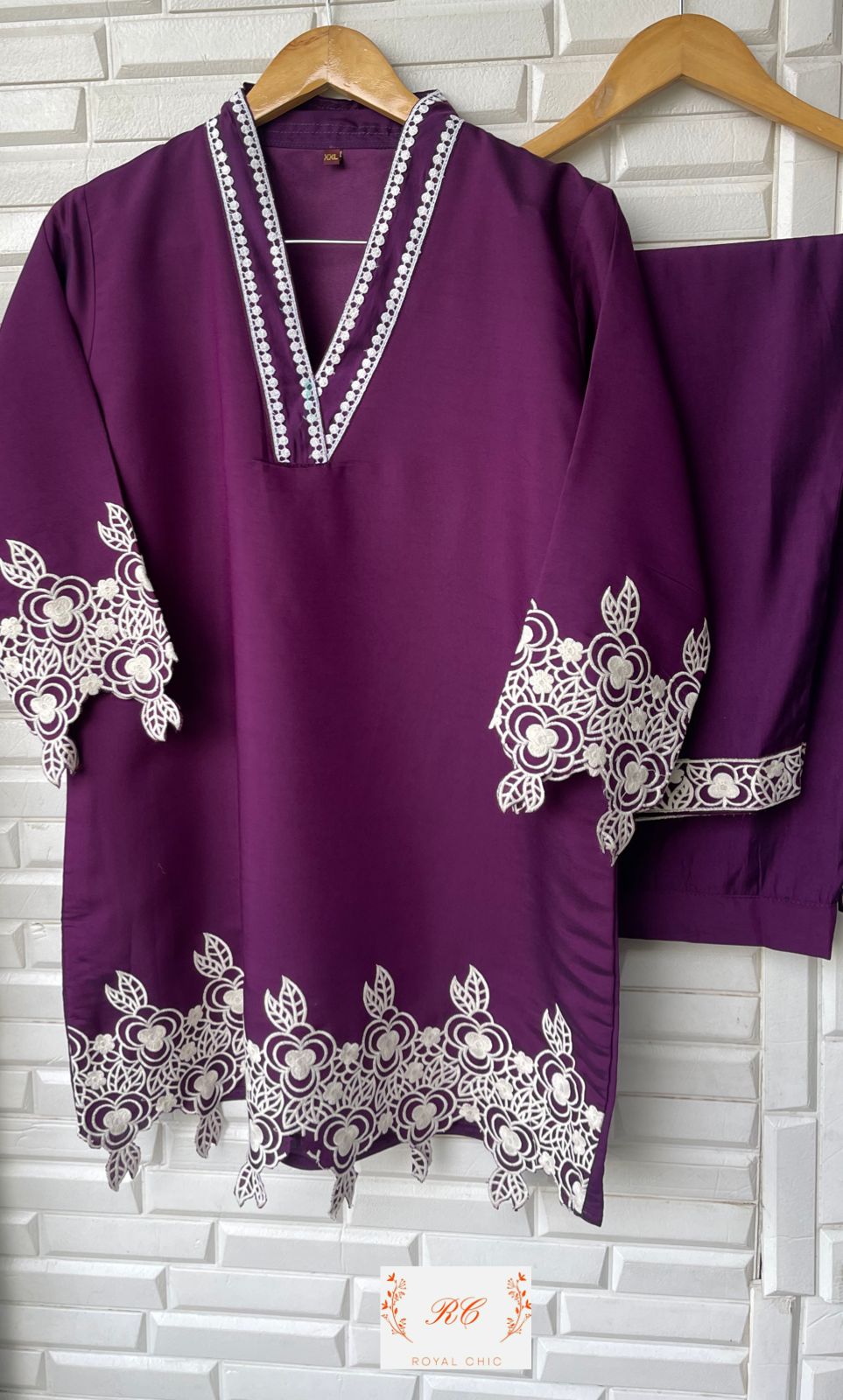 😊 Muslin fabric fully stitched coord set shirt with crotia lace plus resham work cutwork and attached lining