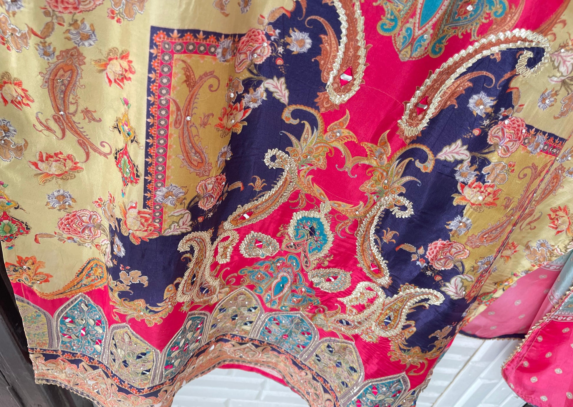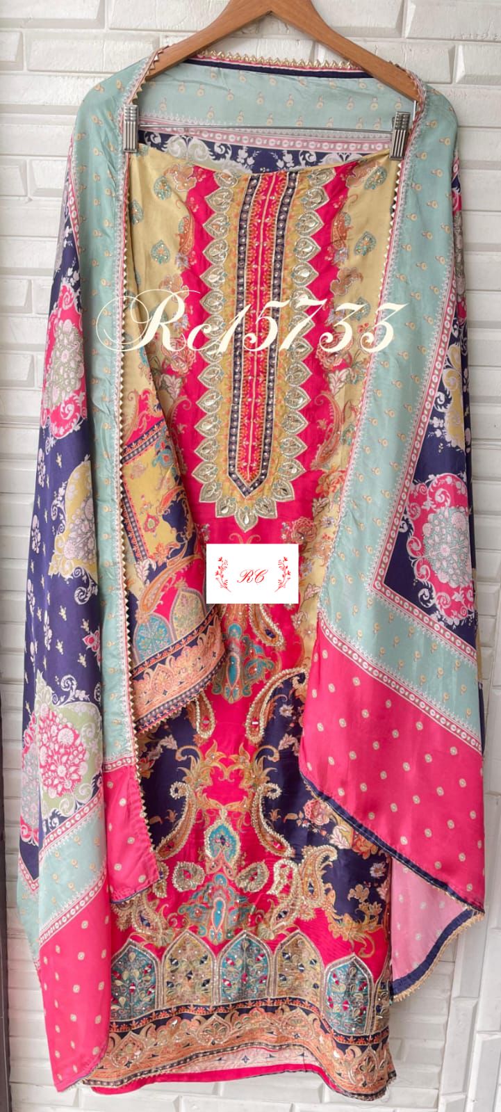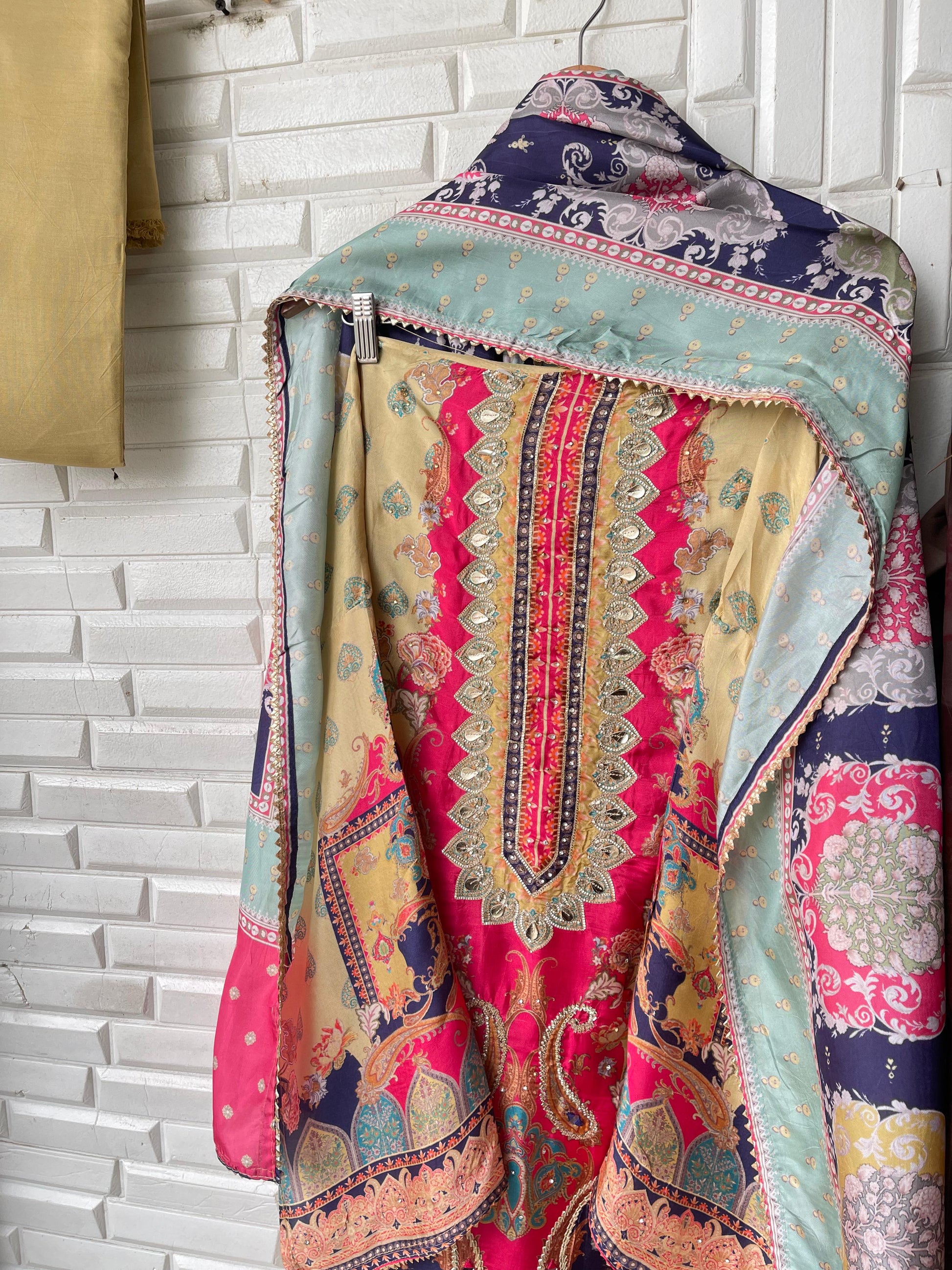 😊 muslin silk printed fabric unstitched shirt with gotta leather patchwork embroidery swarowski highlights