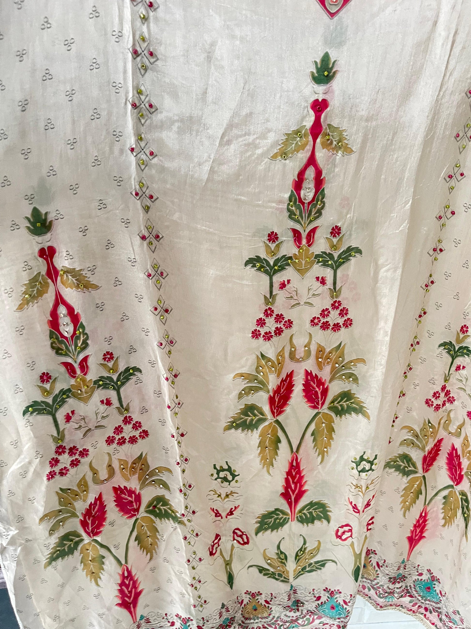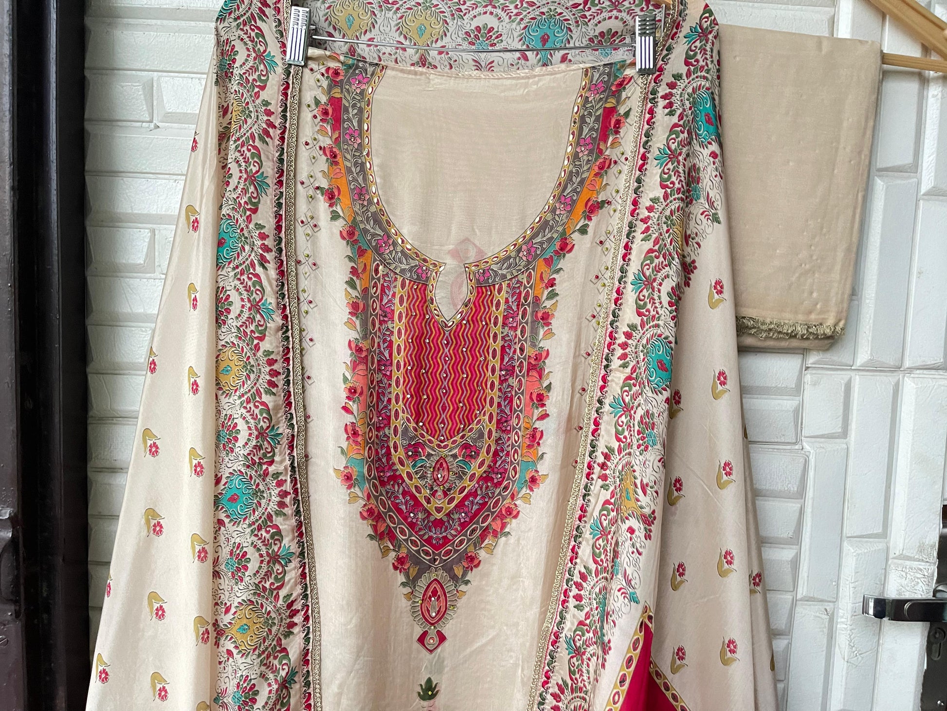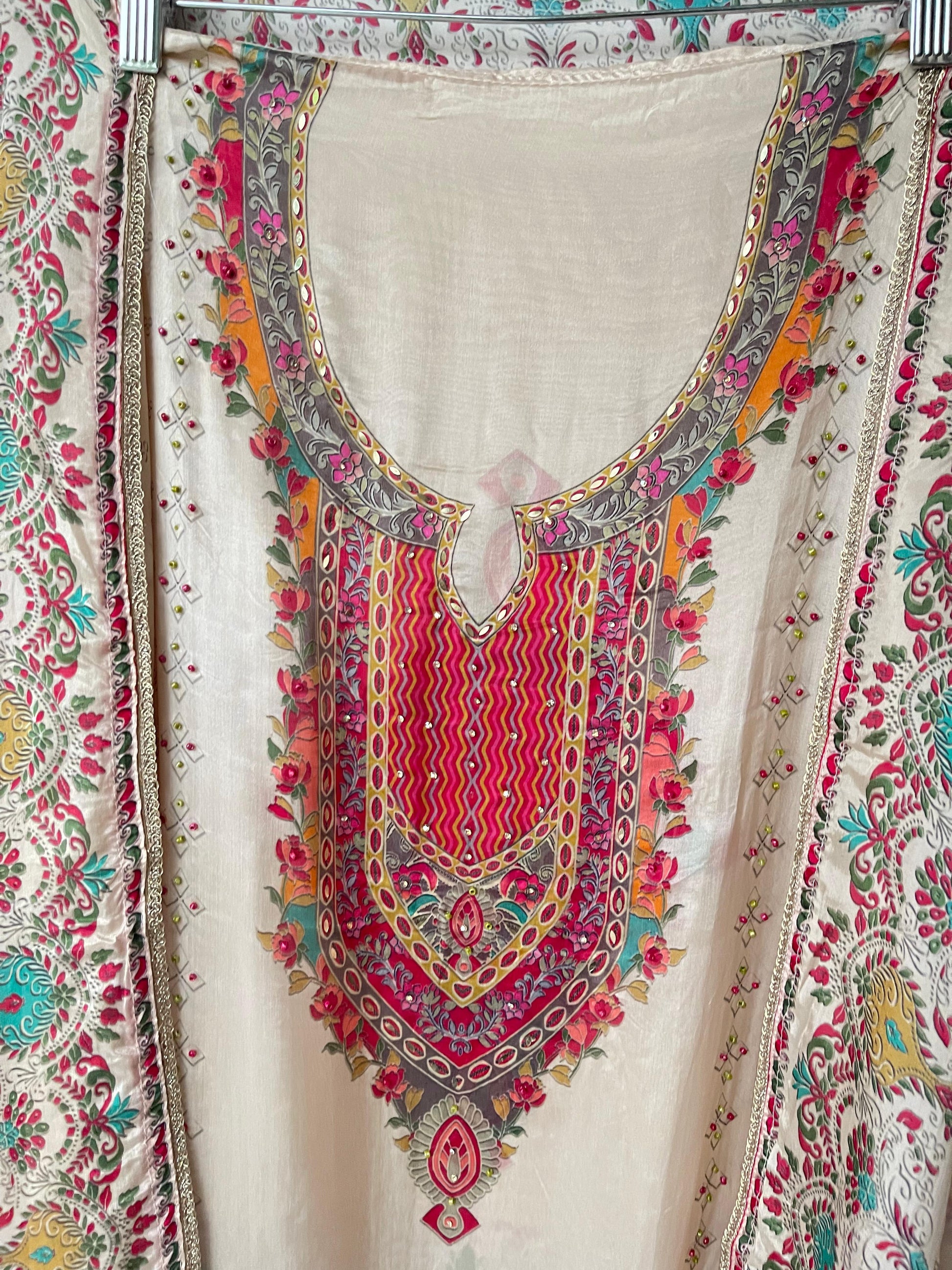 😊 muslin silk printed fabric unstitched shirt with scattered swarowski highlighting