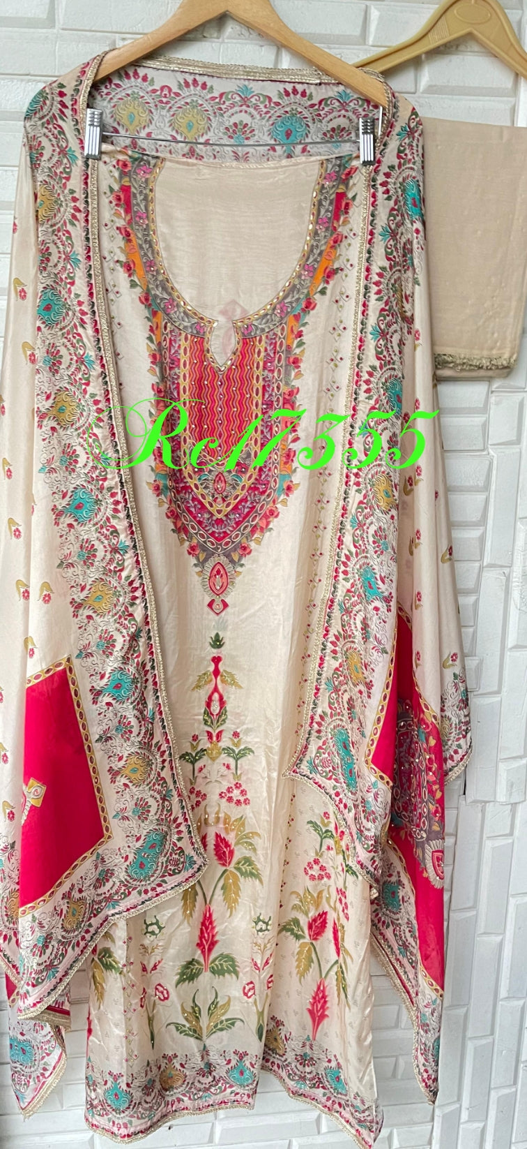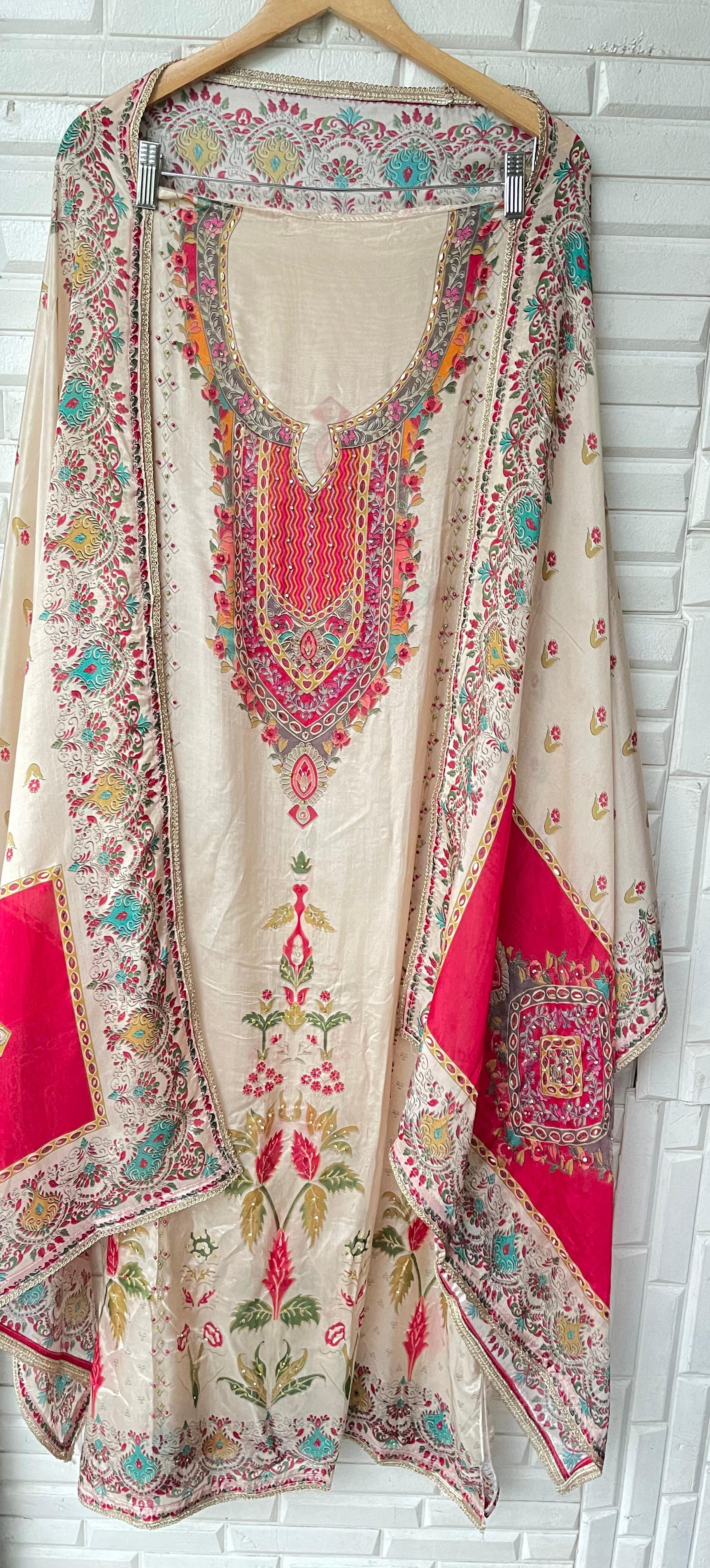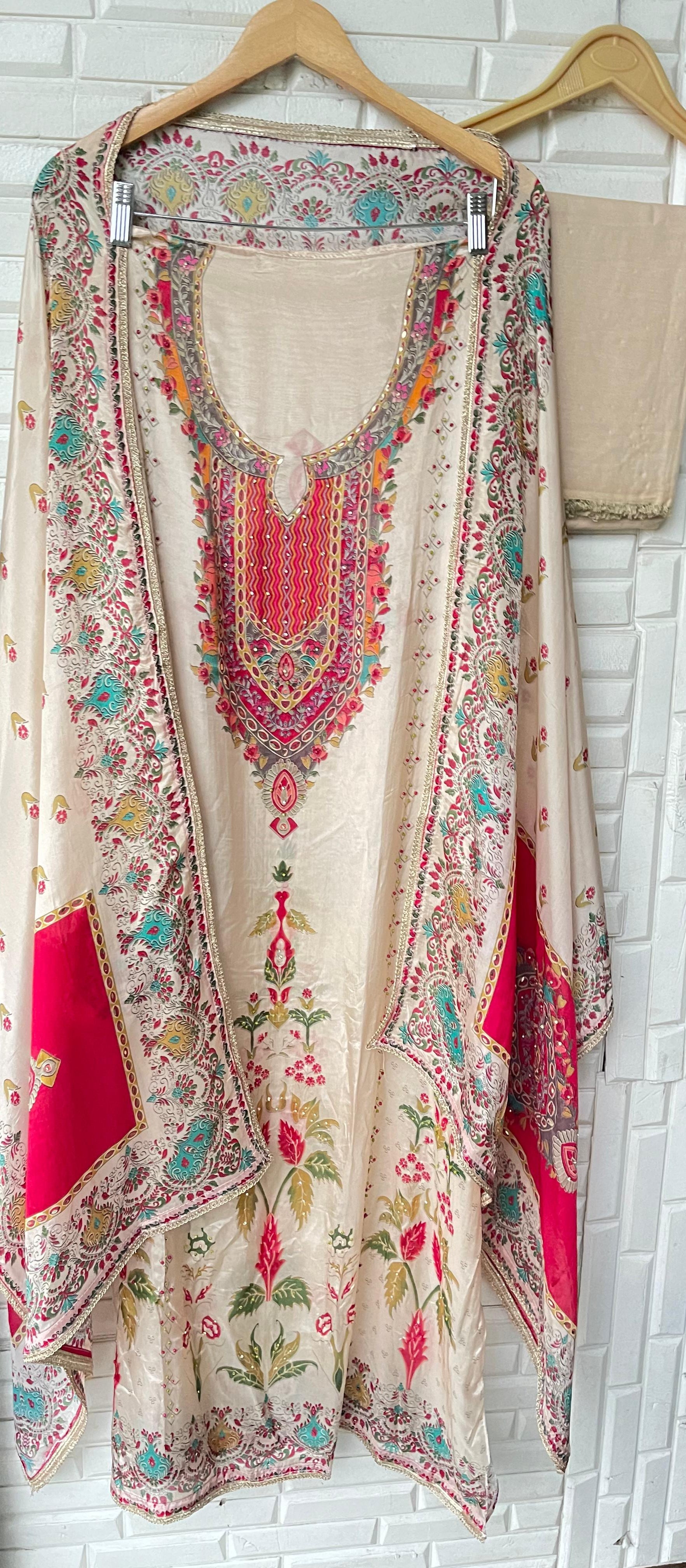 😊 muslin silk printed fabric unstitched shirt with scattered swarowski highlighting