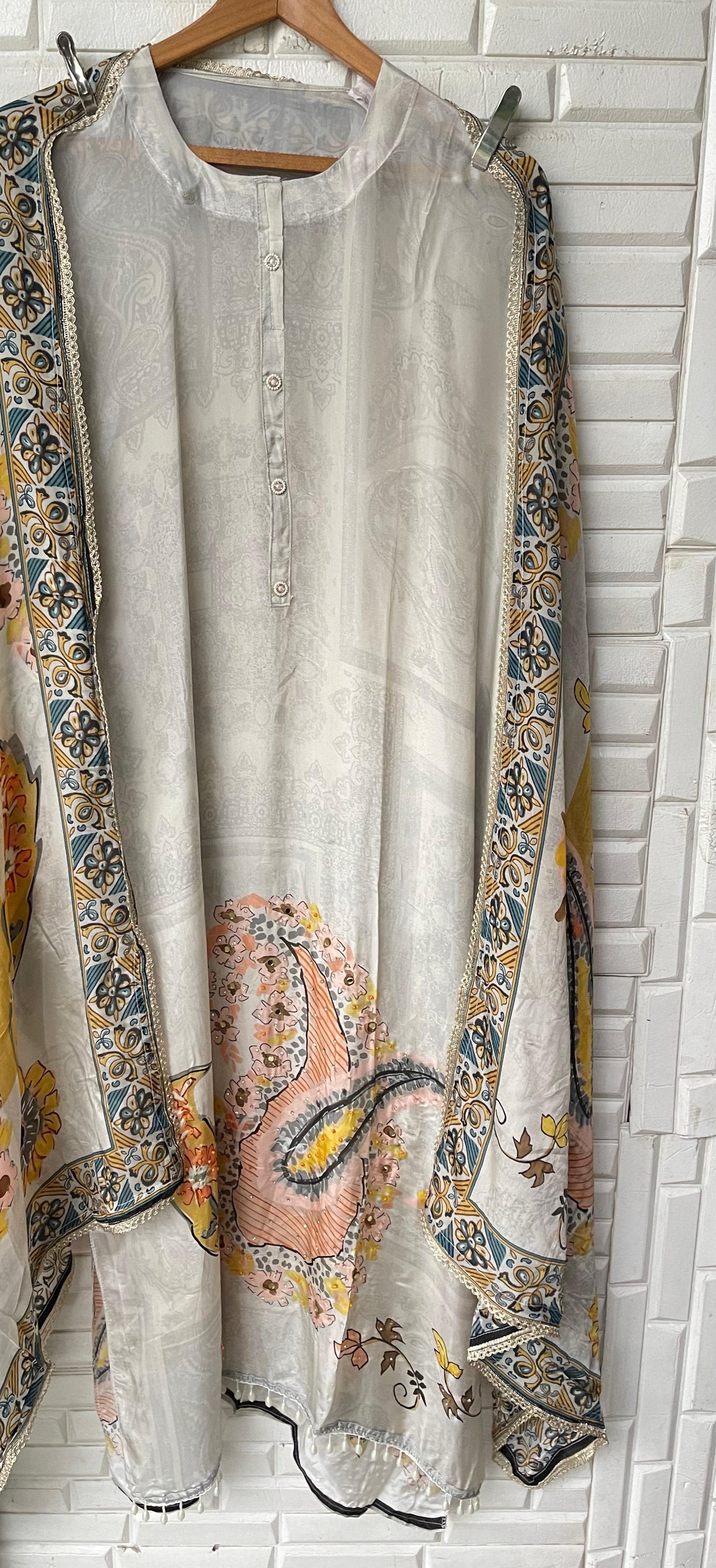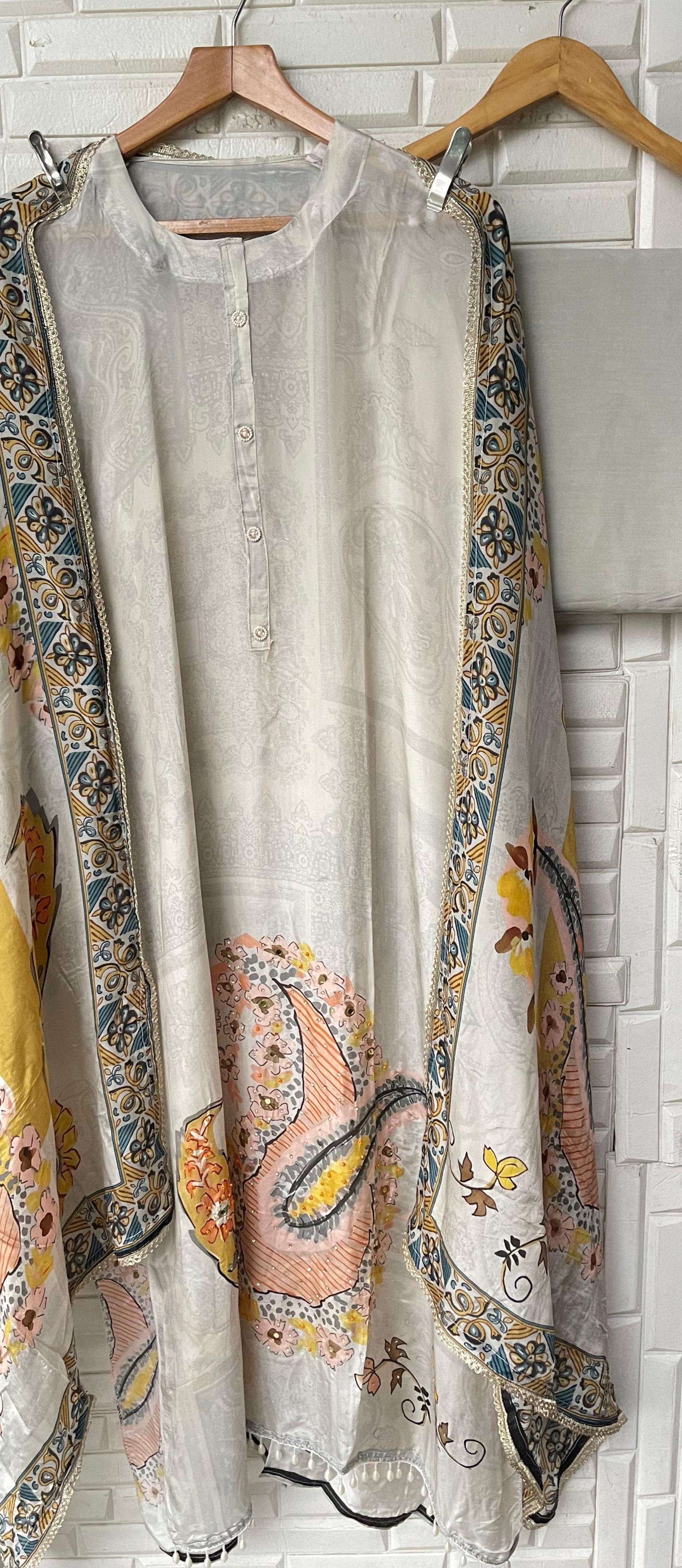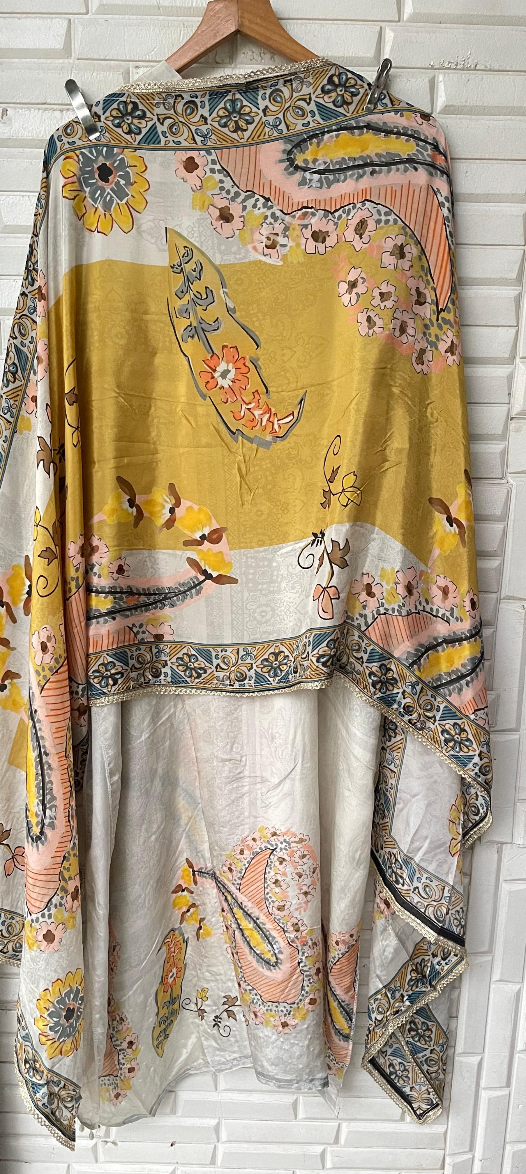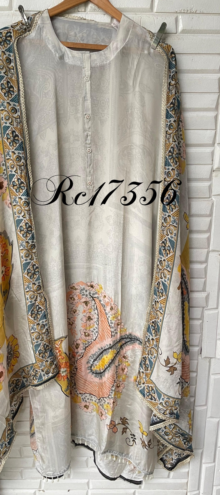 😊 muslin silk printed fabric unstitched shirt with scattered swarowski mirror work highlighting
