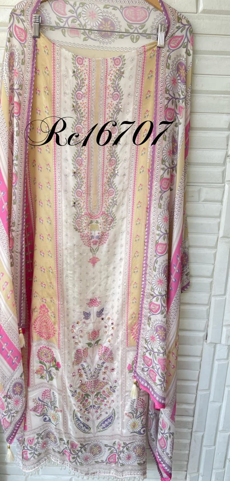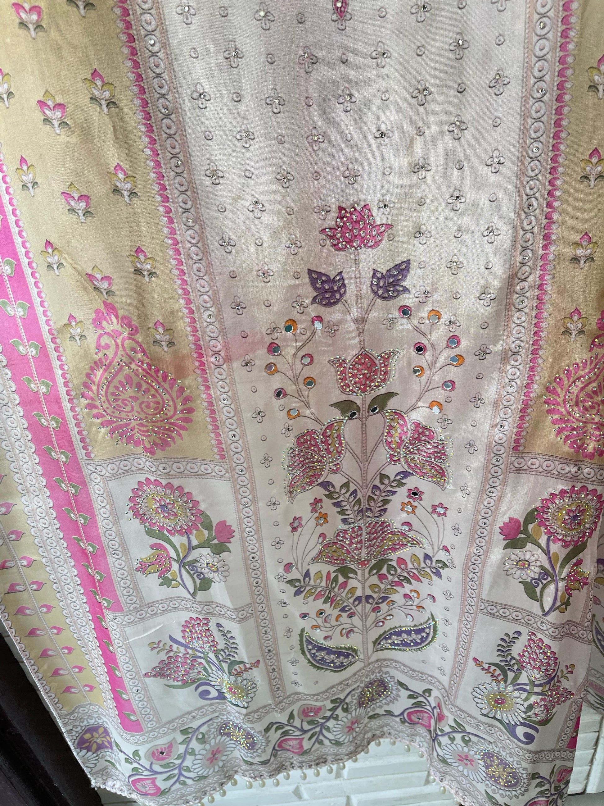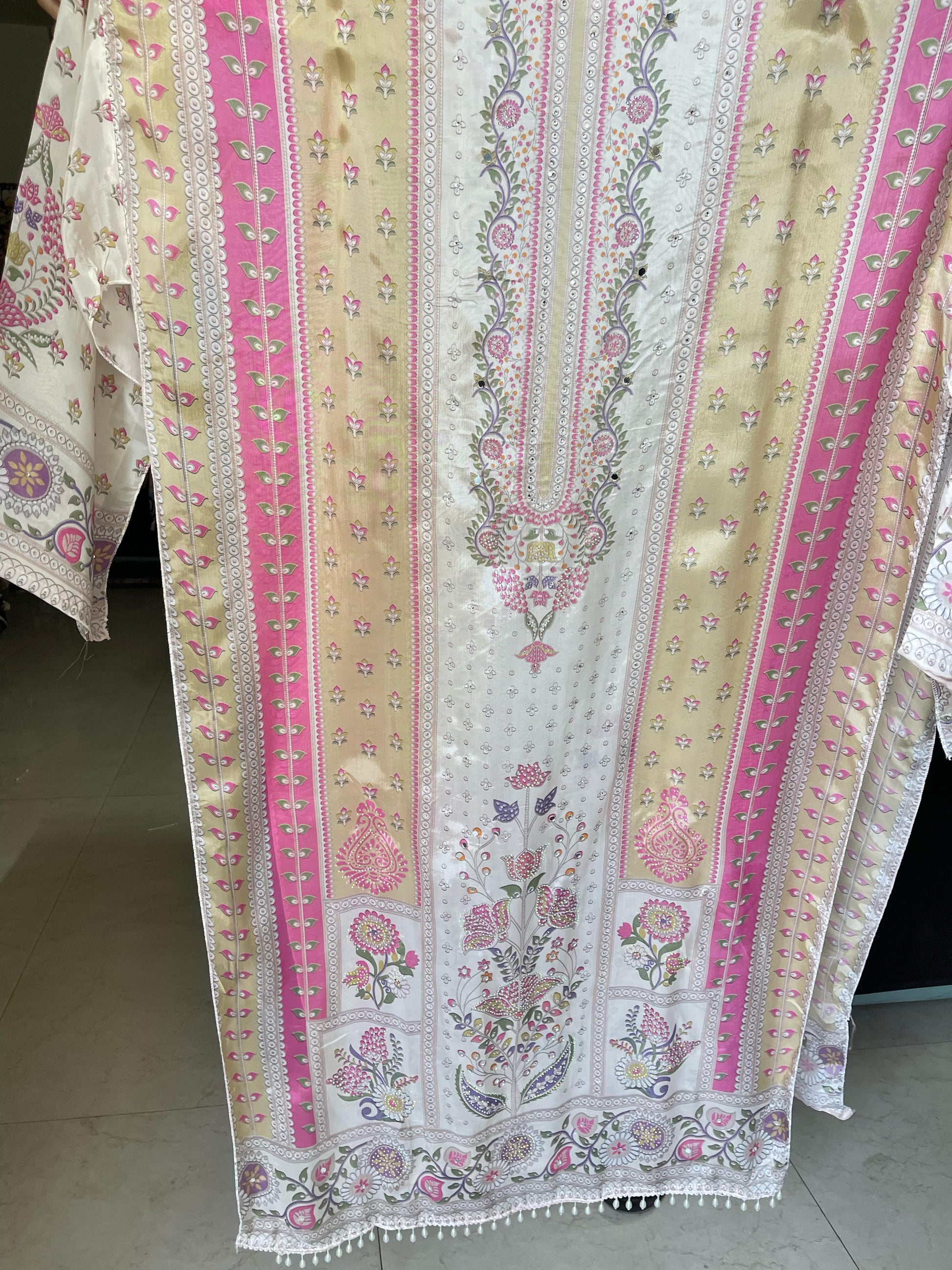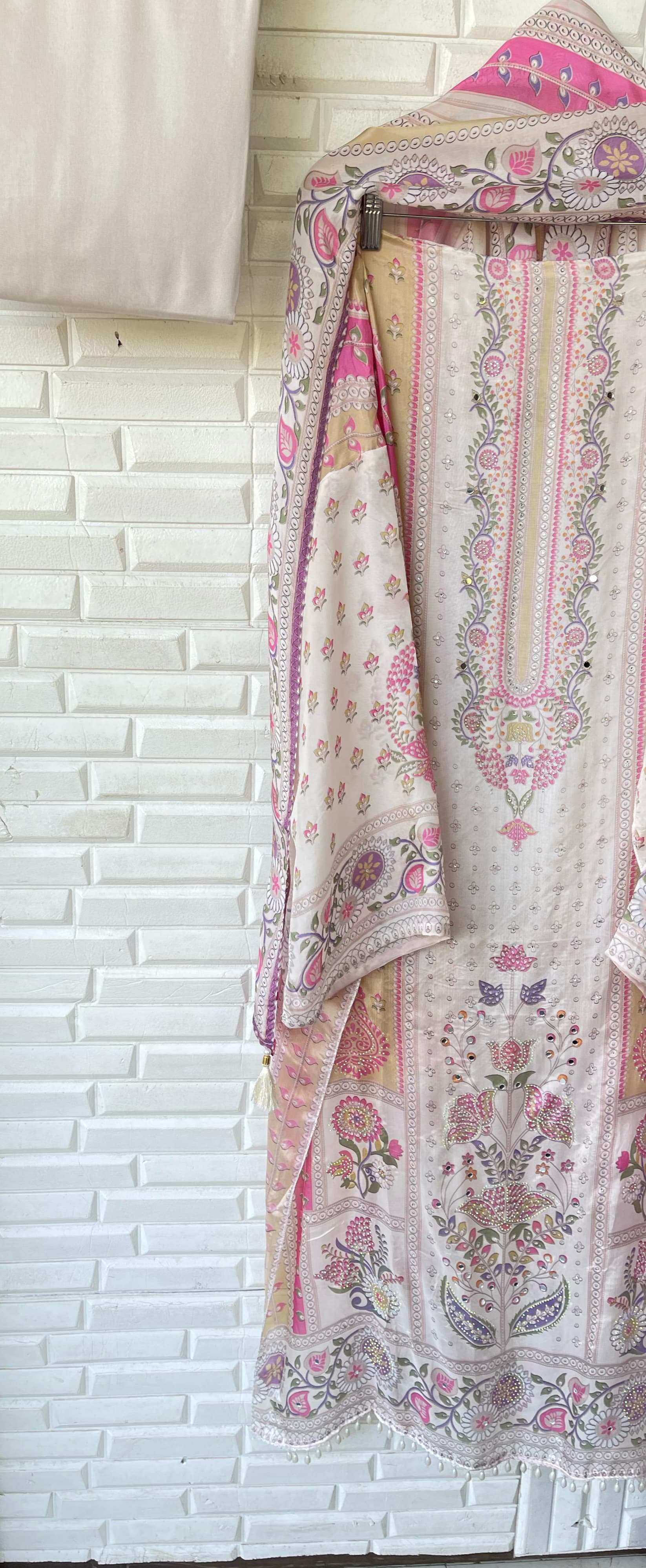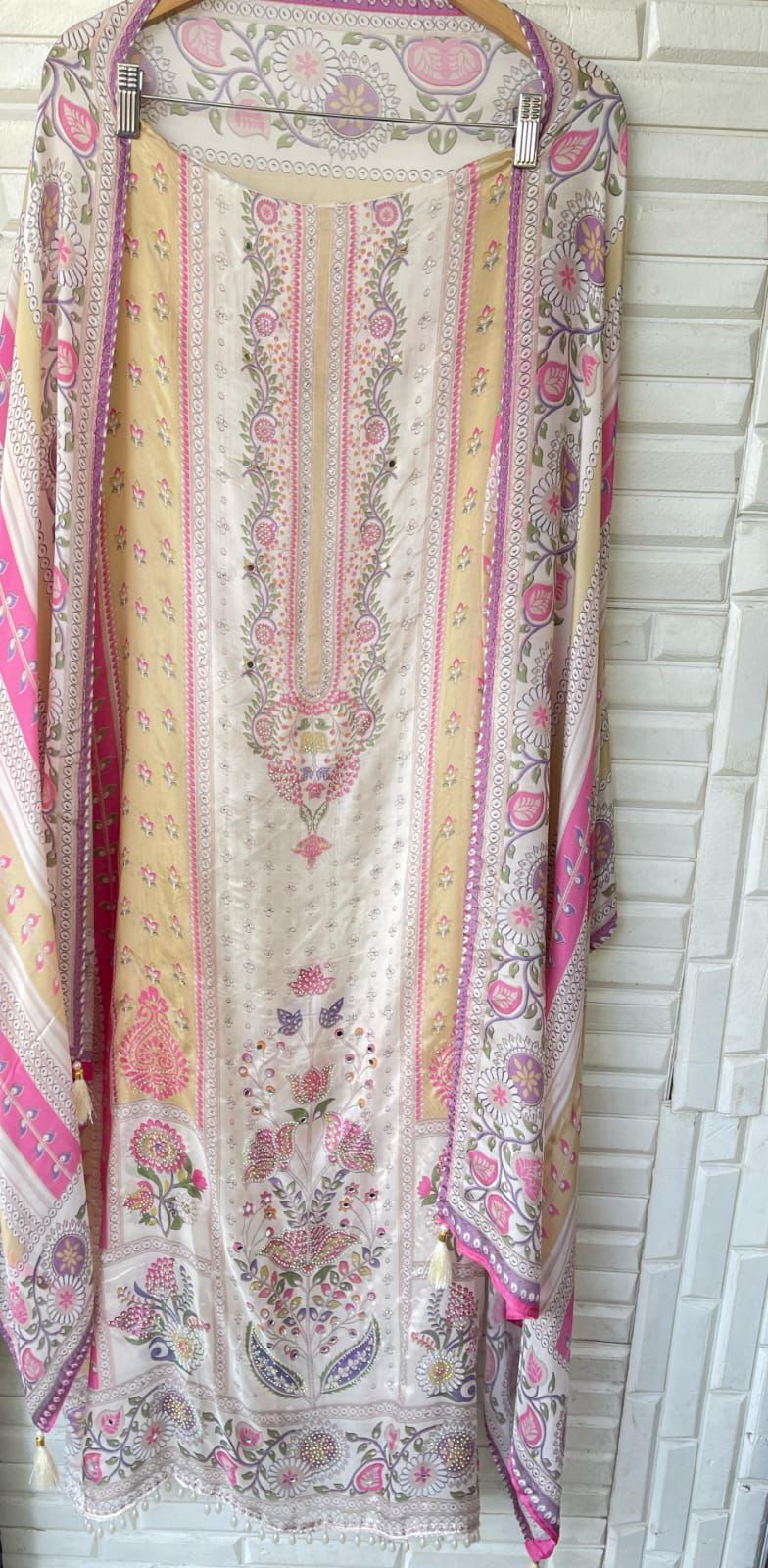 đ Muslin silk printed fabric unstitched shirt with mirror work swarowski highlightingÂ