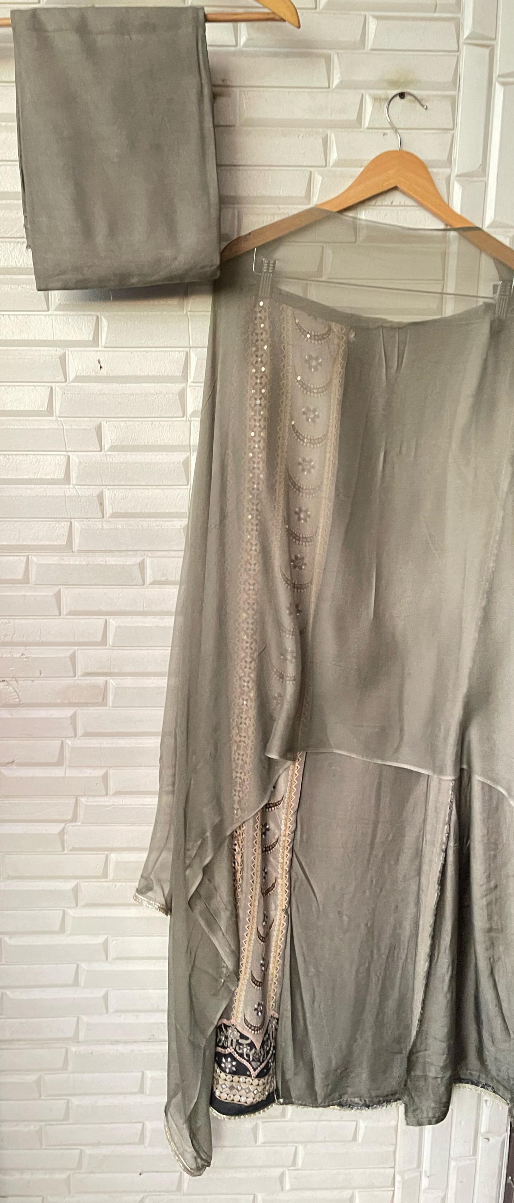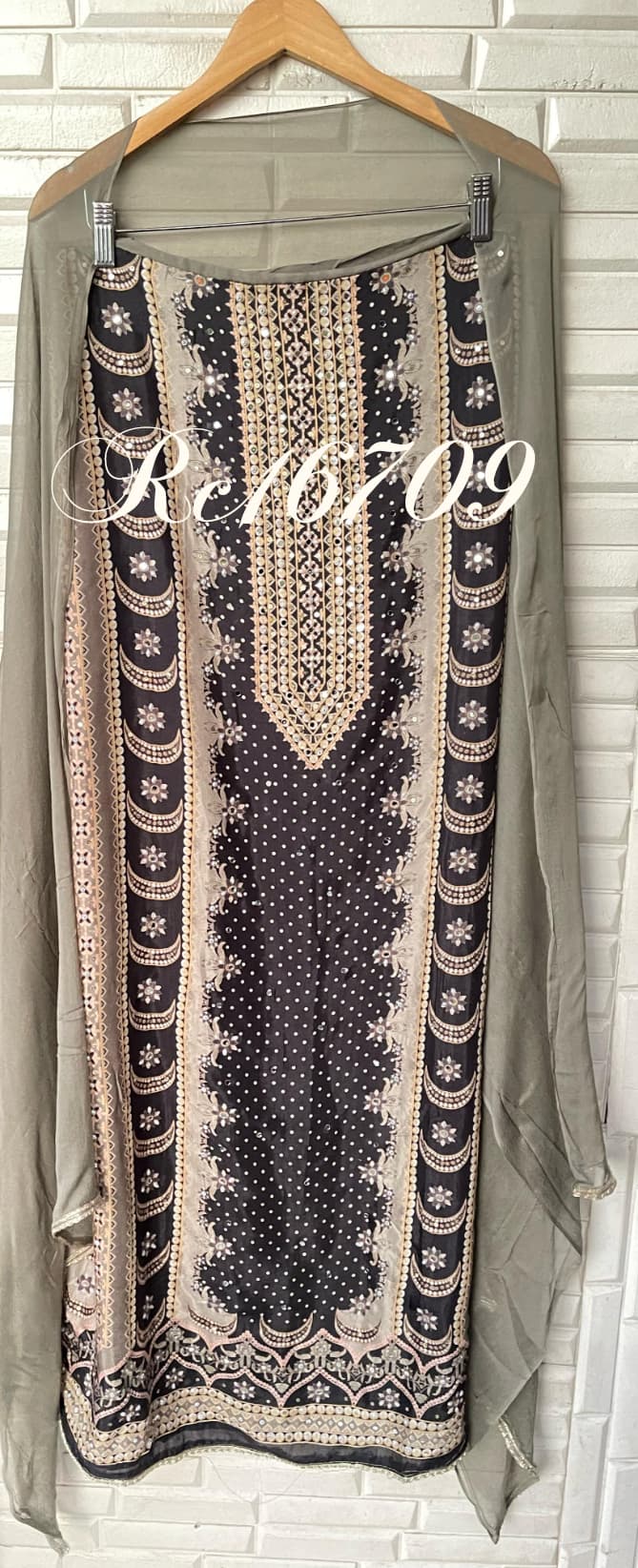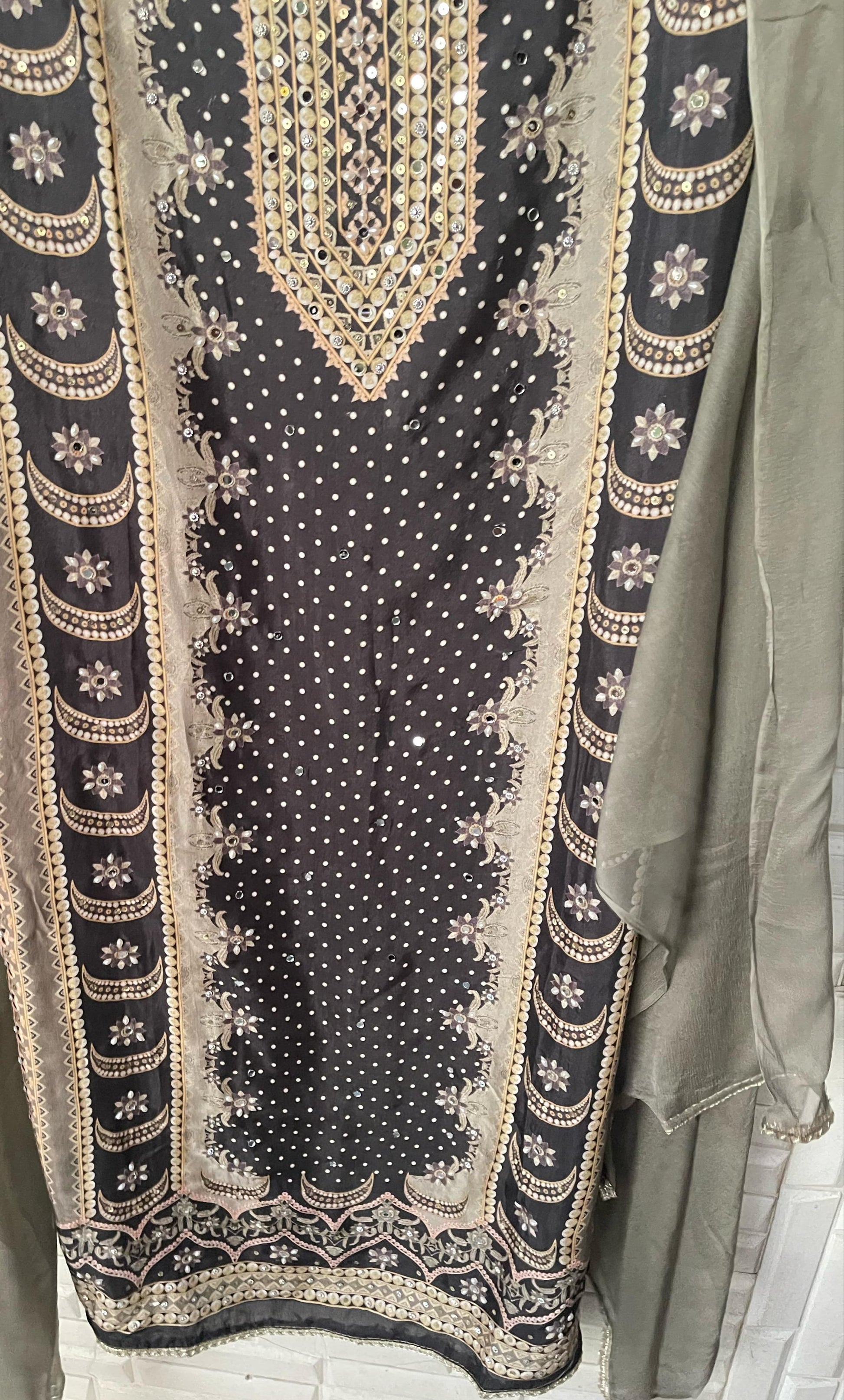 đ Muslin printed fabric unstitched shirt with mirror work pearl swarowski highlightingÂ