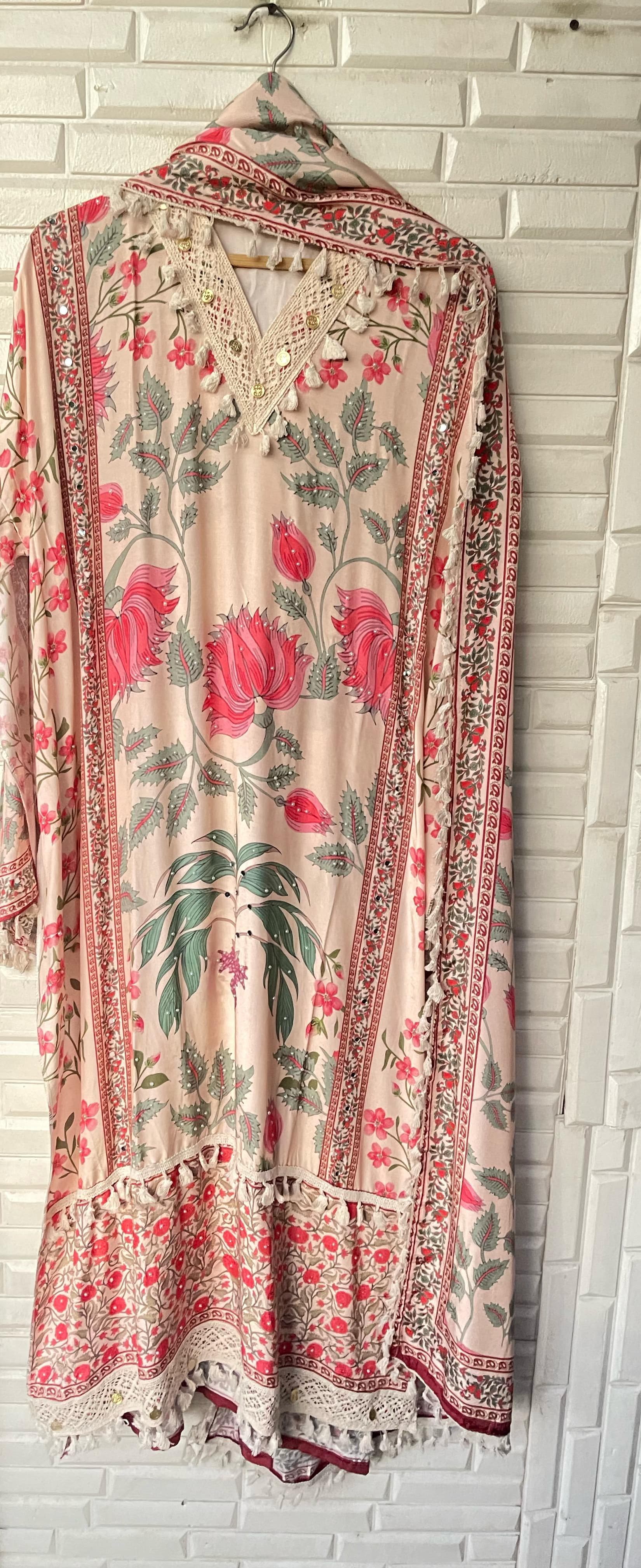 š Muslin printed fabric dupatta with tassel border laceĀ