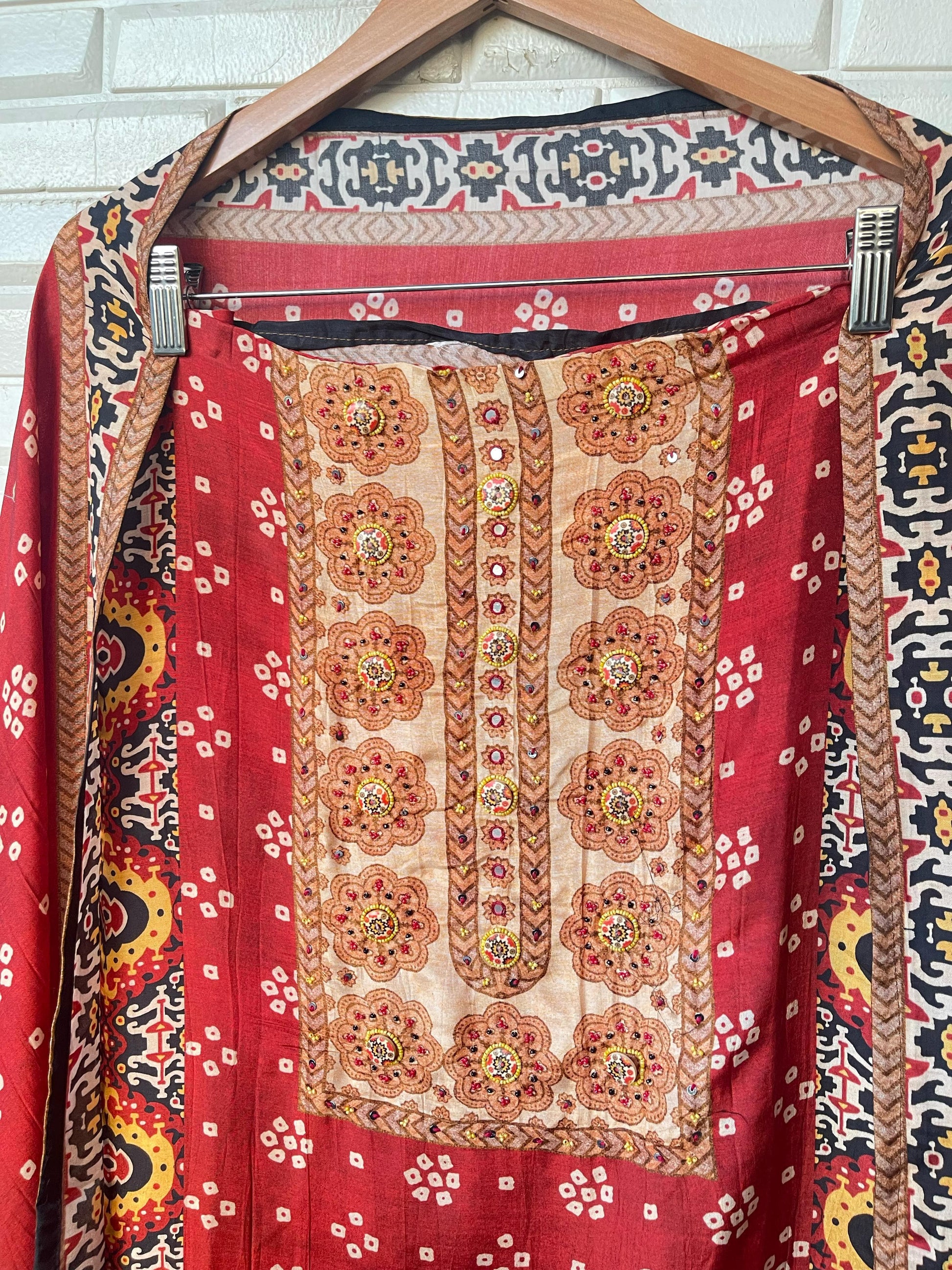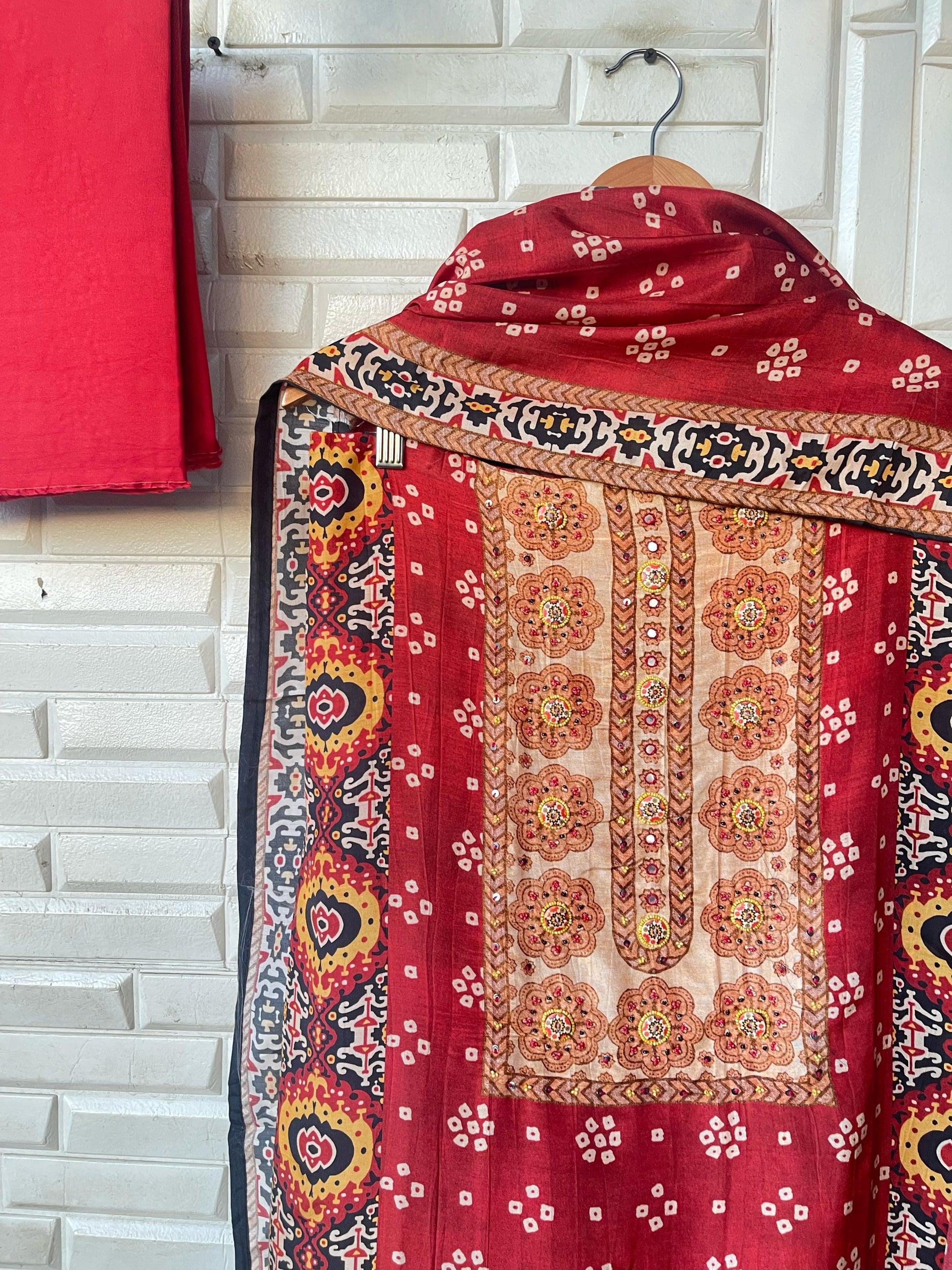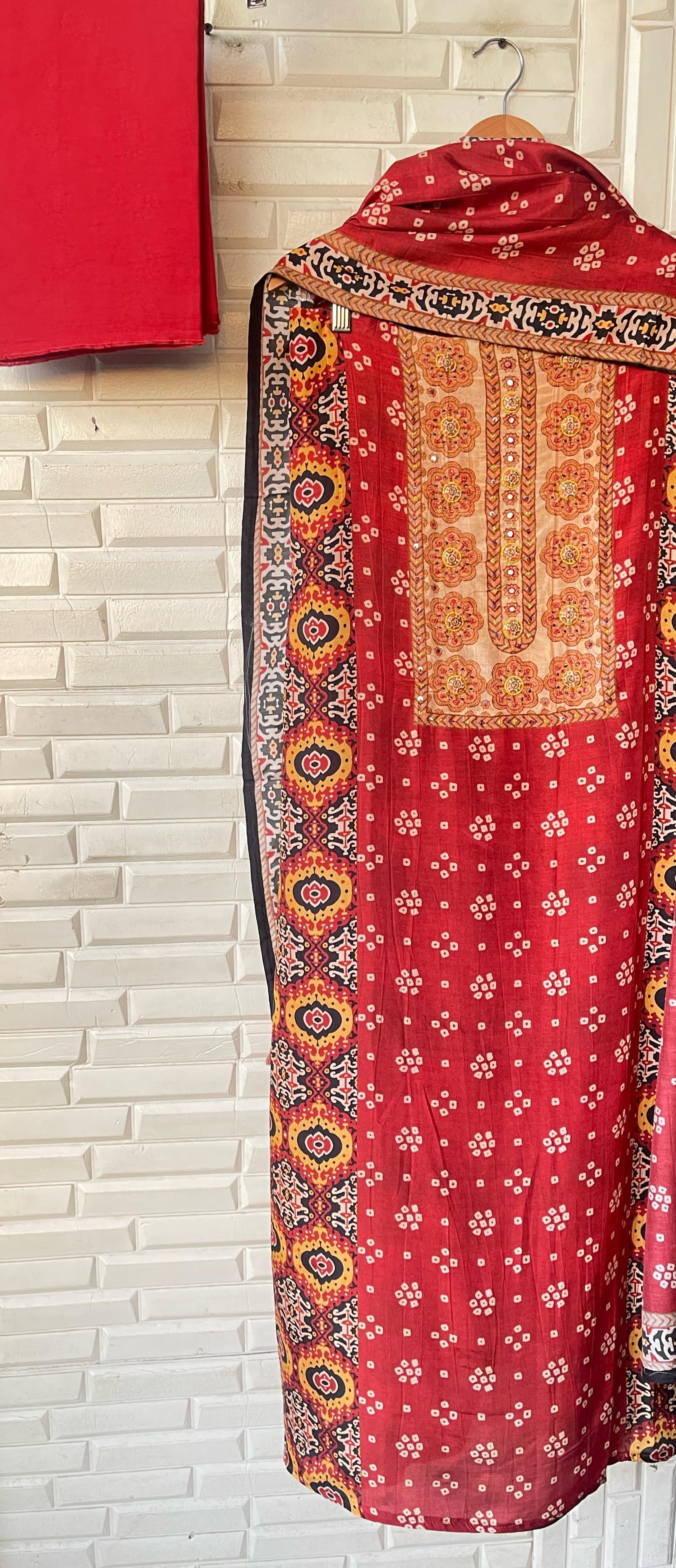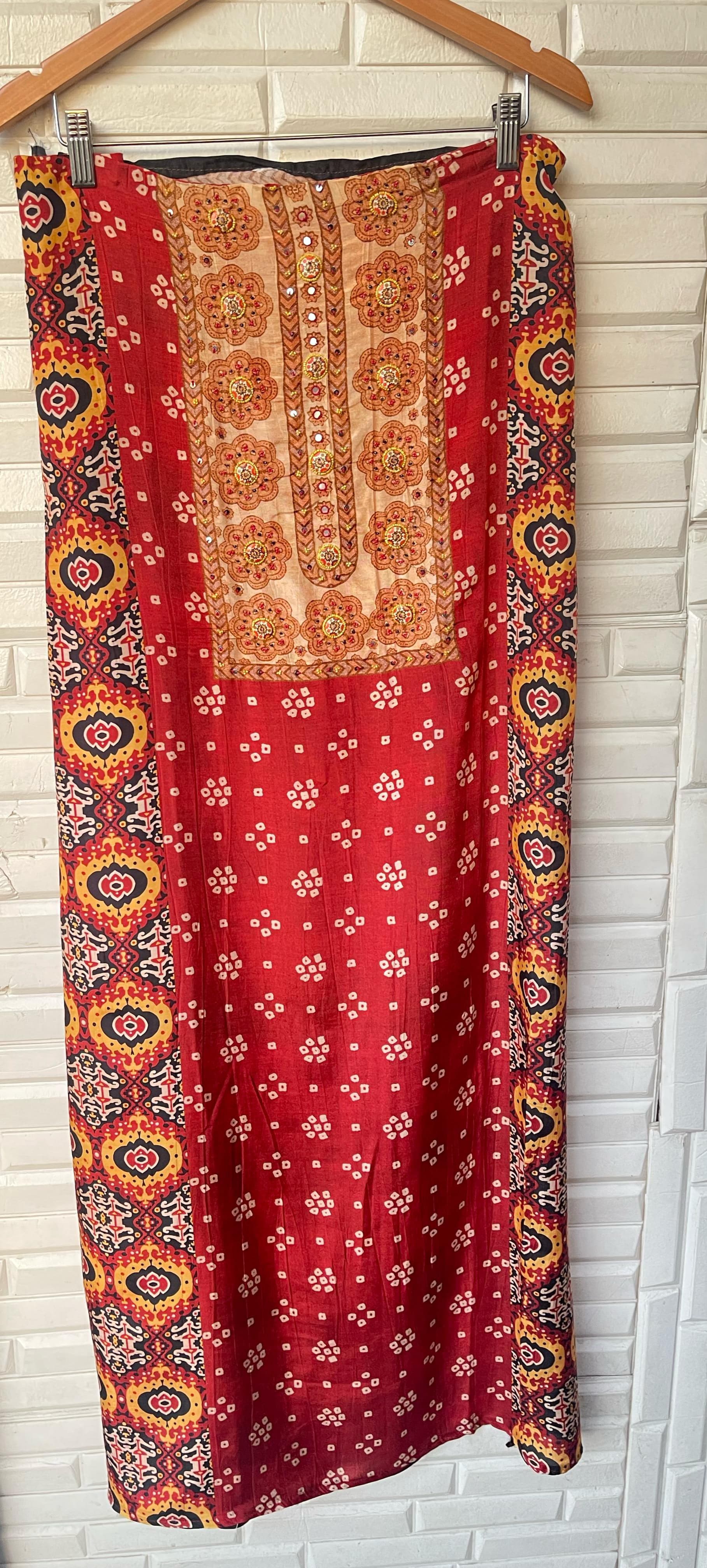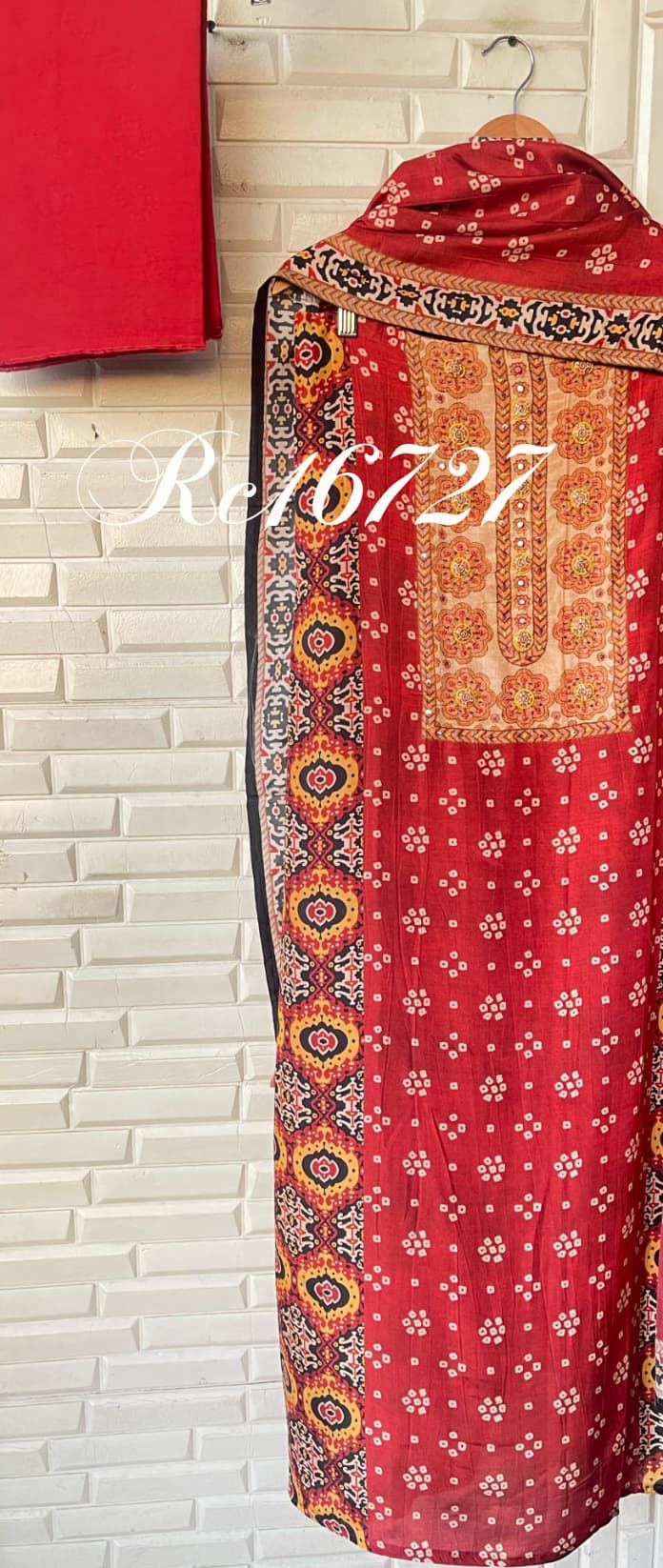 đ Muslin printed fabric unstitched shirt with pearl mirror work resham sequence embroidery