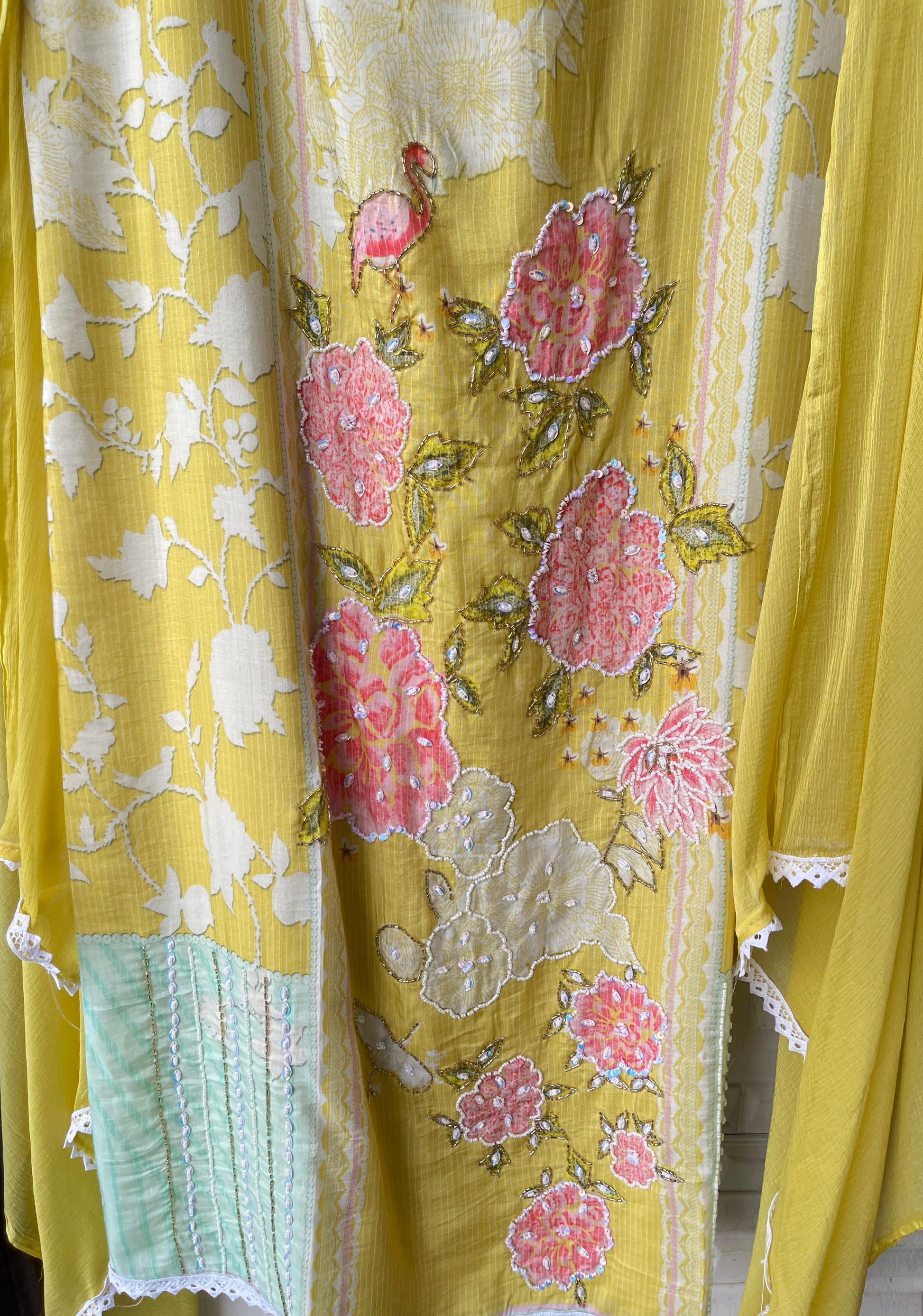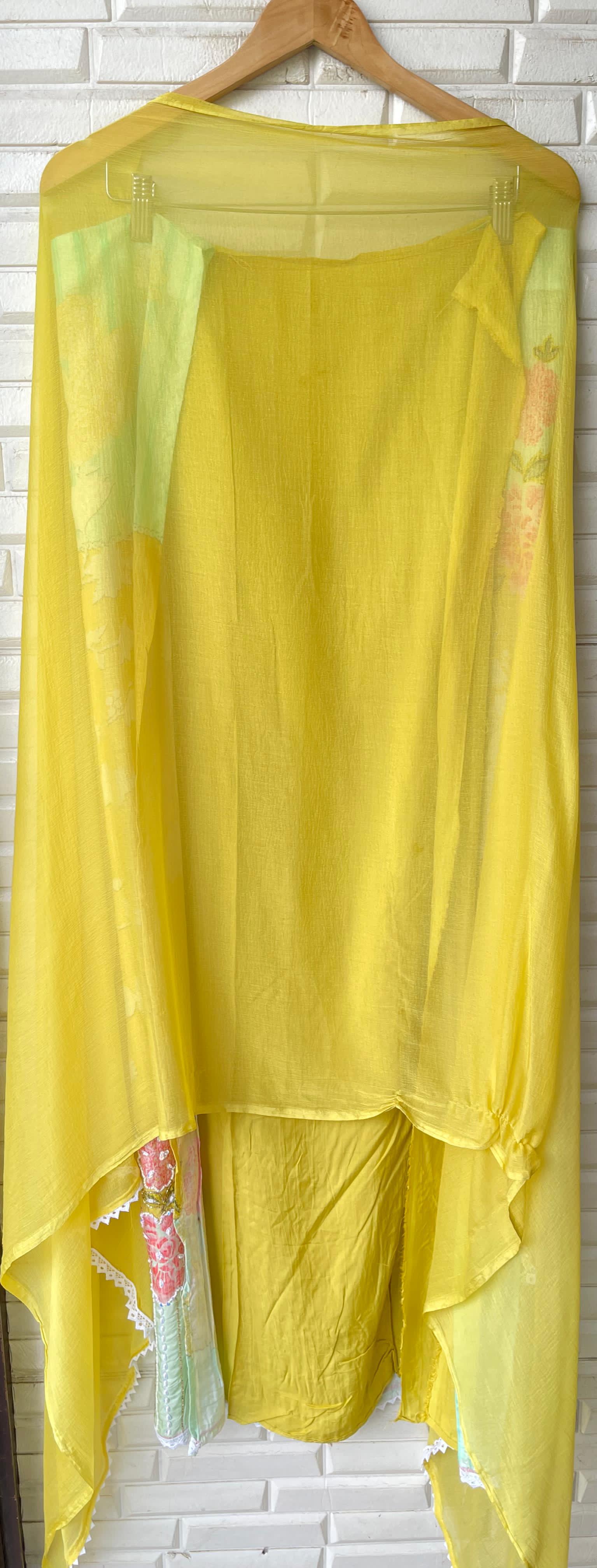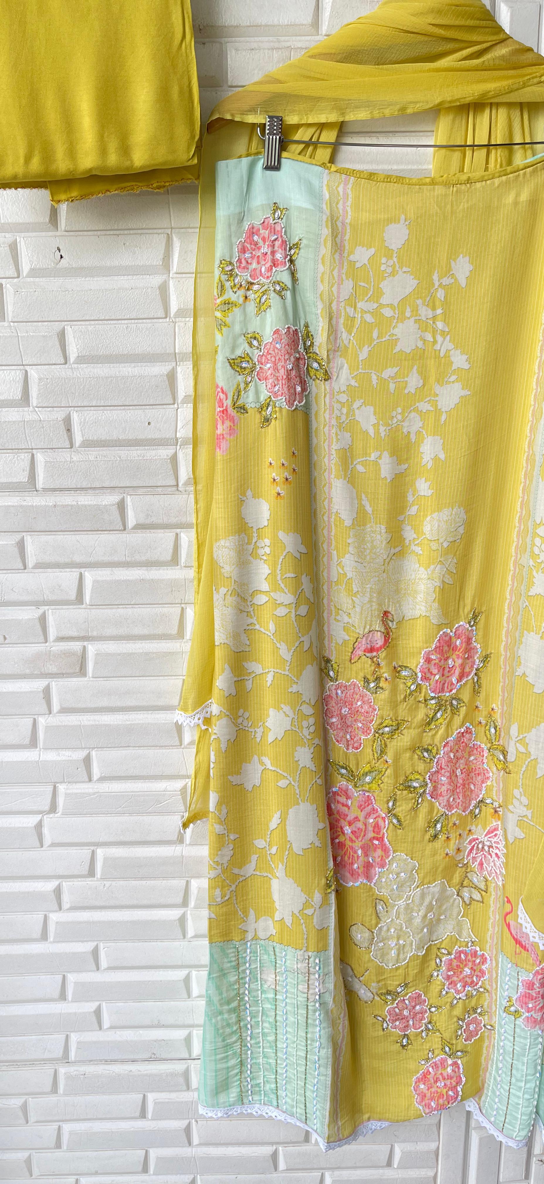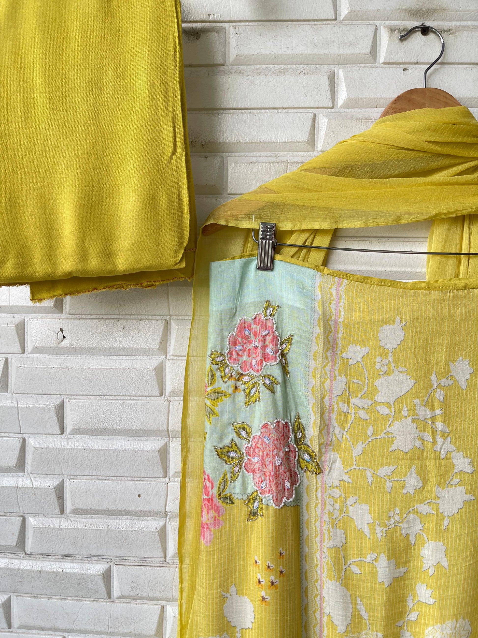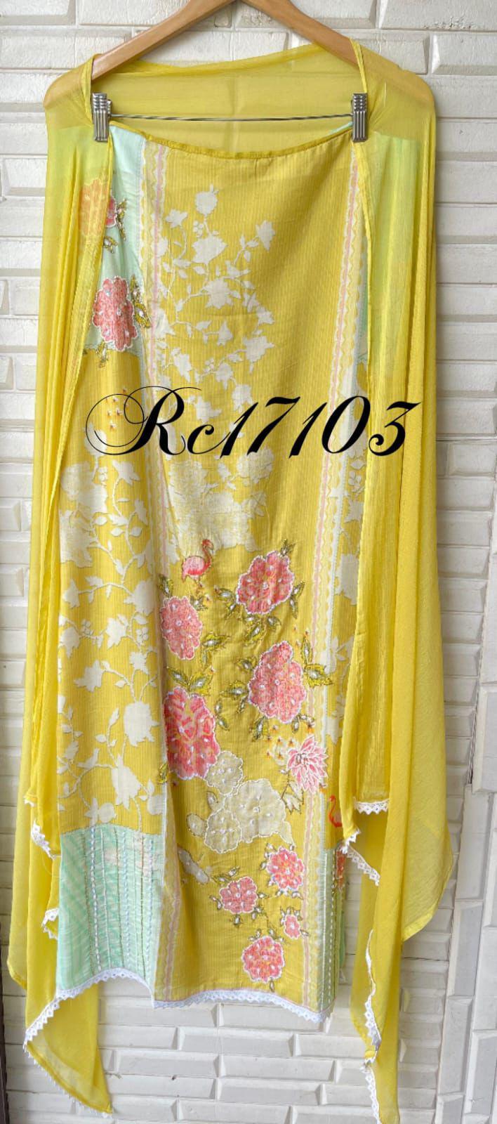 😊 muslin printed fabric un stitched shirt with sequence pearl kutdanna embroidery
