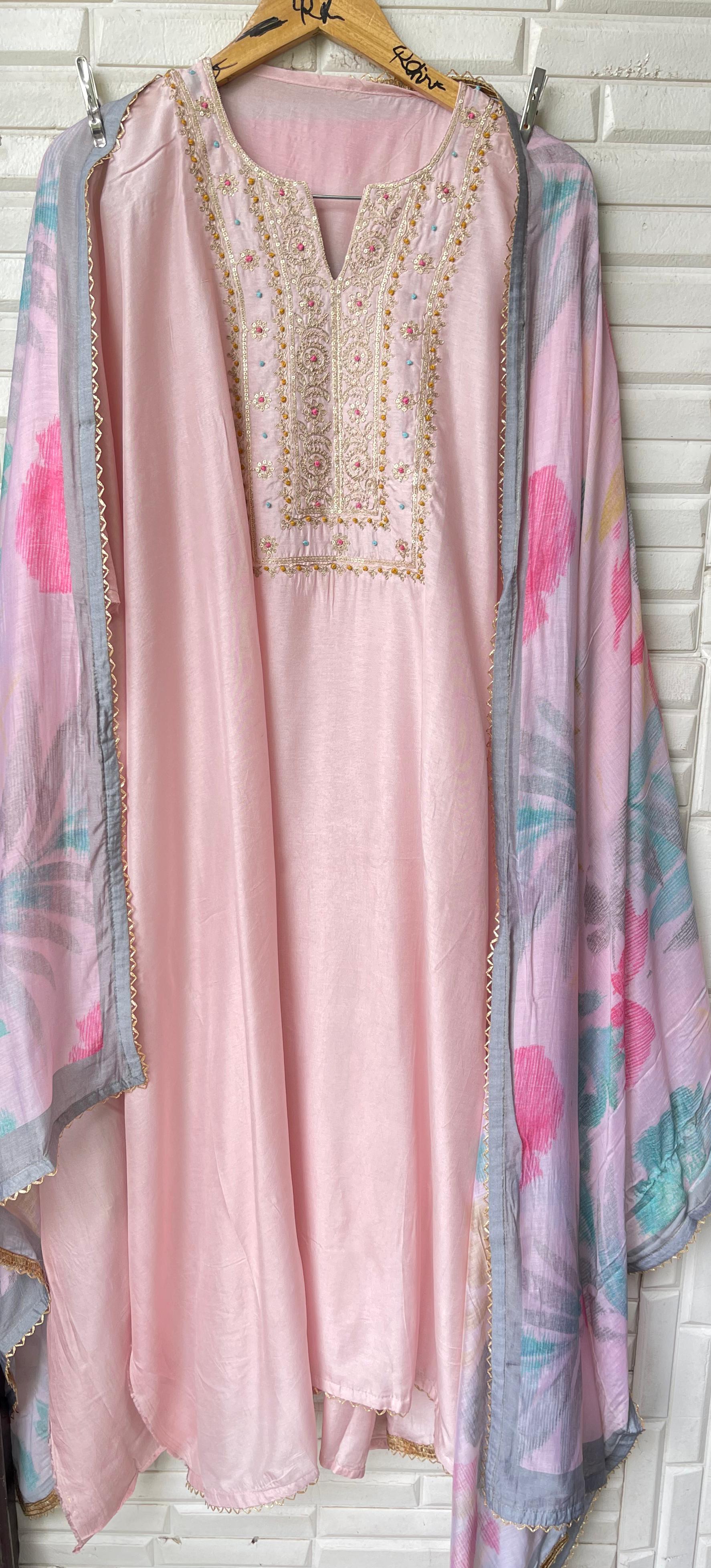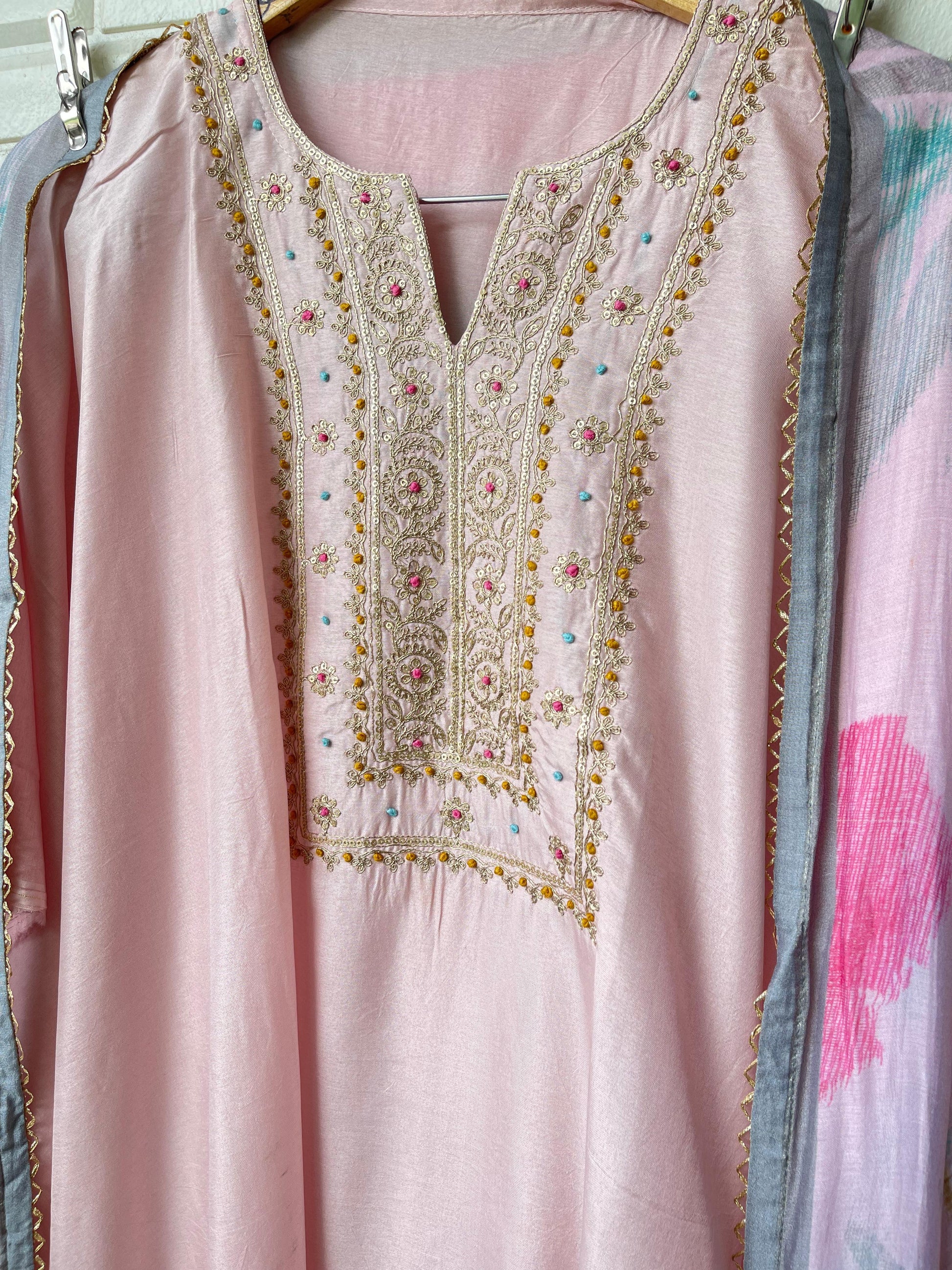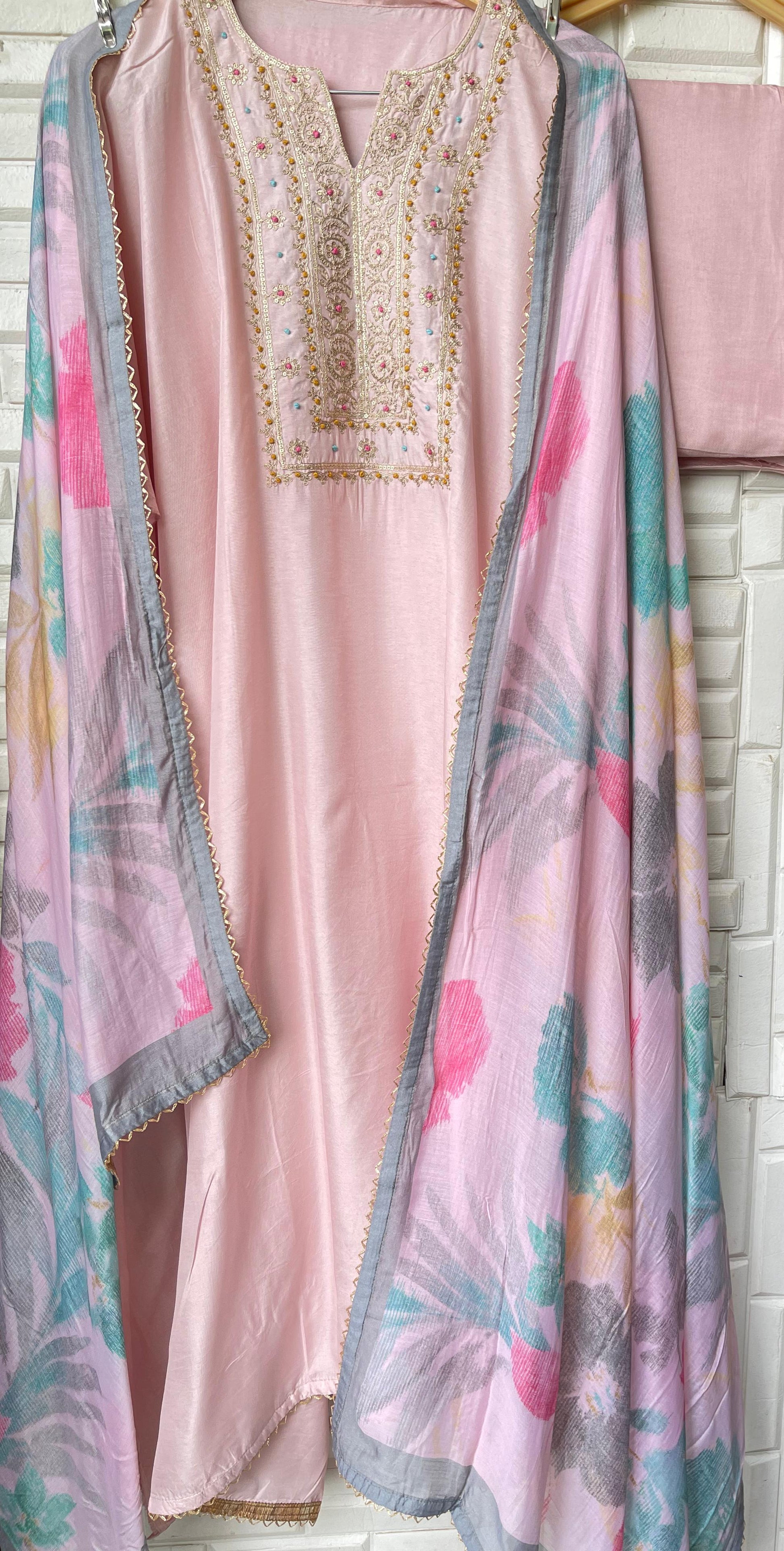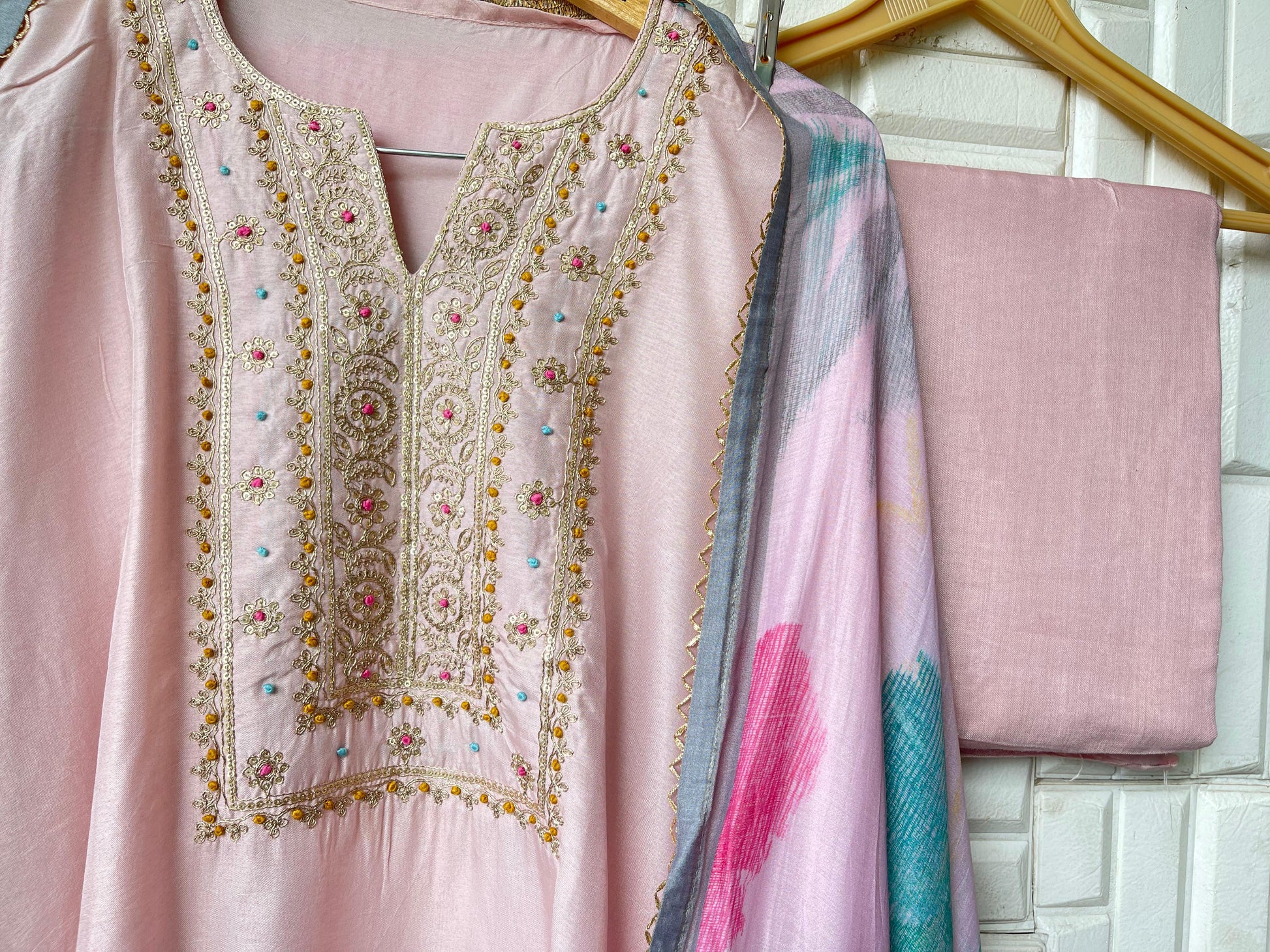 😊 muslin fabric unstitched shirt with sequence zari resham beads embroidery