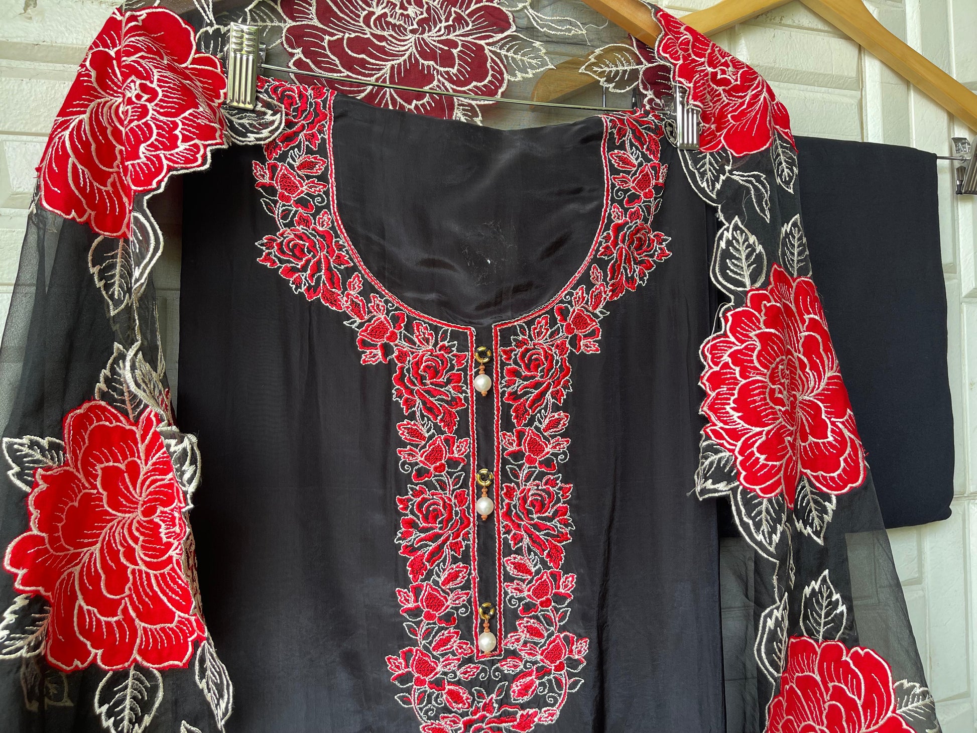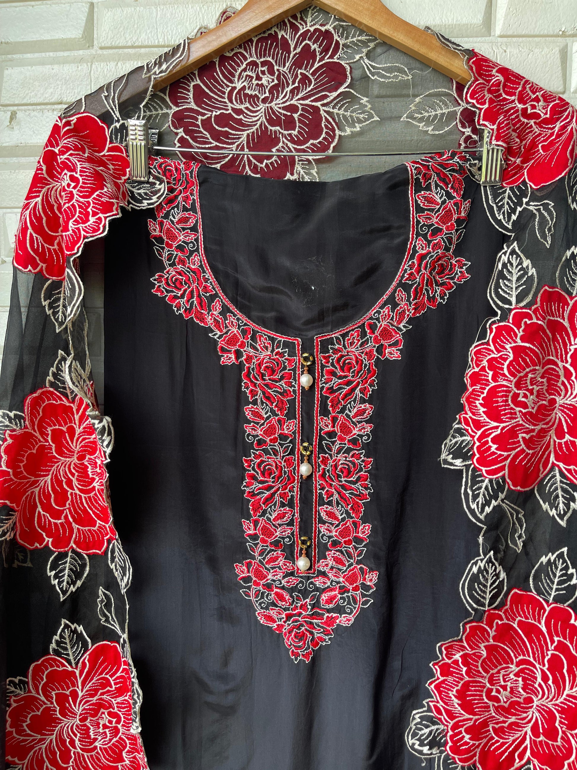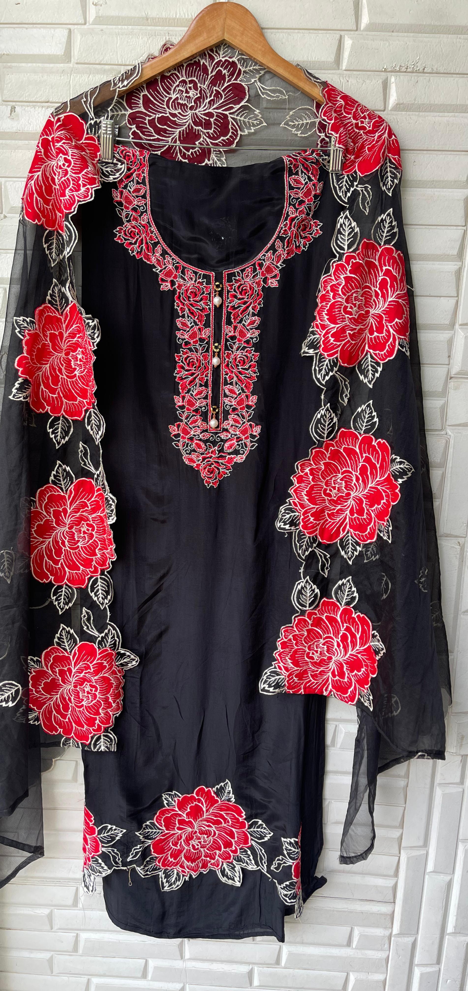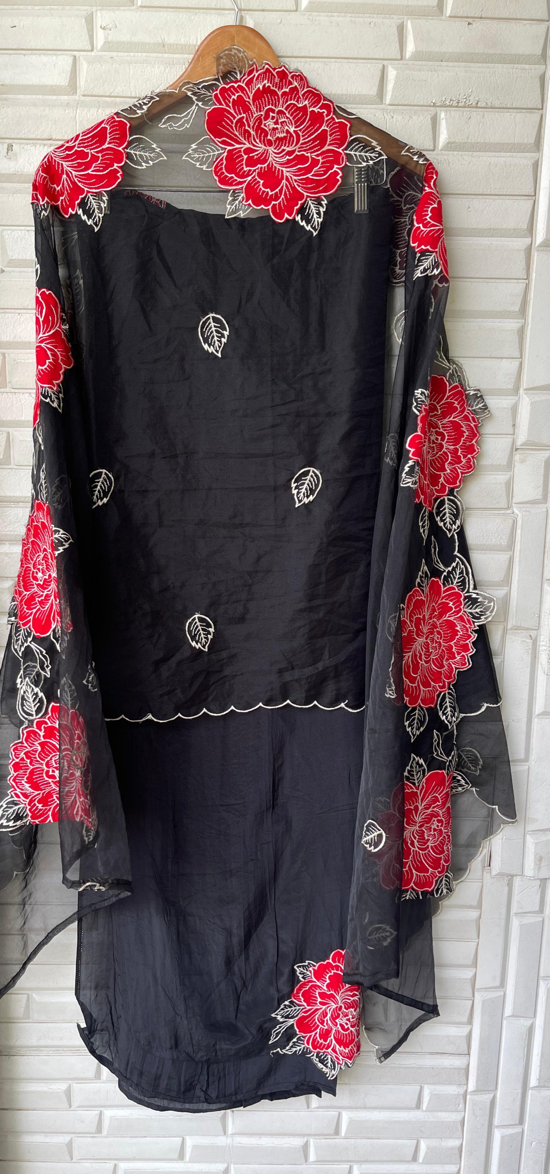 π muslin silk fabric unstitched shirt with resham patchwork embroidery and scalping