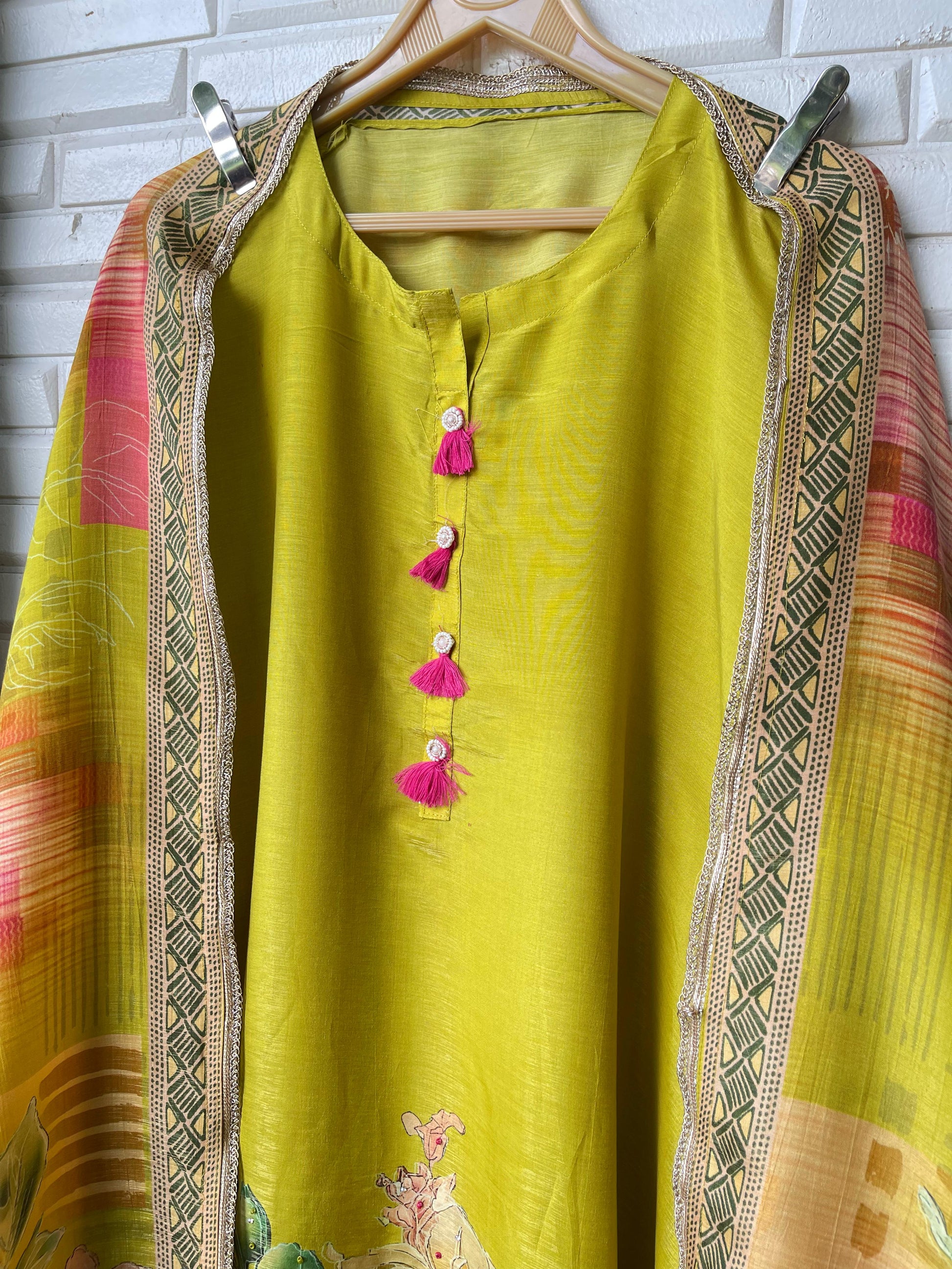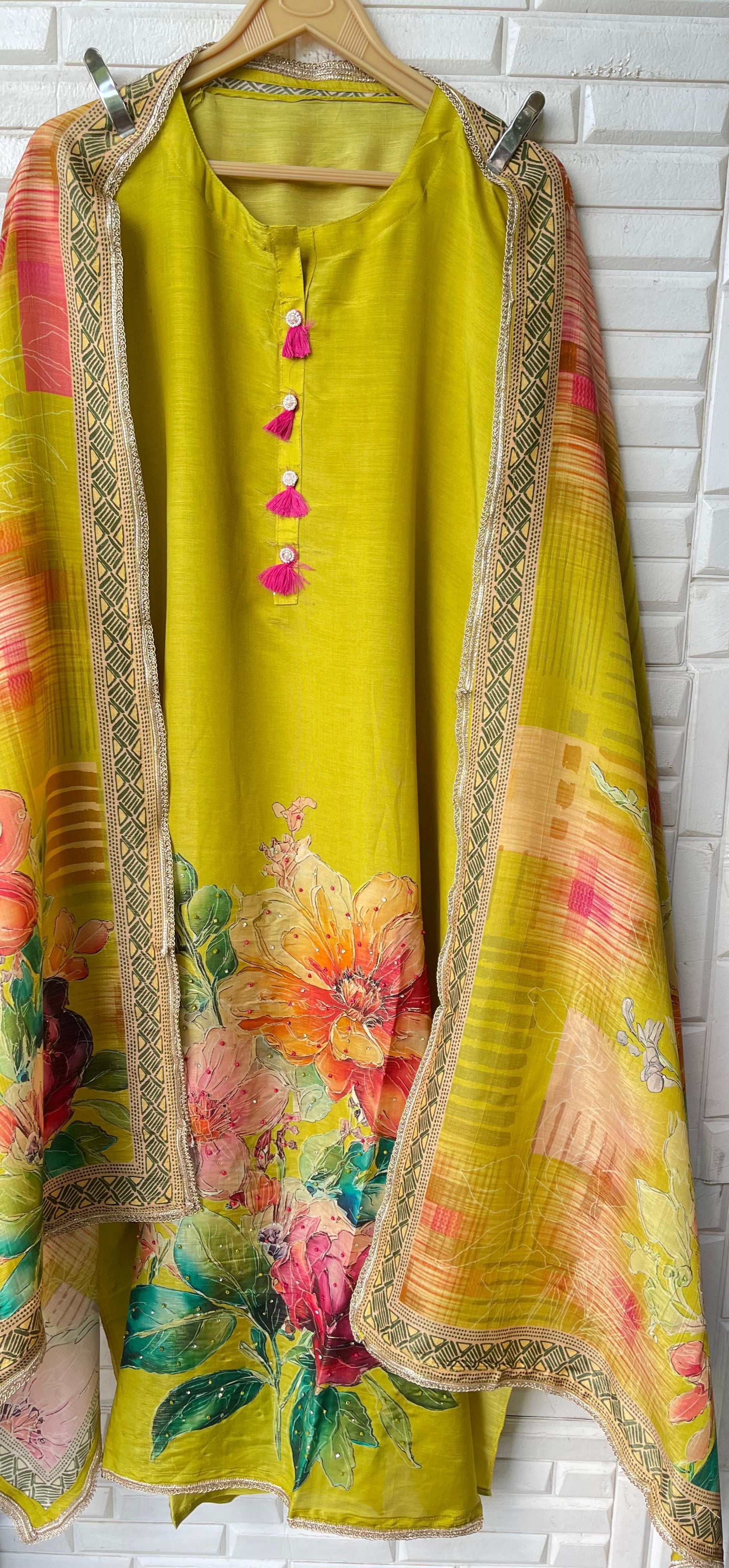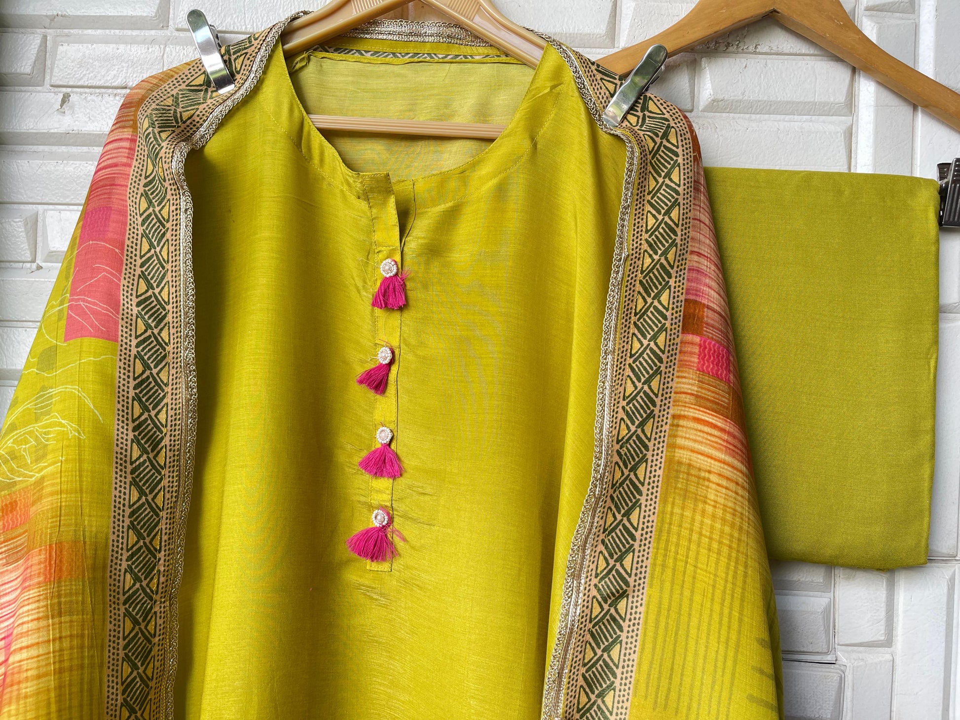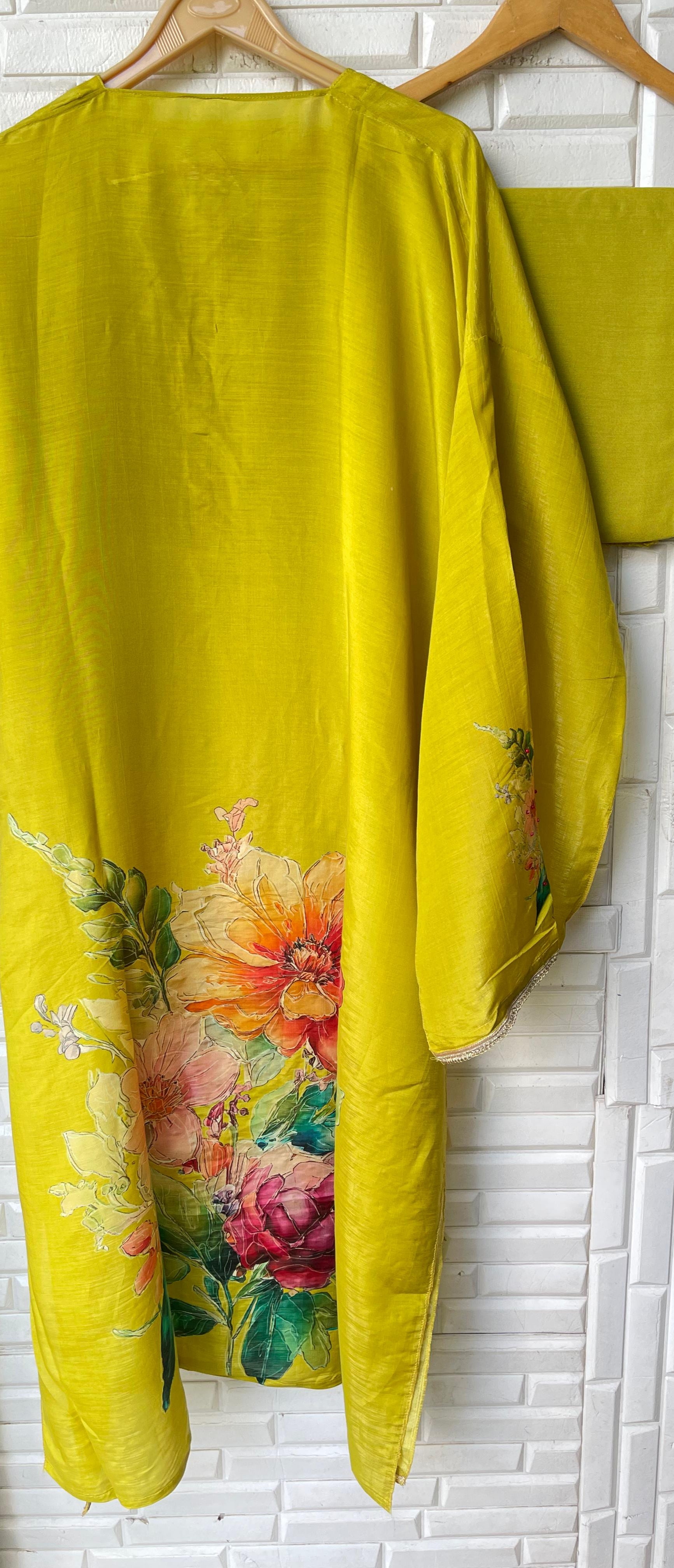 ๐ muslin silk printed fabric unstitched shirt with swarowski beads embroidery and border lace