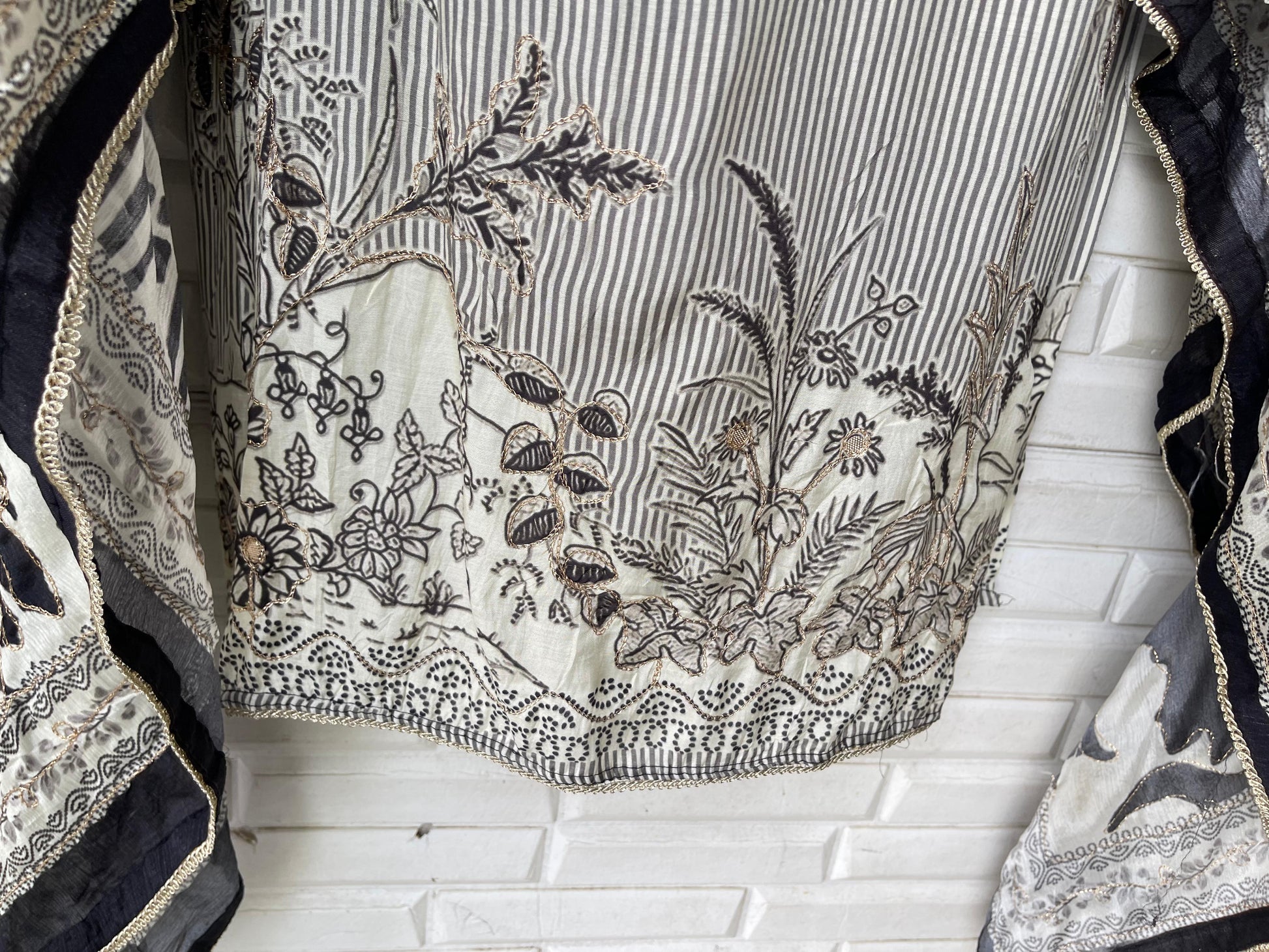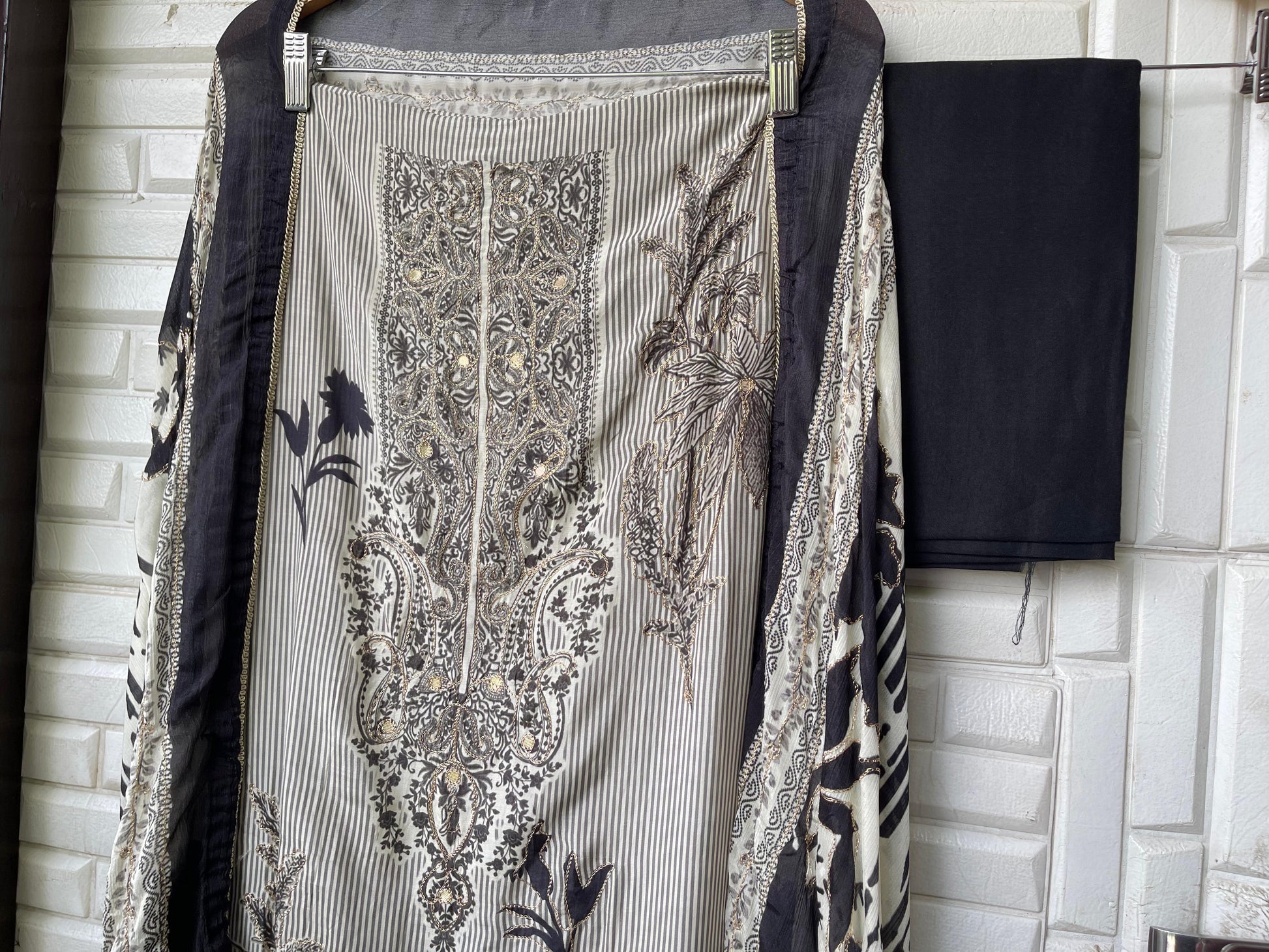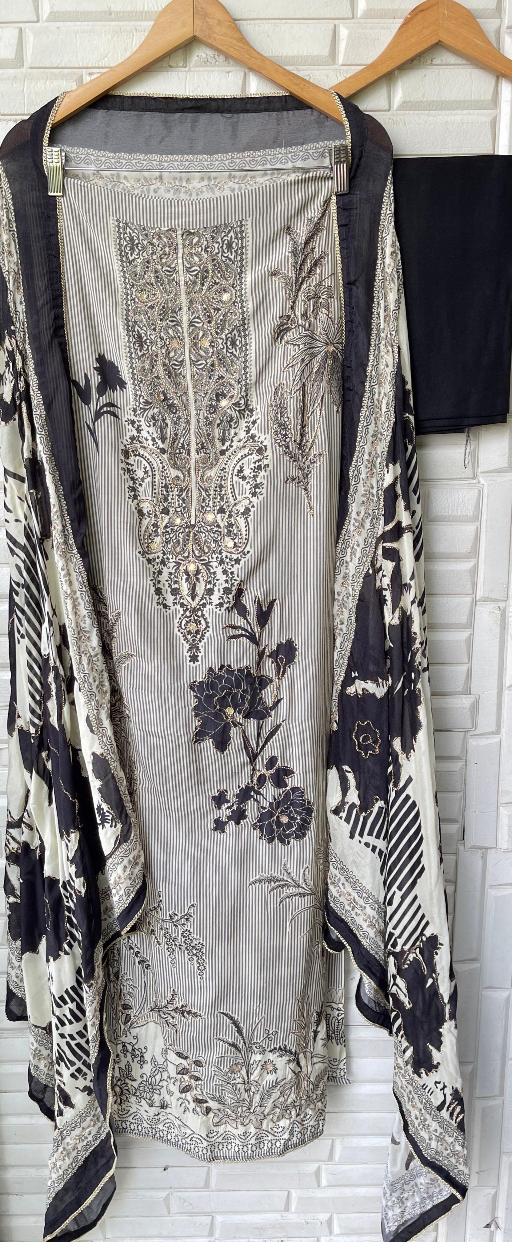 π muslin printed fabric unstitched shirt with gotta work zari gotta embroidery and ghera lace