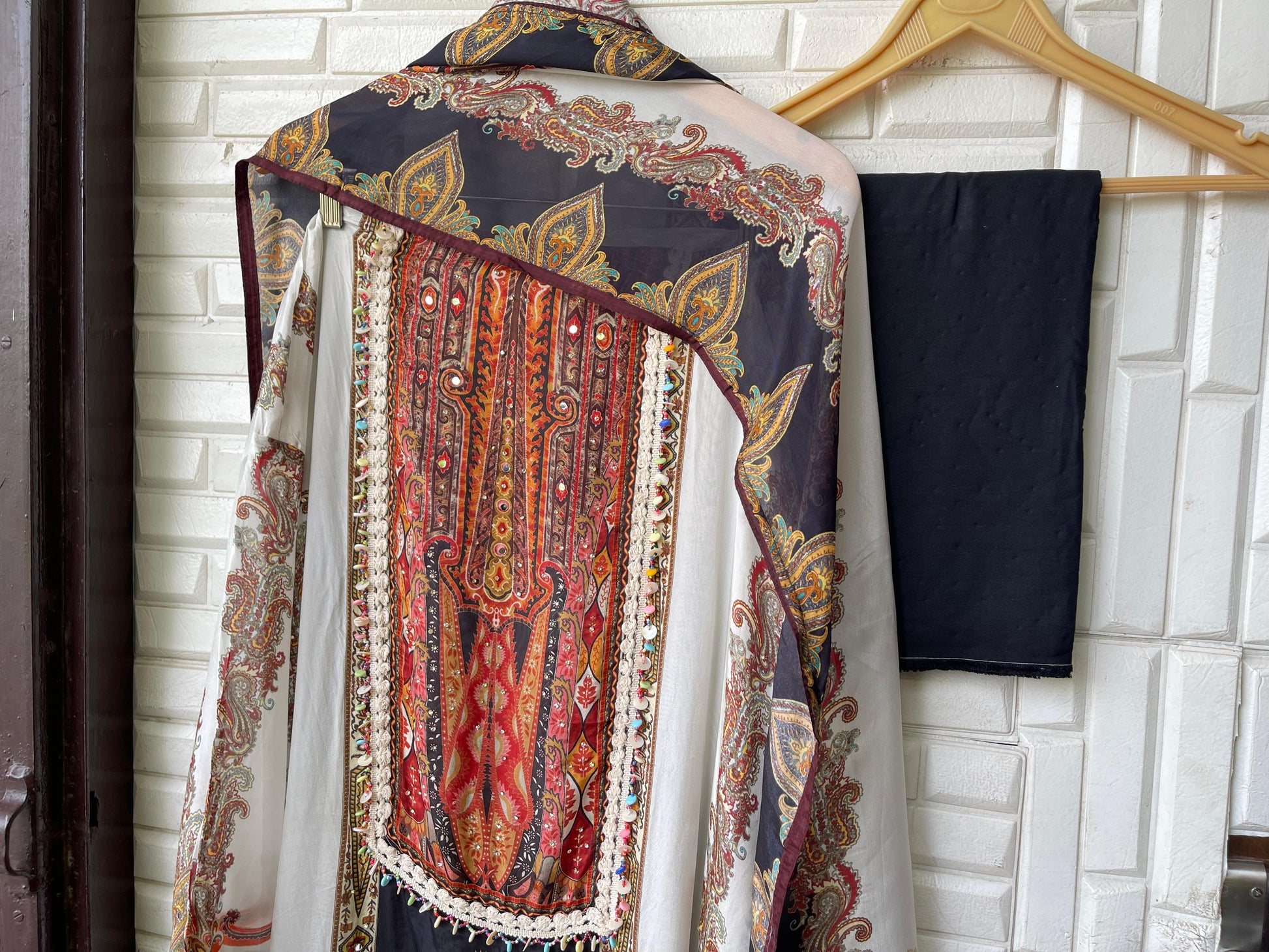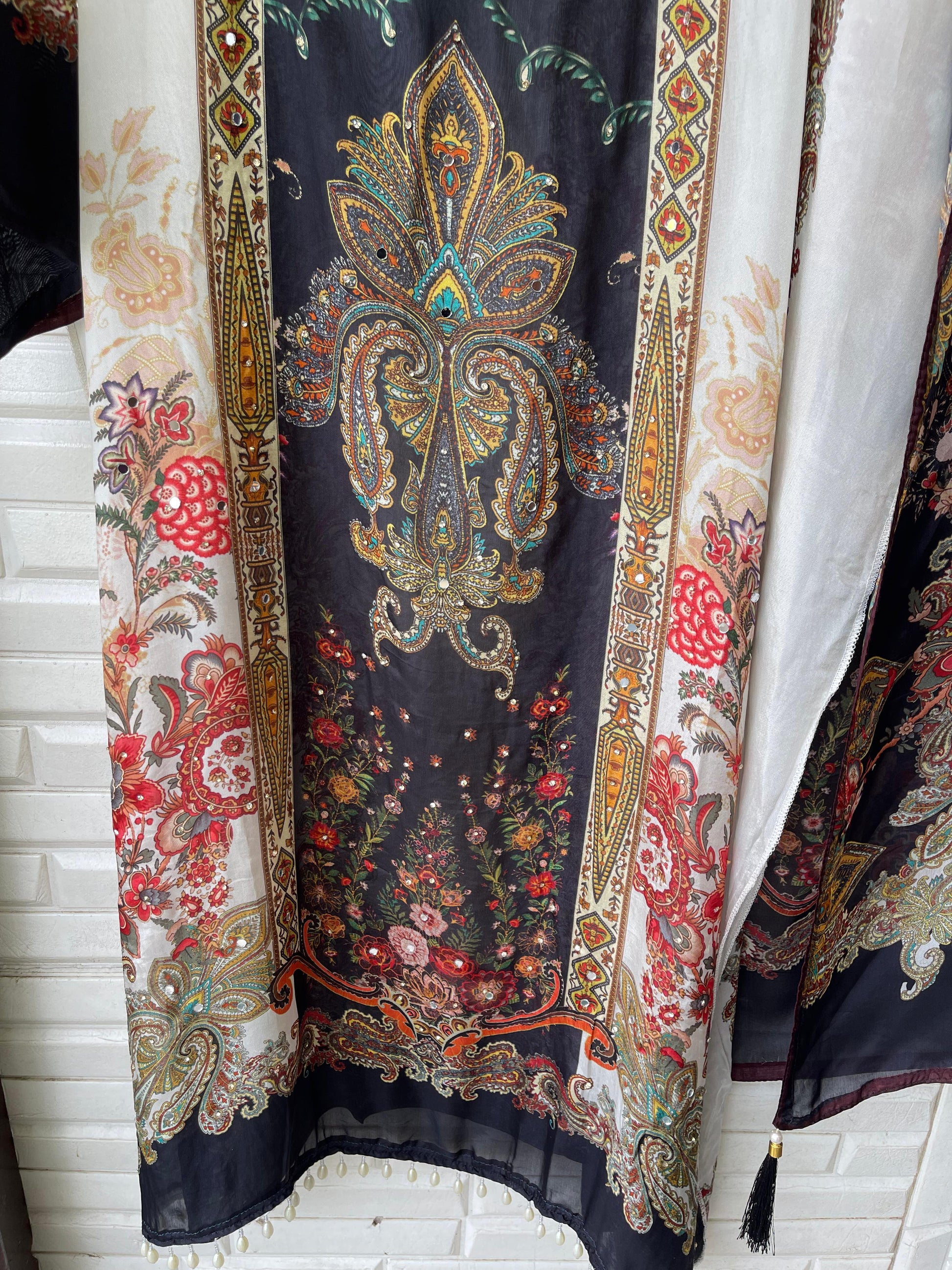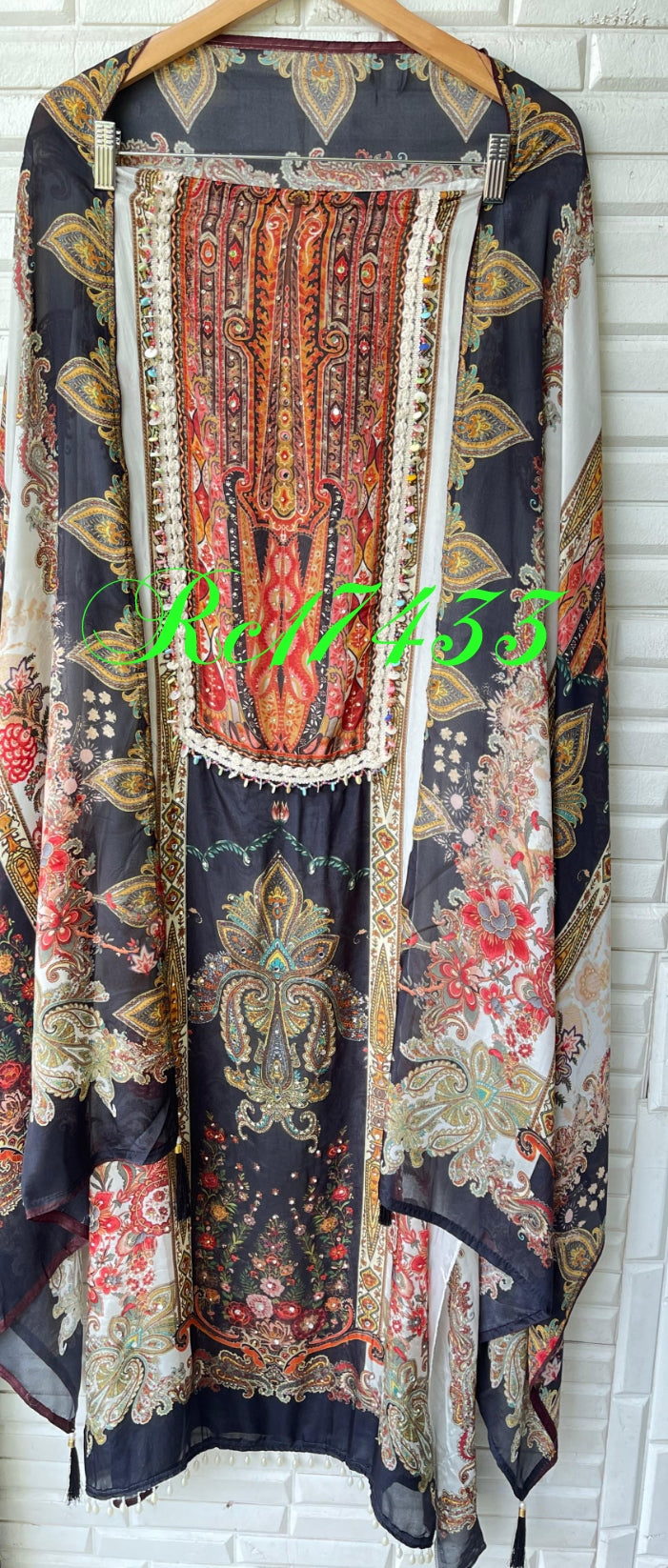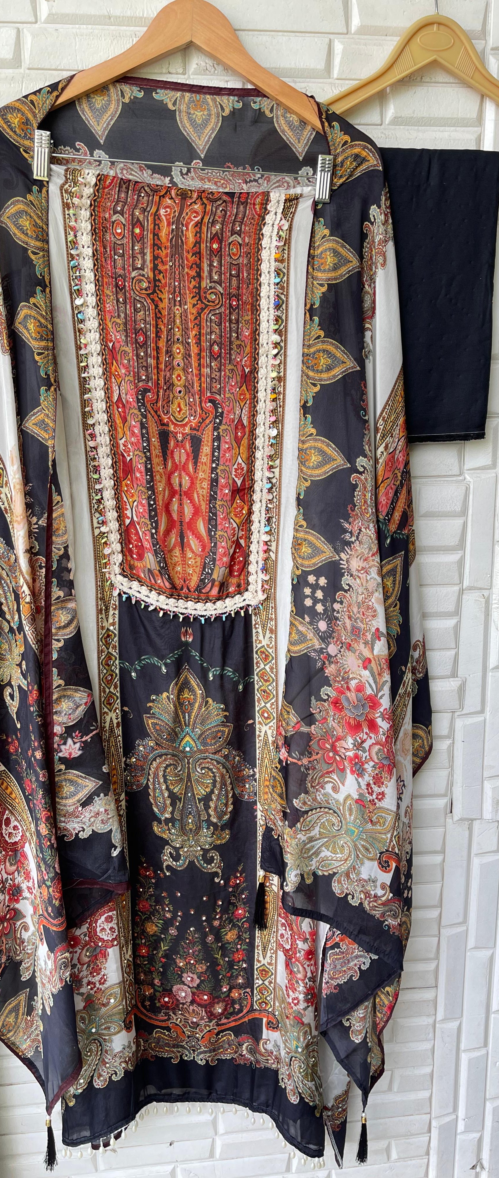 😊 muslin crape rprinted fabric unstitched shirt with mirror work swarowski highlighting