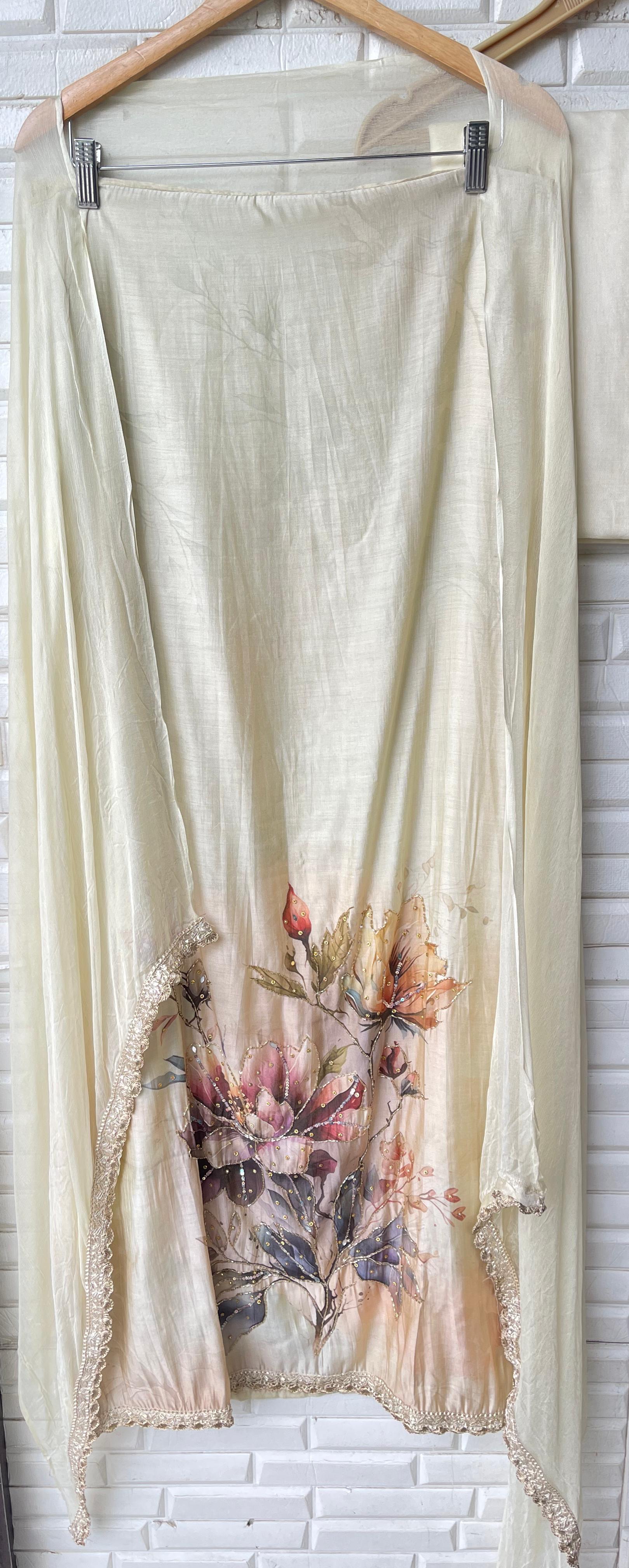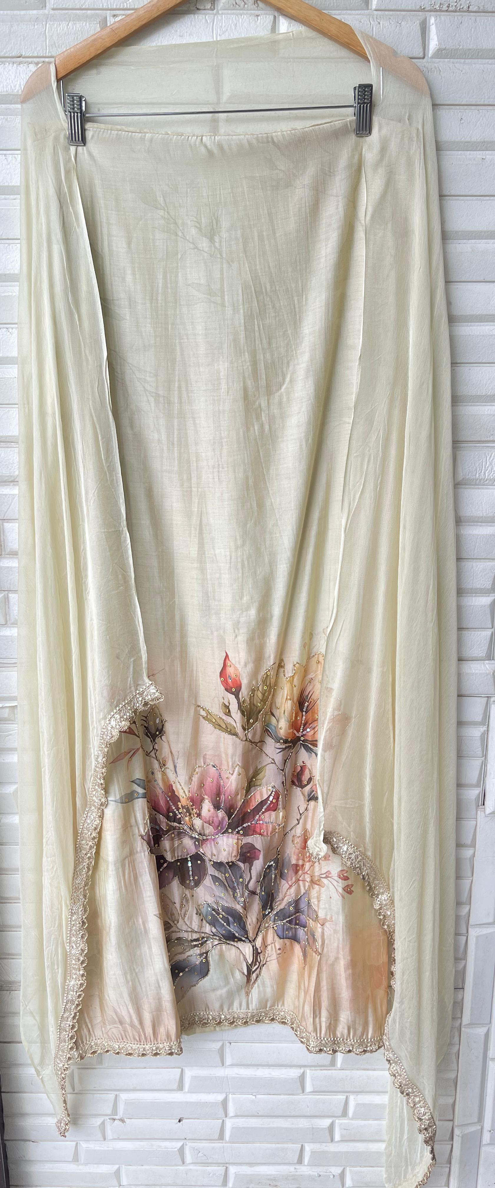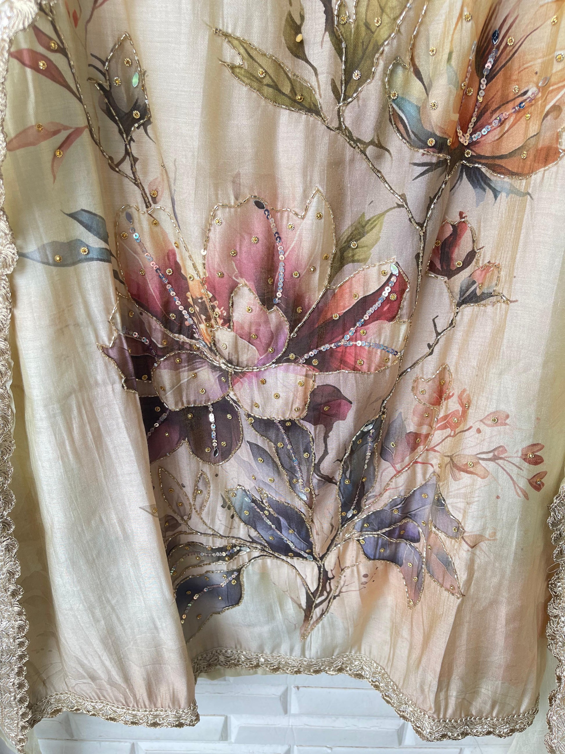 π muslin printed fabric unstitched shirt with kutdanna zari sequence embroidery and kingri ghera lace