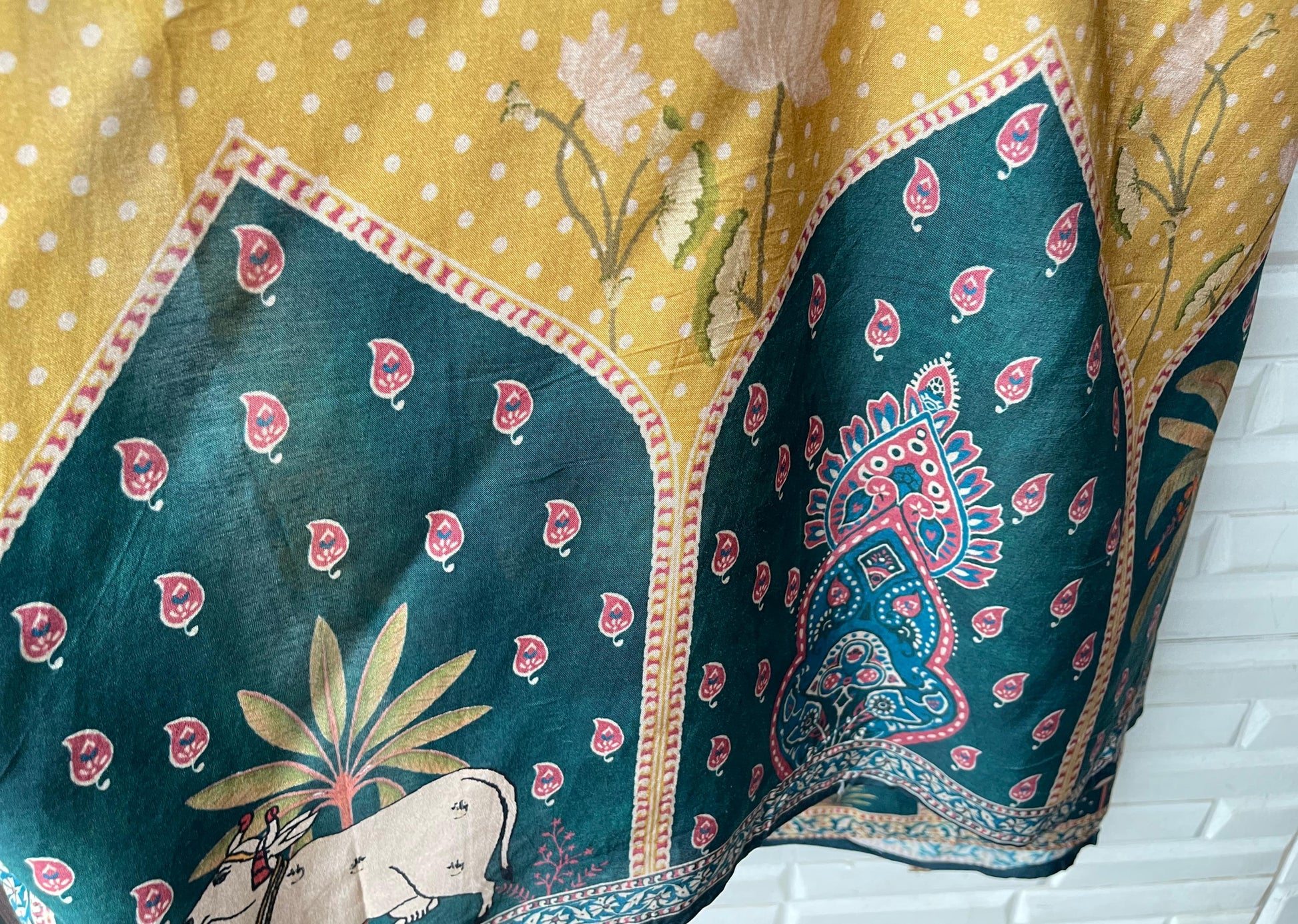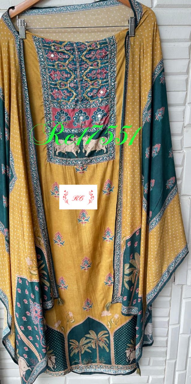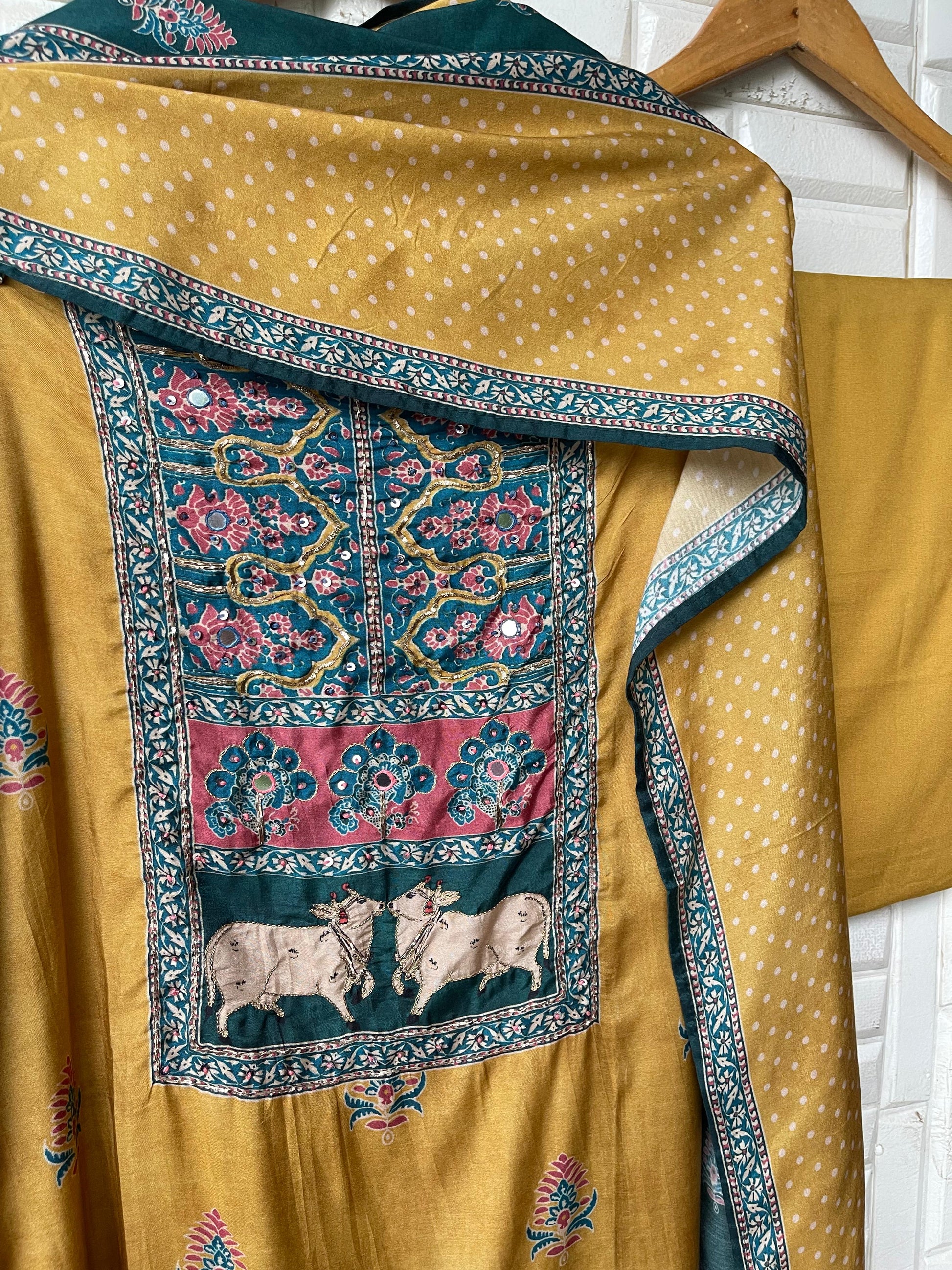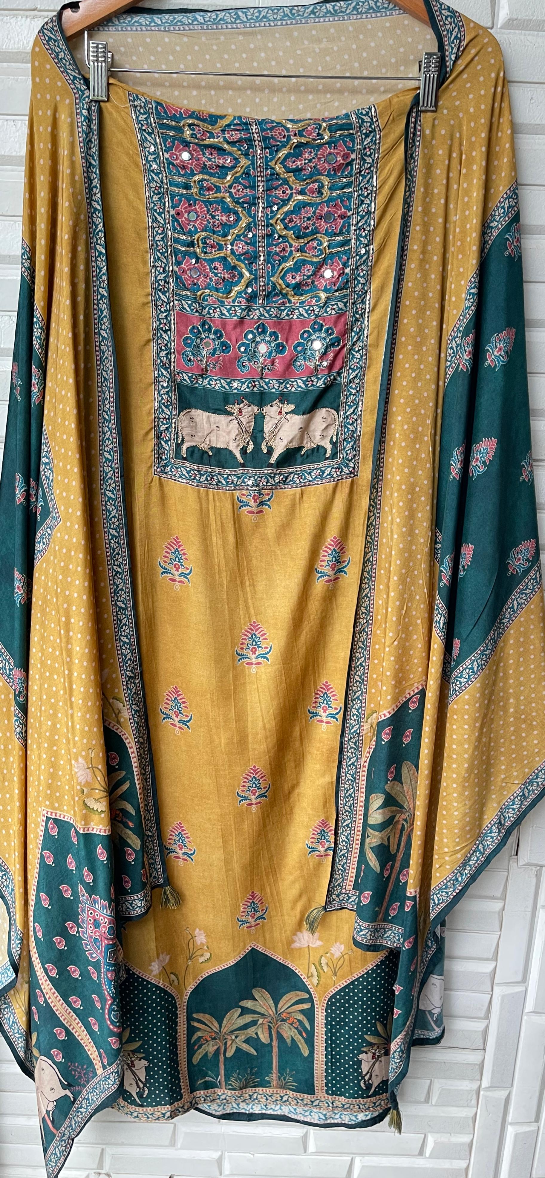 π muslin printed fabric unstitched shirt with pitta mirror gotta work resham sequence zari embroidery