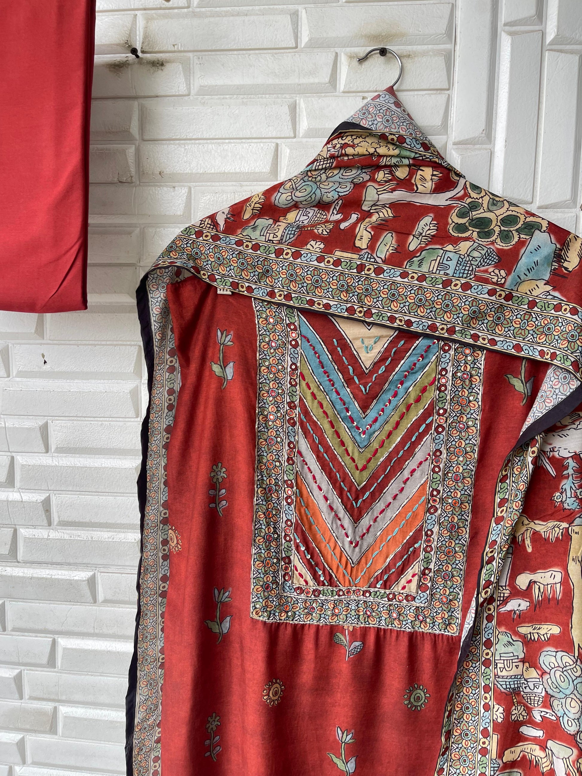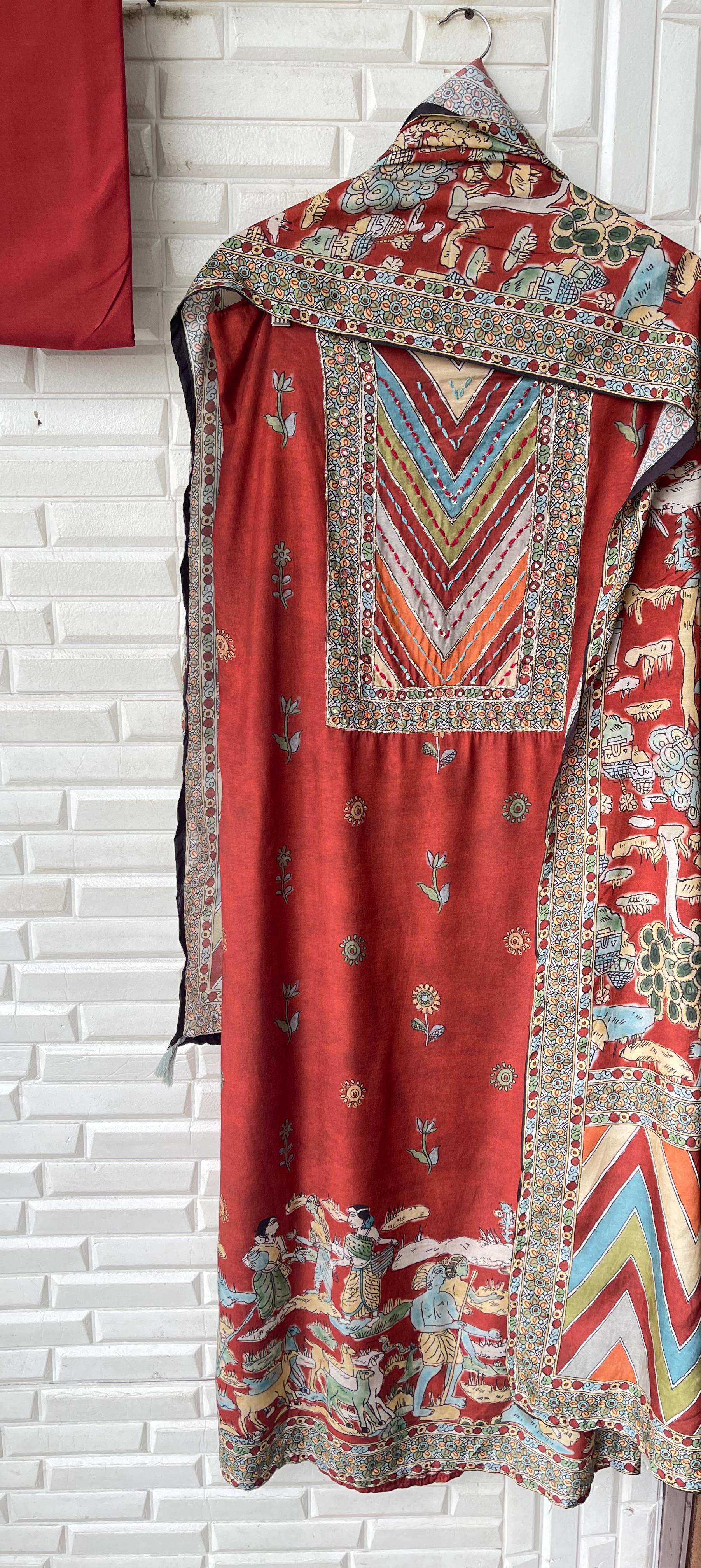 😊 muslin printed fabric unstitched shirt with mirror work kutdanna resham embroidery