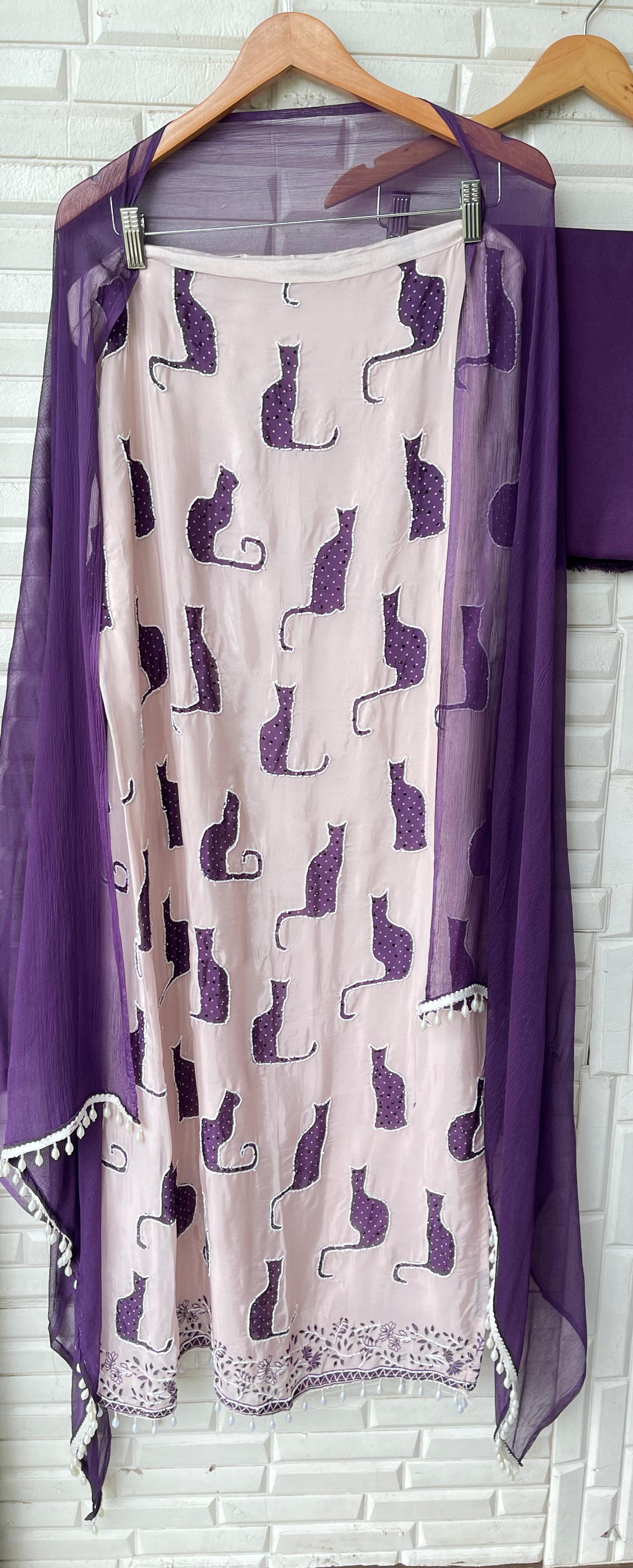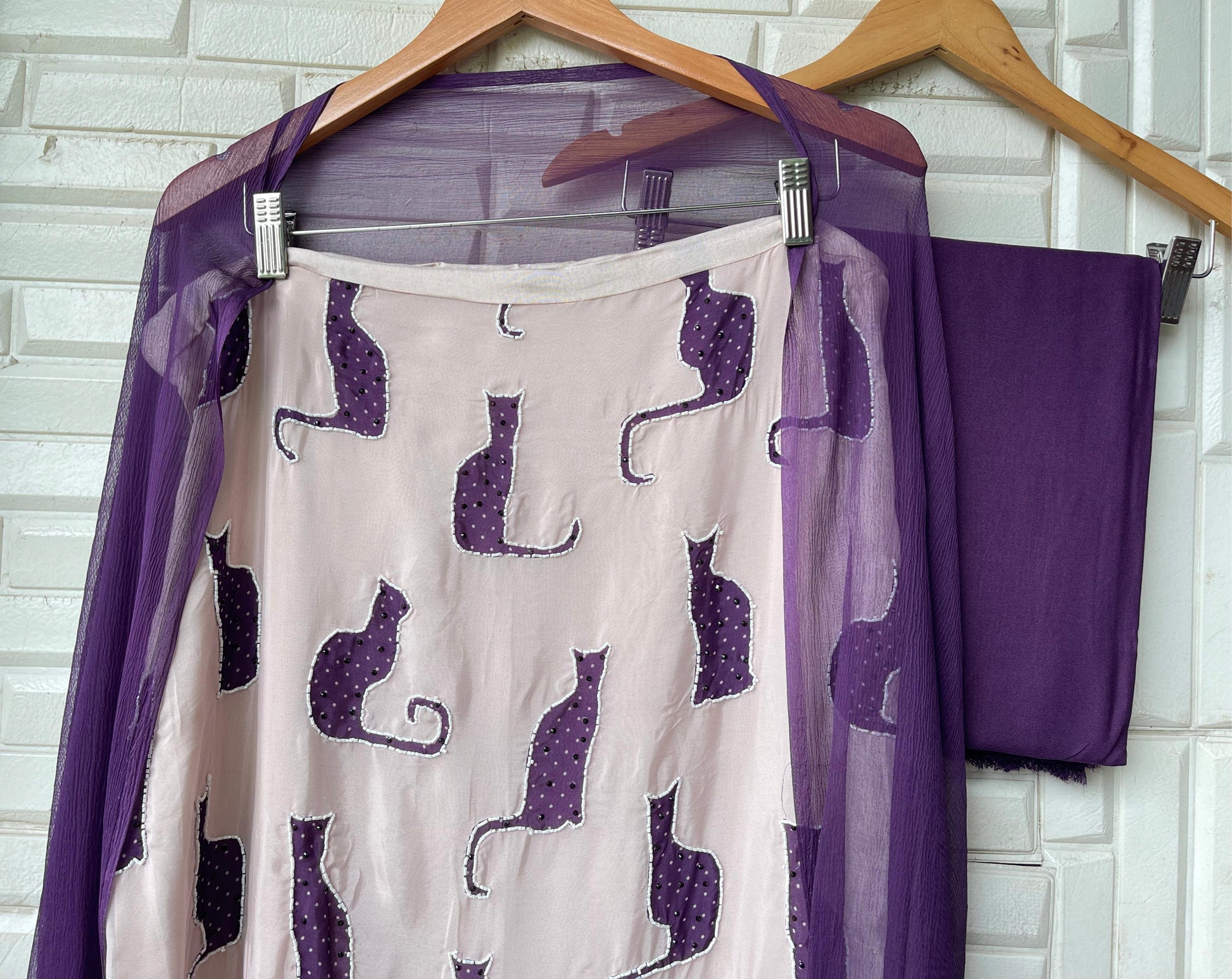 π organza crape printed fabric unstitched shirt with kutdanna sequence embroidery