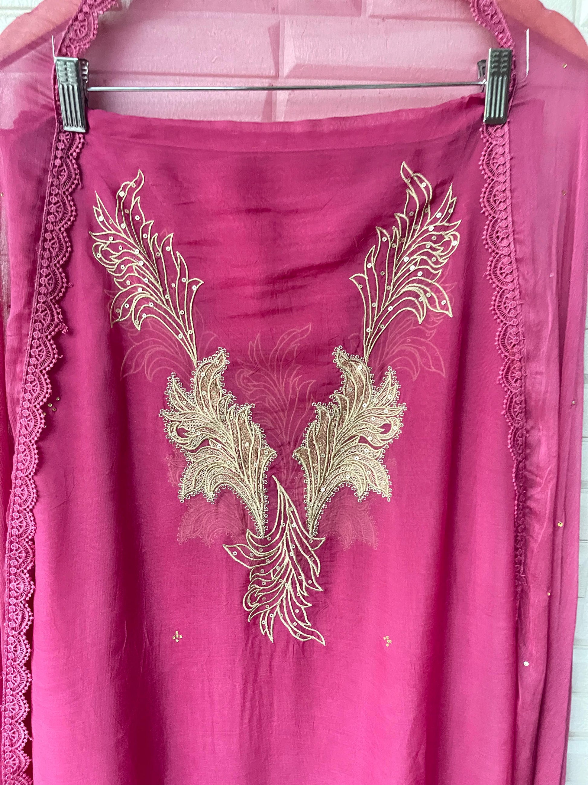 😊 pure chiffon fabric dupatta with crotia border lace and swarowski highlighting