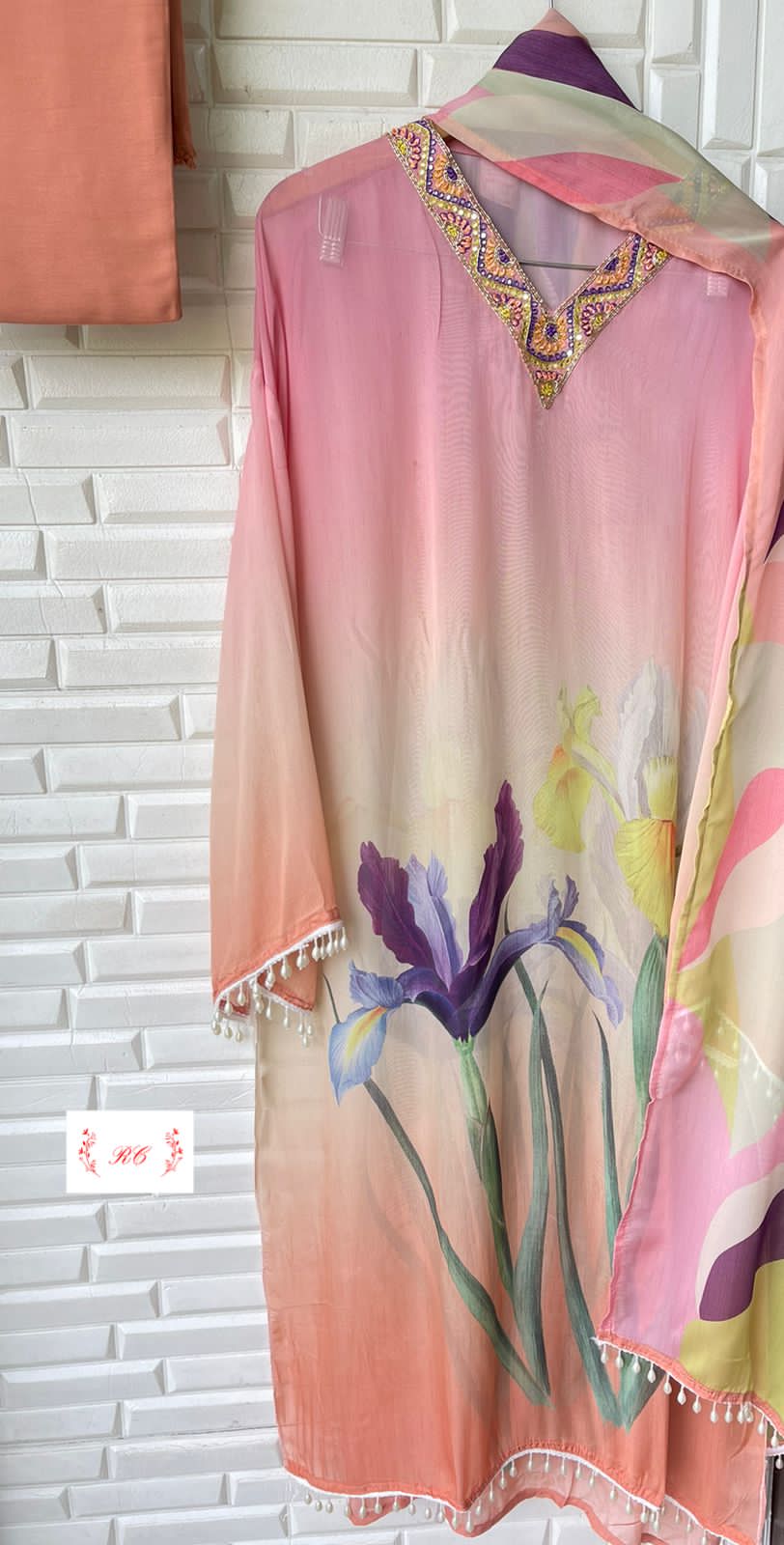 Organza Printed Semi Stitched Ladies Suit Rc 15199