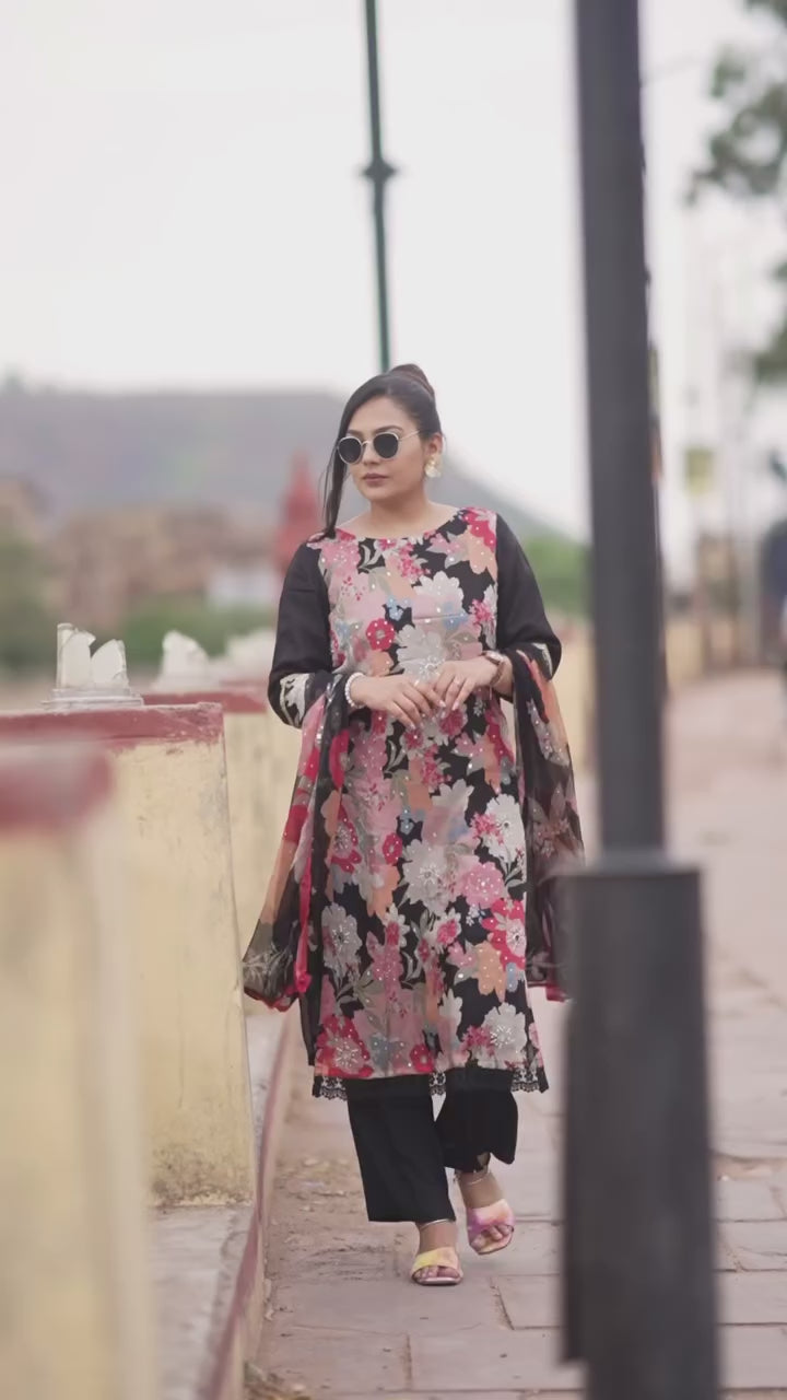 😊 Organza printed fabric unstitched shirt with mirror work pearl swarowski highlighting.