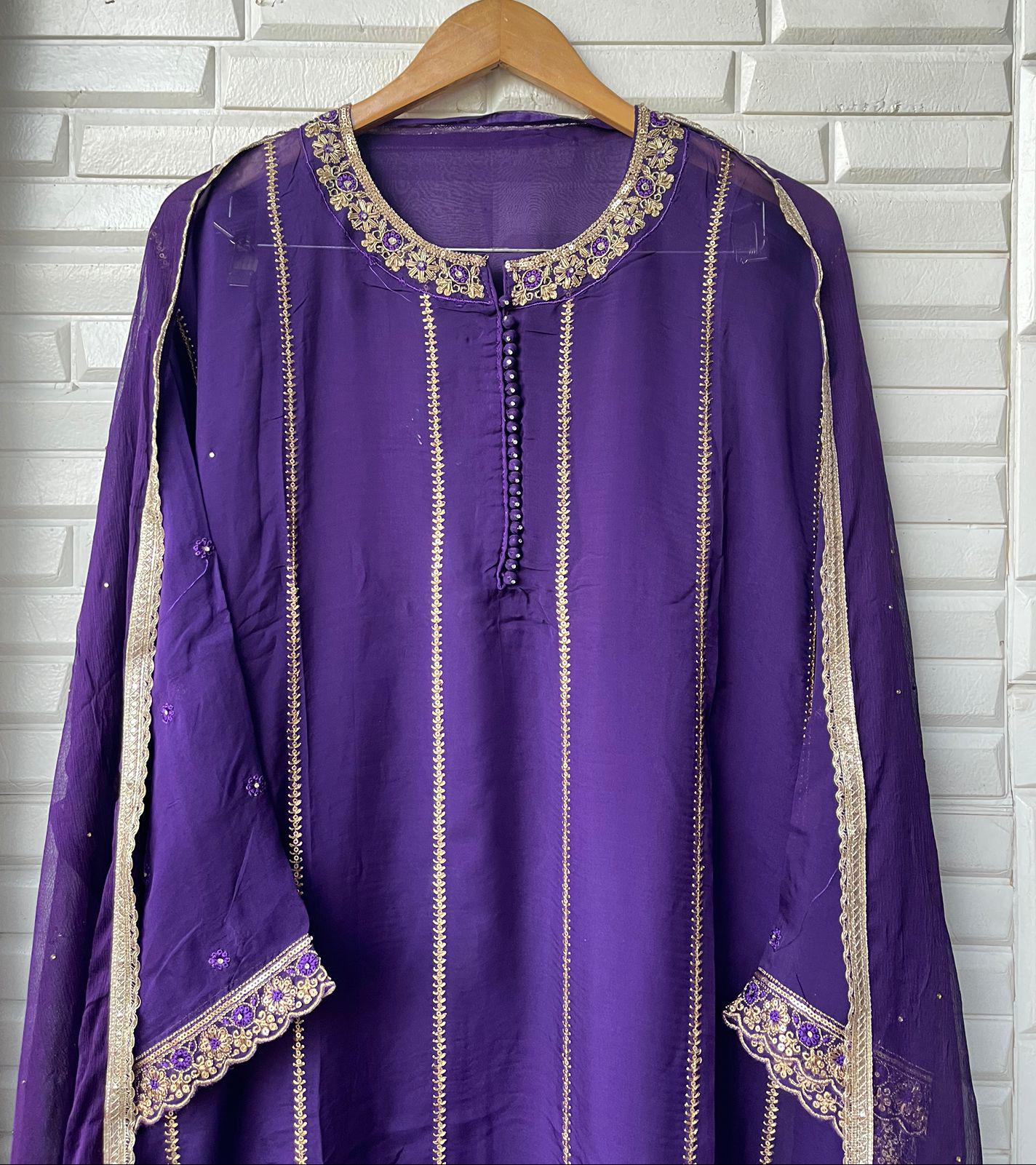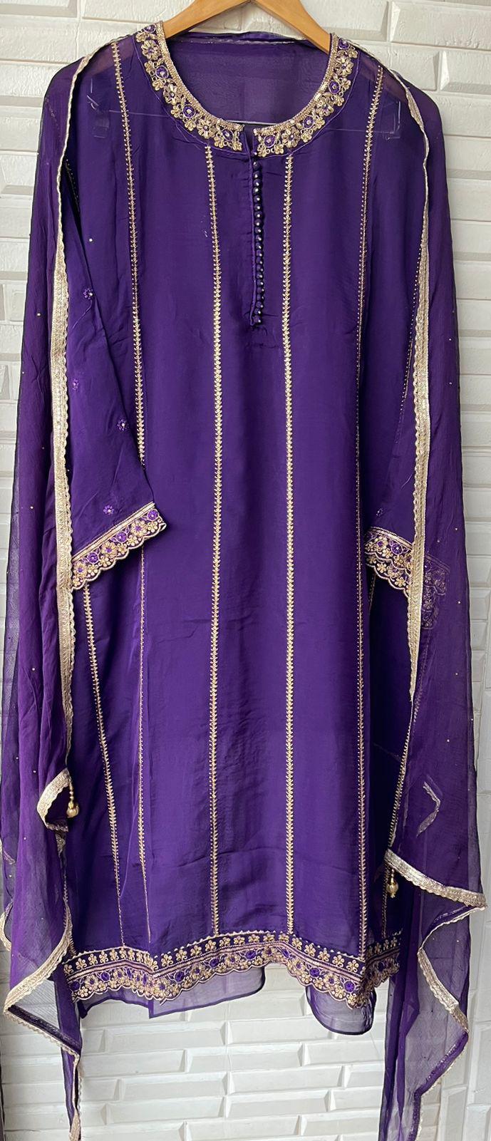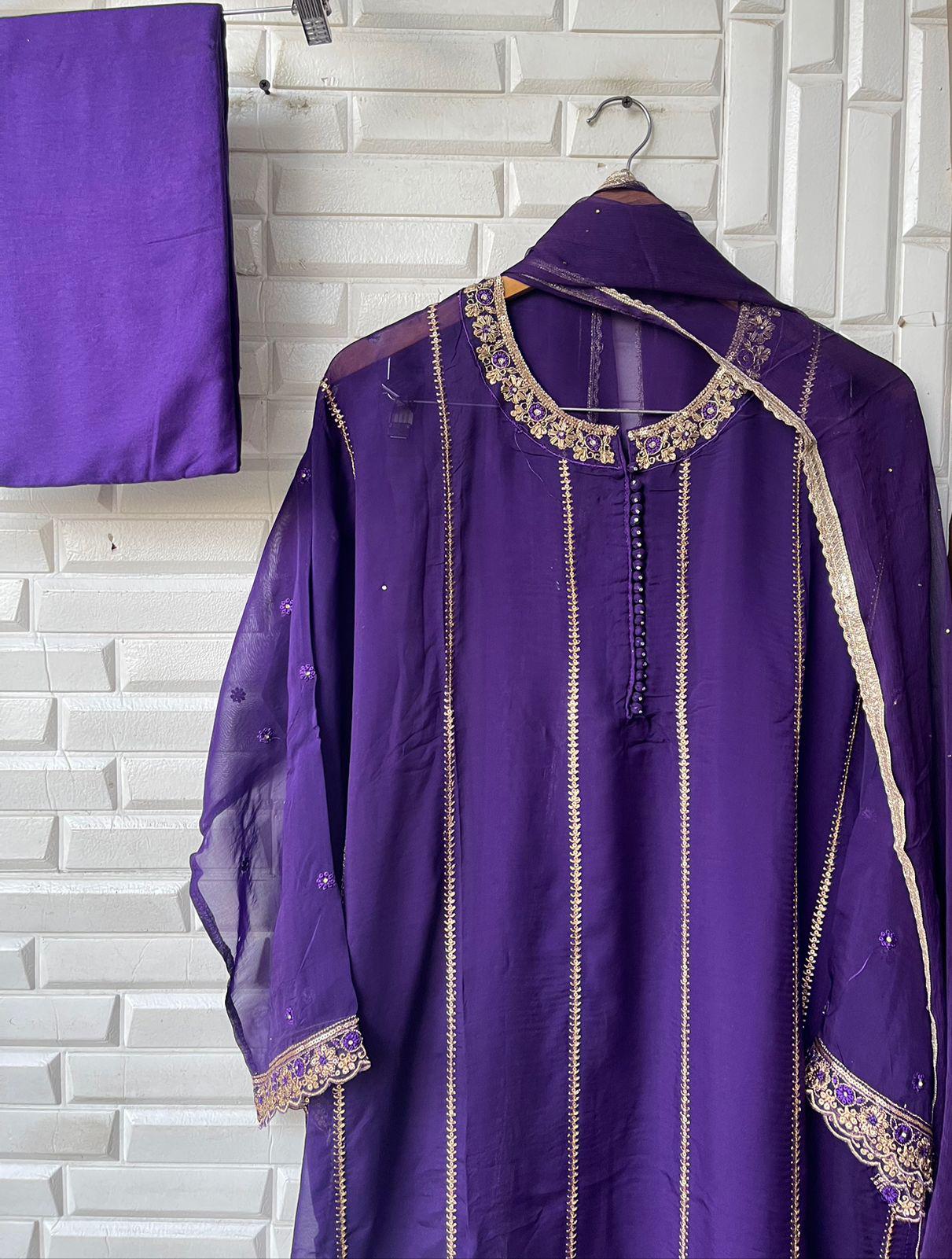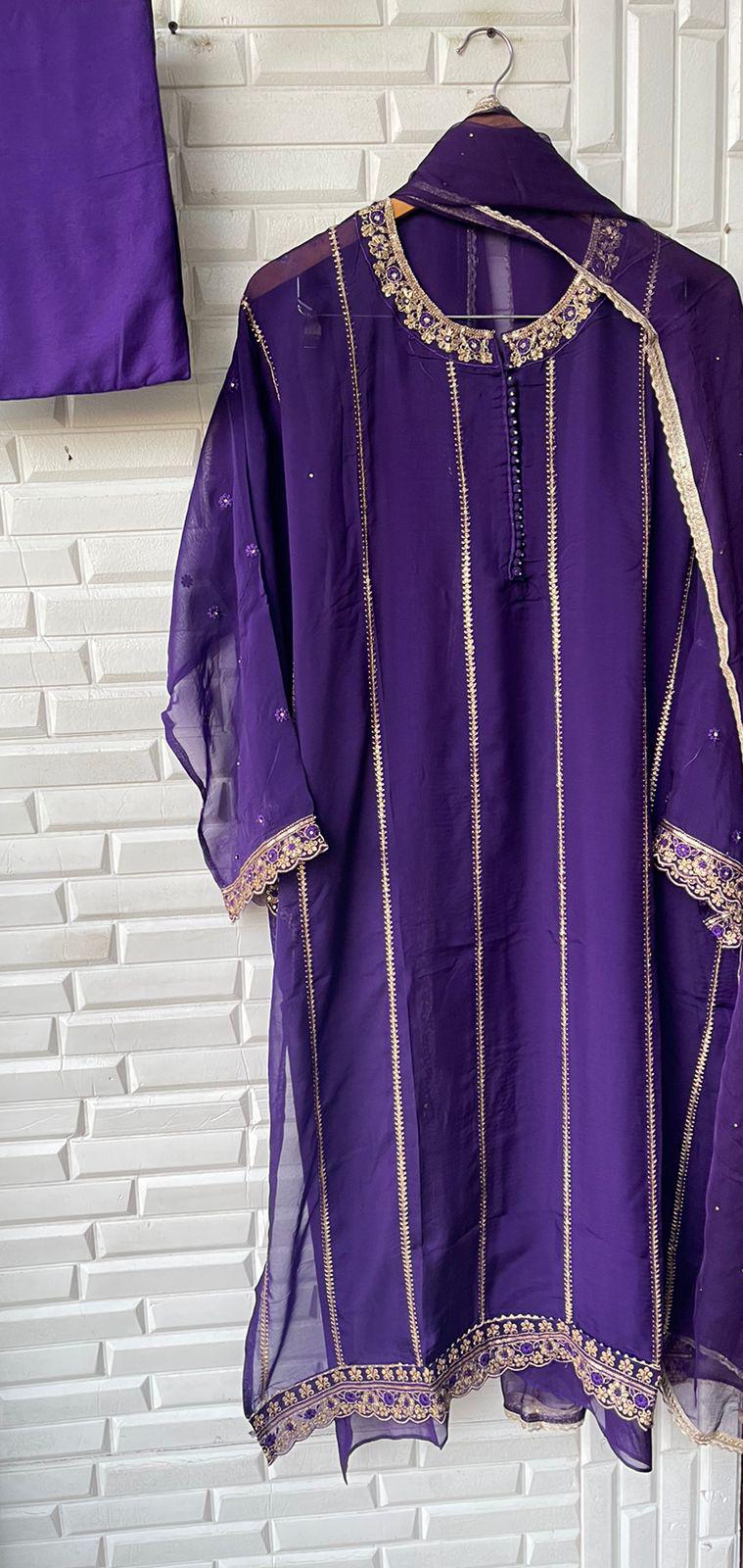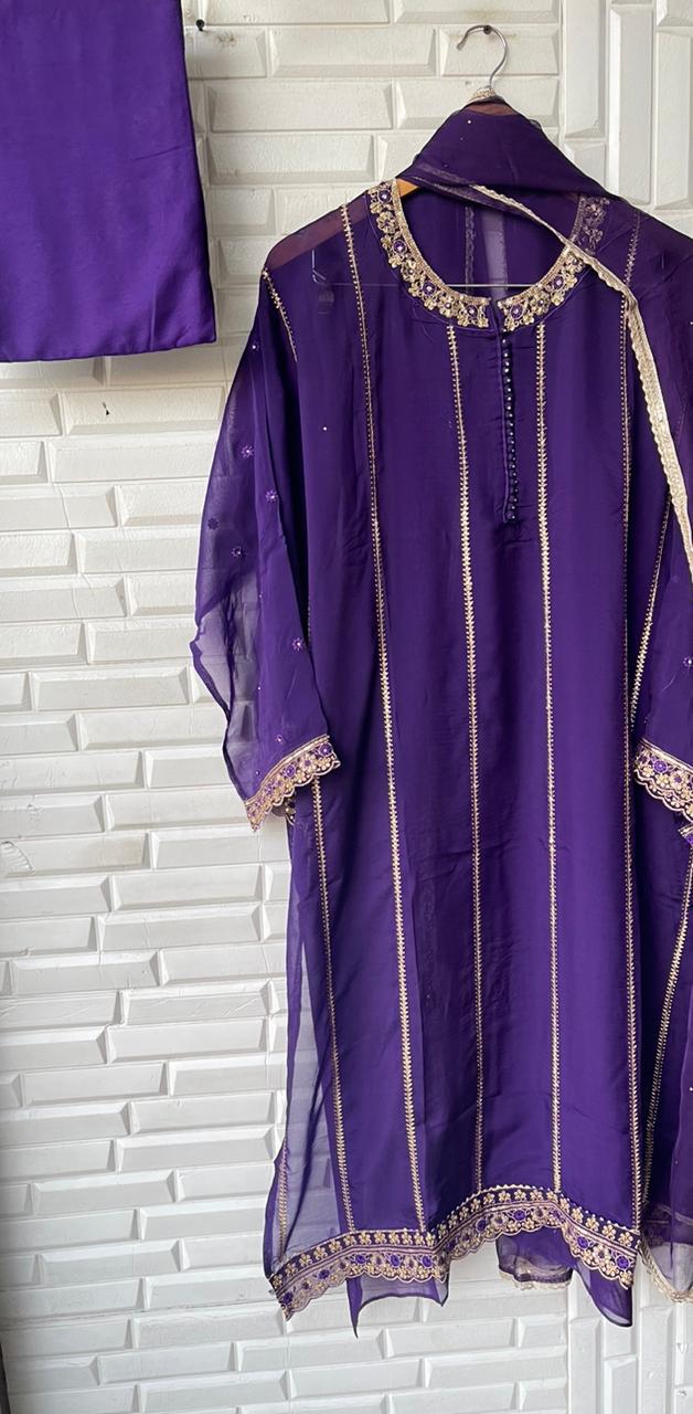 😊Organza semi stitched shirt with jarkan dabka sequins resham embroidery with sequins zari weaving