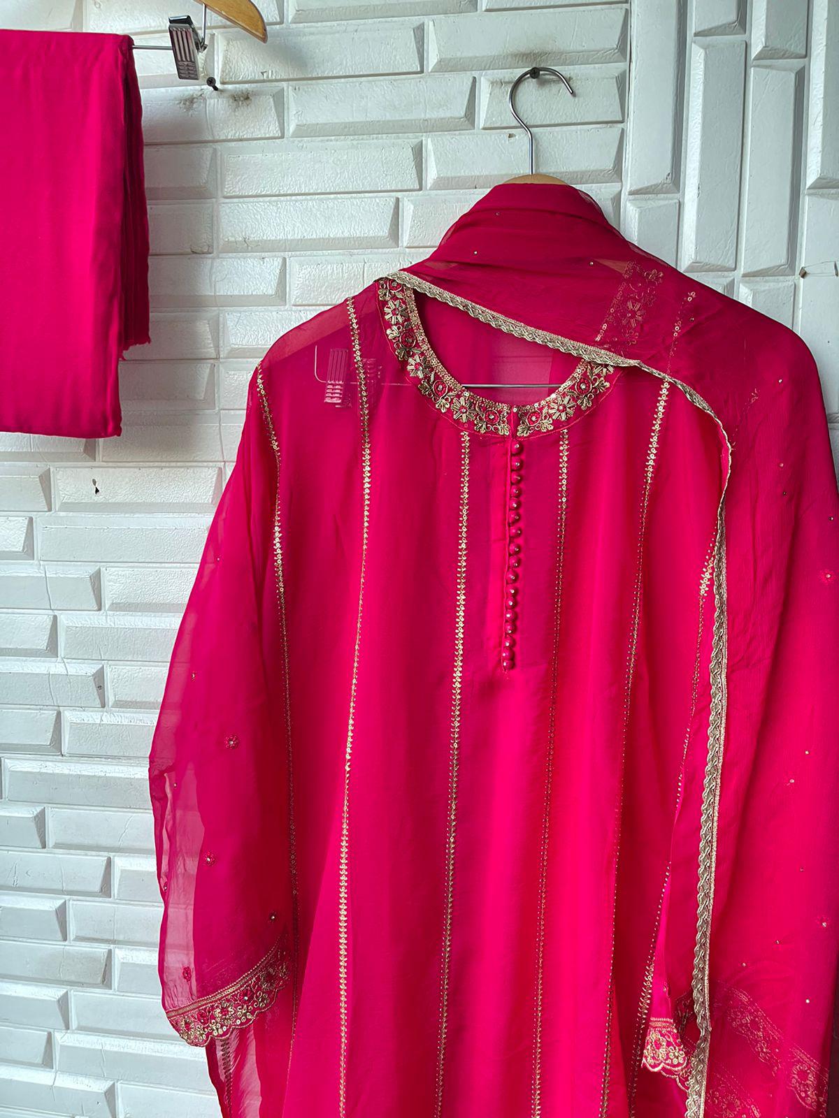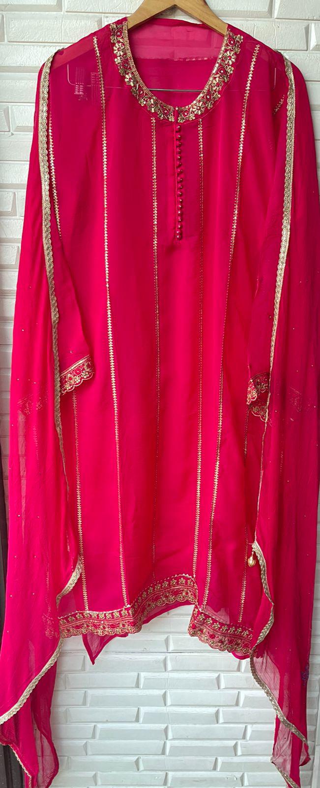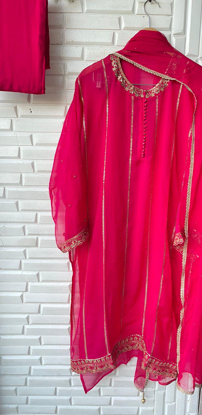😊Organza semi stitched shirt with jarkan dabka sequins resham embroidery with sequins zari weaving