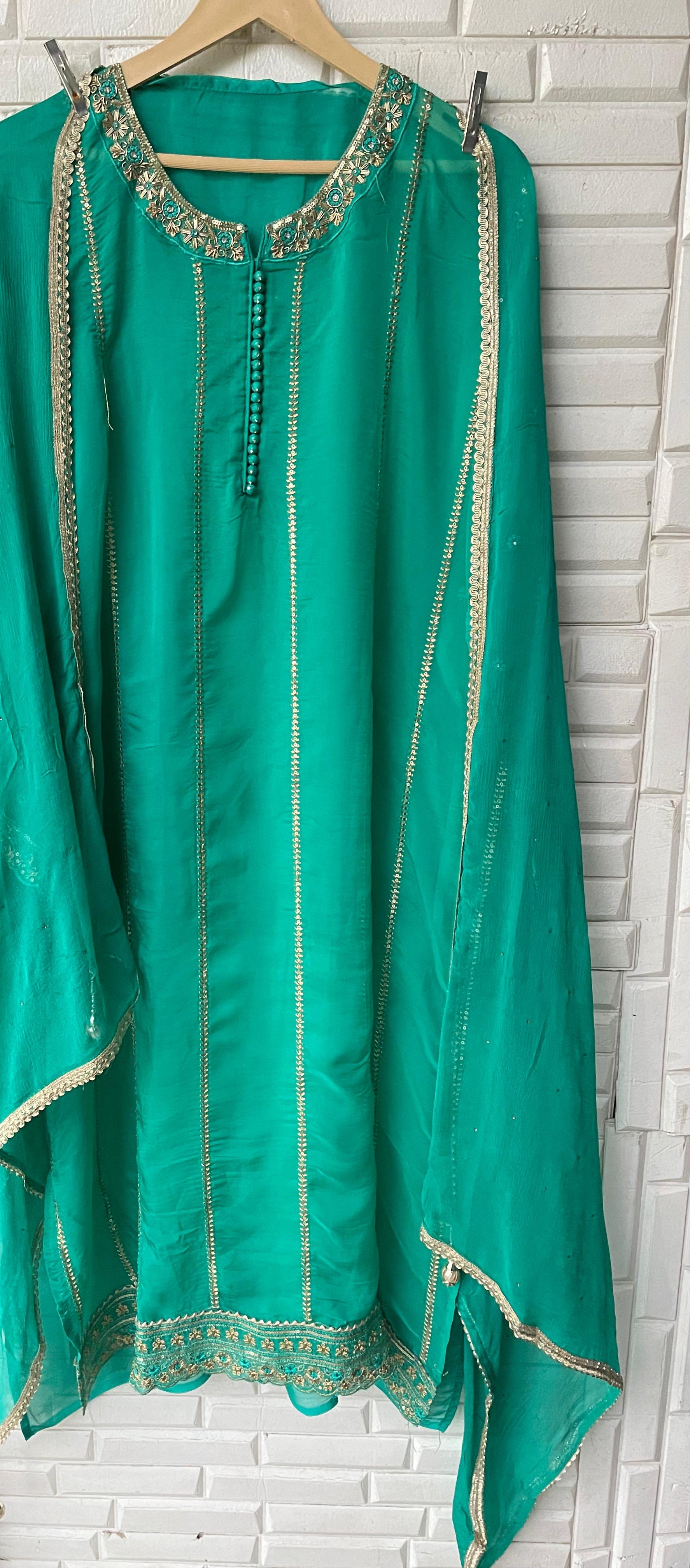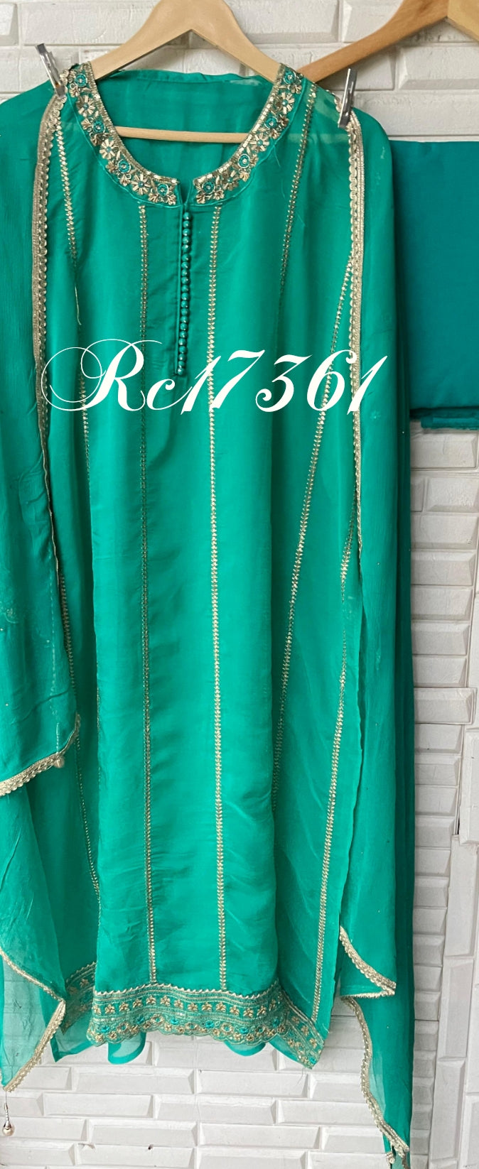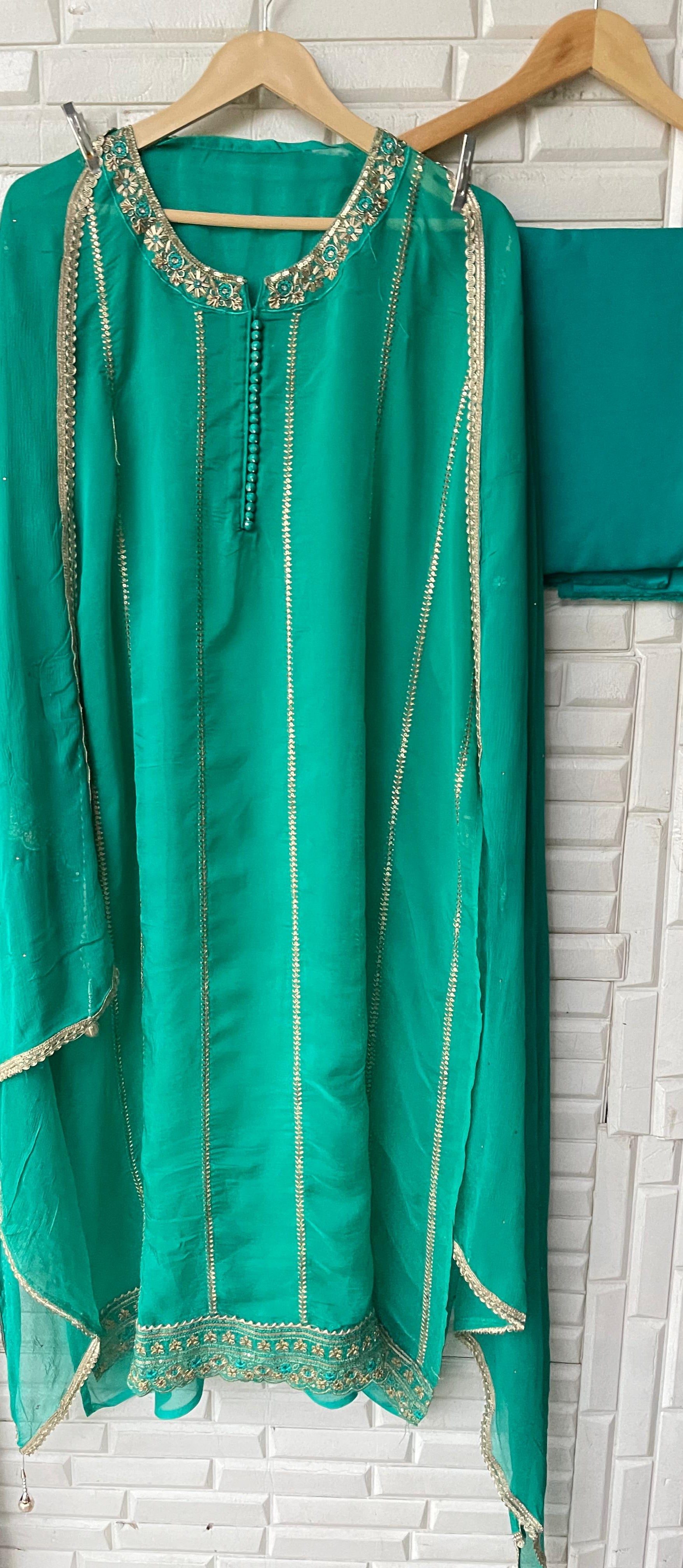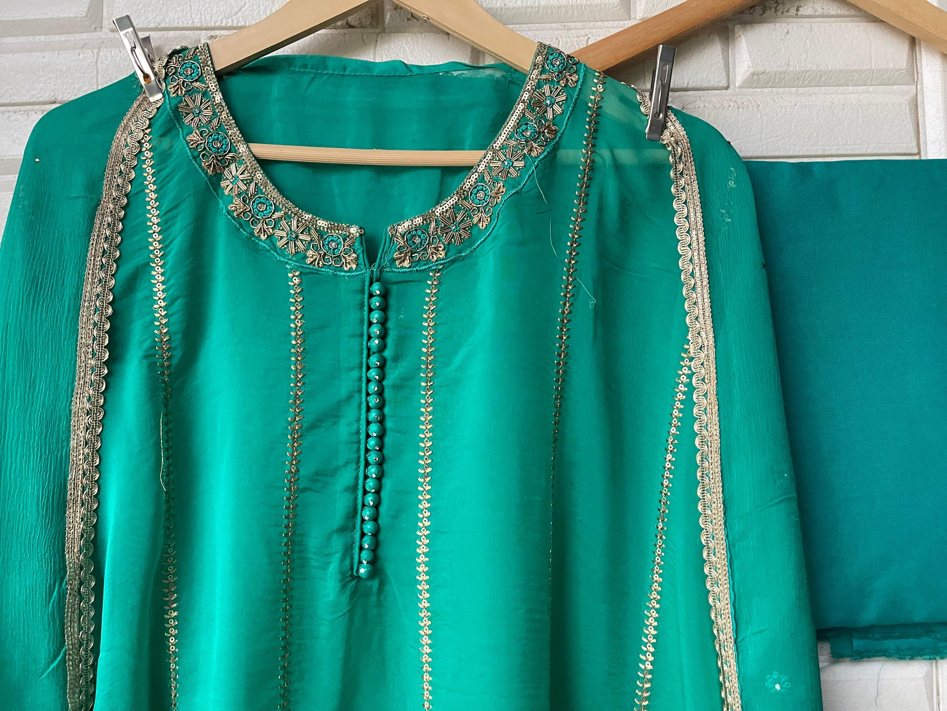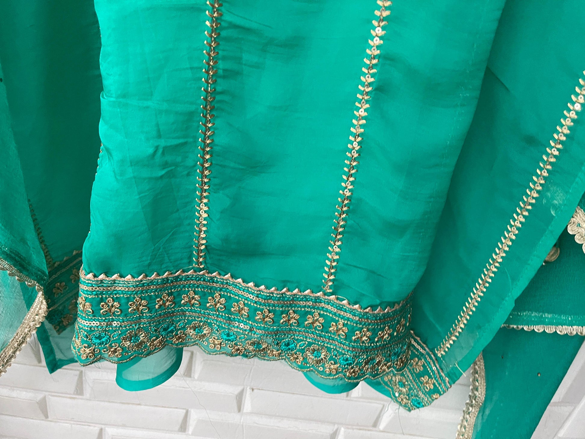😊Organza semi stitched shirt with jarkan dabka sequins resham embroidery with sequins zari weaving