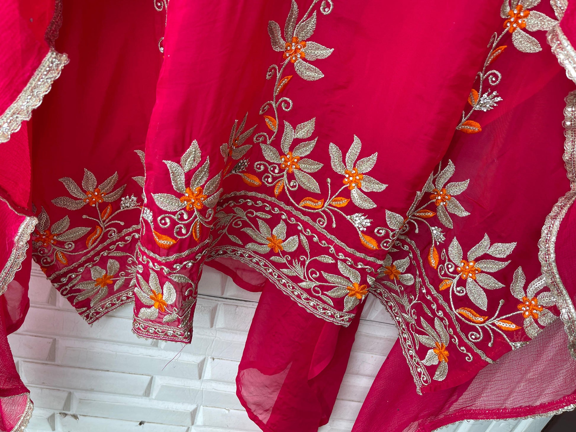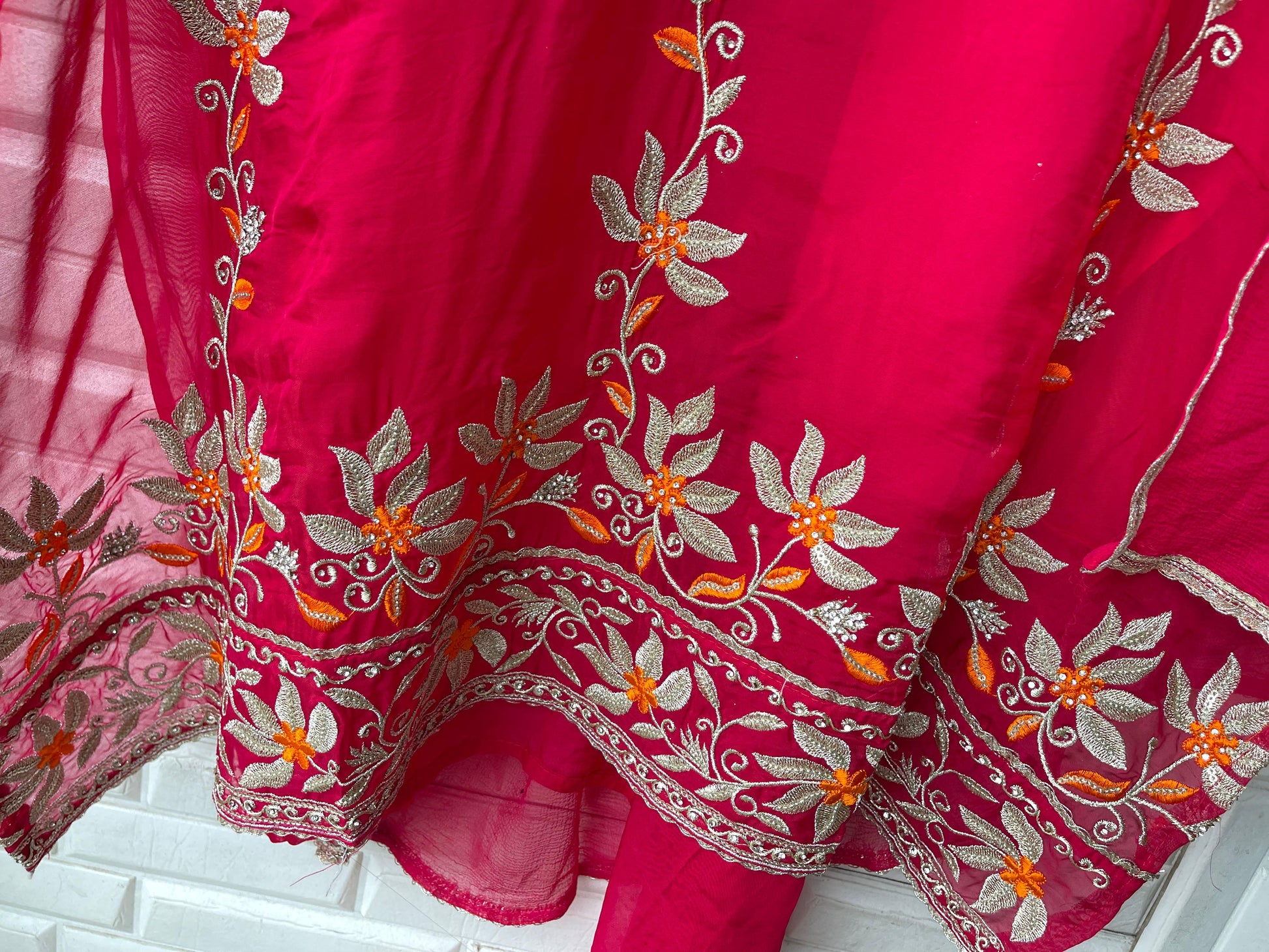 π organza fabric semi stitched shirt with resham zari swarowski embroidery