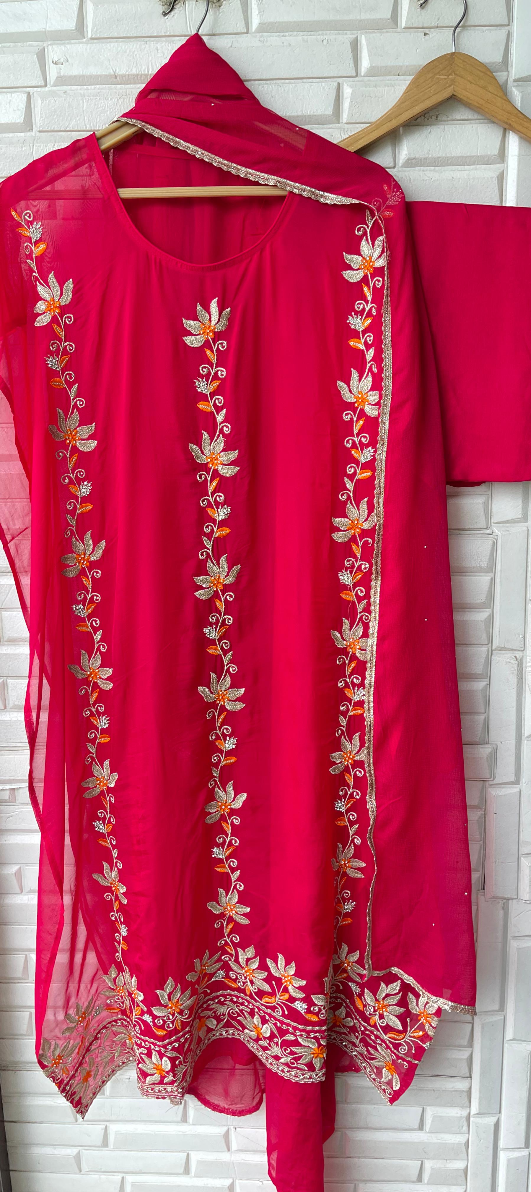 π pure chiffon fabric dupatta with border lace and swarowski highlighting