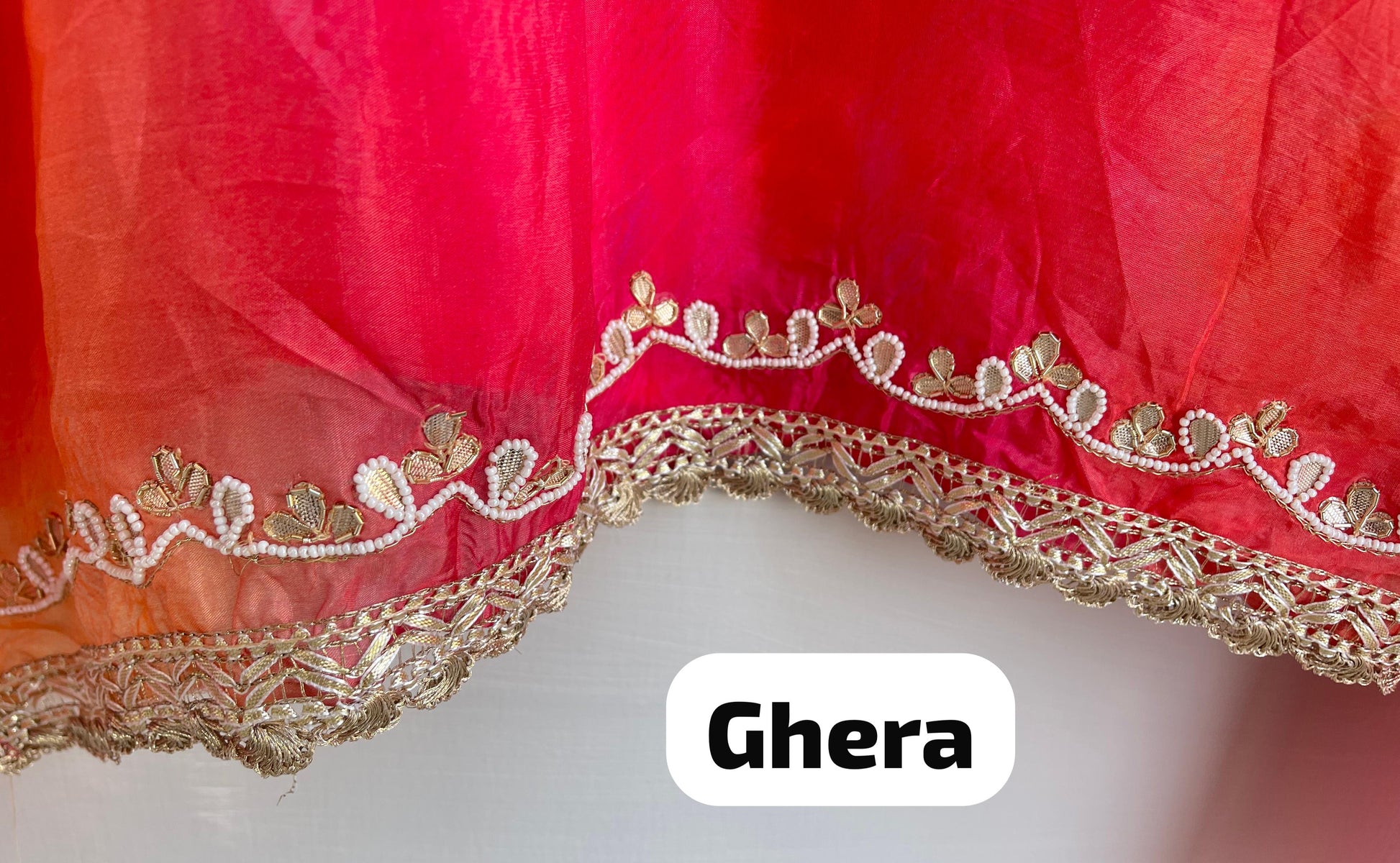 π organza shaded fabric unstitched shirt with gotta work pearl dabka zari kutdaana embroidery and kingri ghera lace