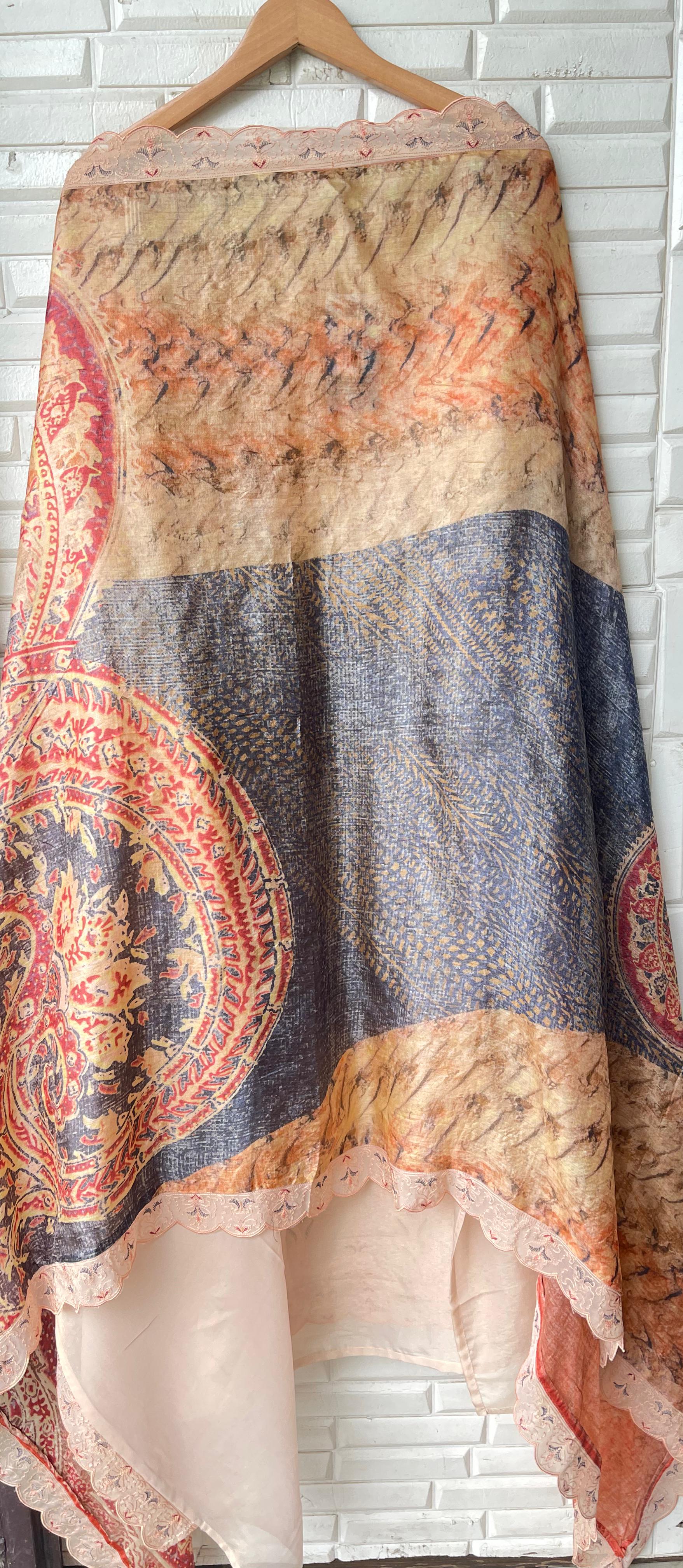 π pure silk printed fabric dupatta with scalping and resham embroidery