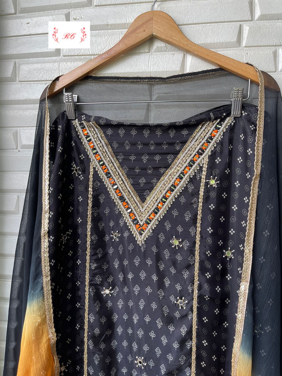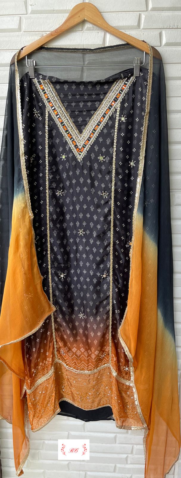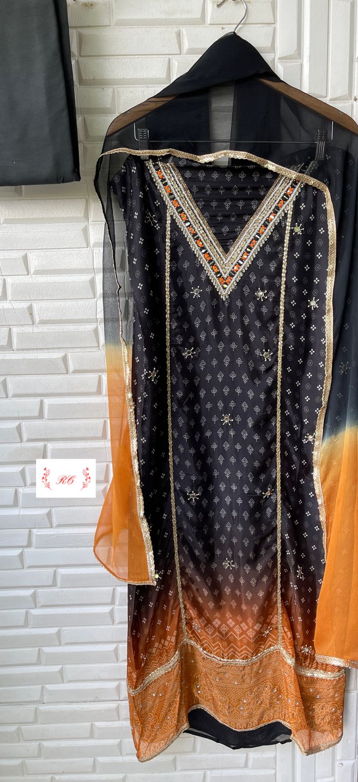 😊 organza silk fabric unstitched shirt with dabka kutdanna pearl zari sequence resham mirror work embroidery