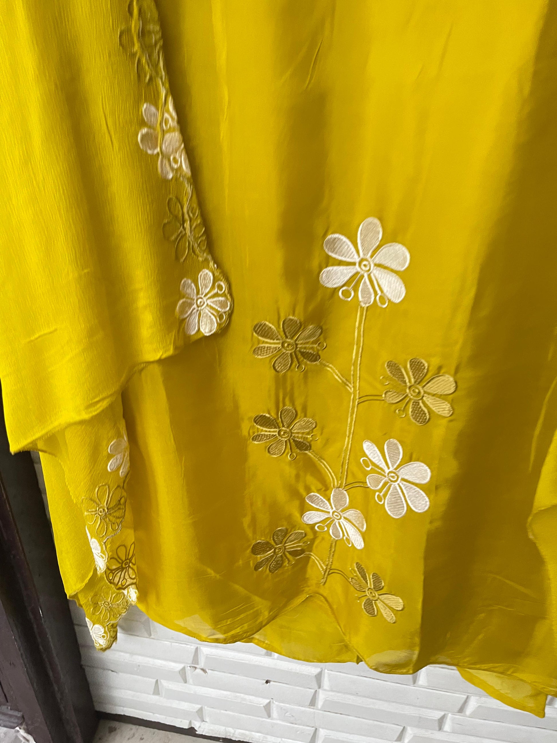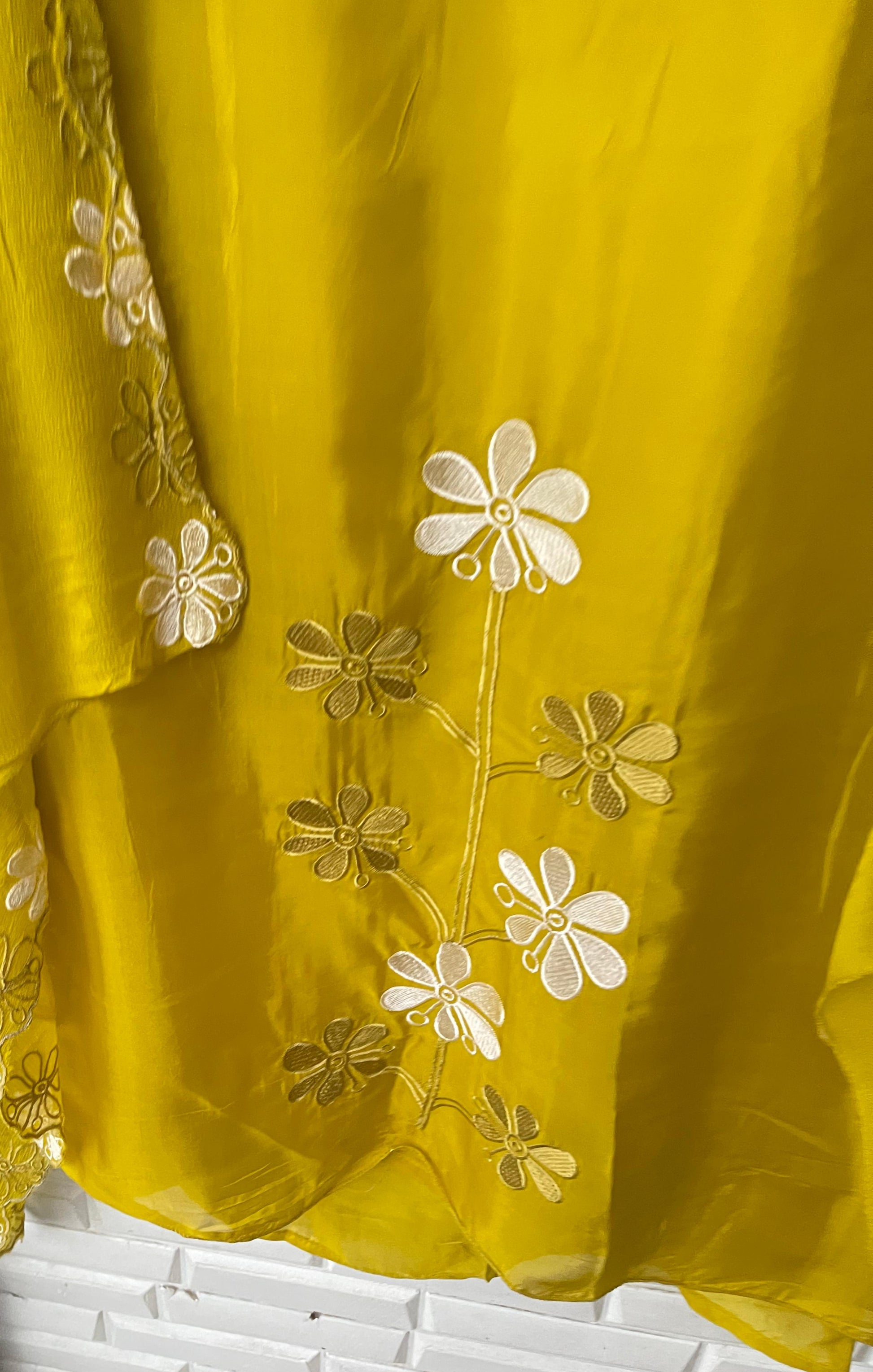 ๐ organza paper silk fabric un stitched shirt with resham embroidery with scalping