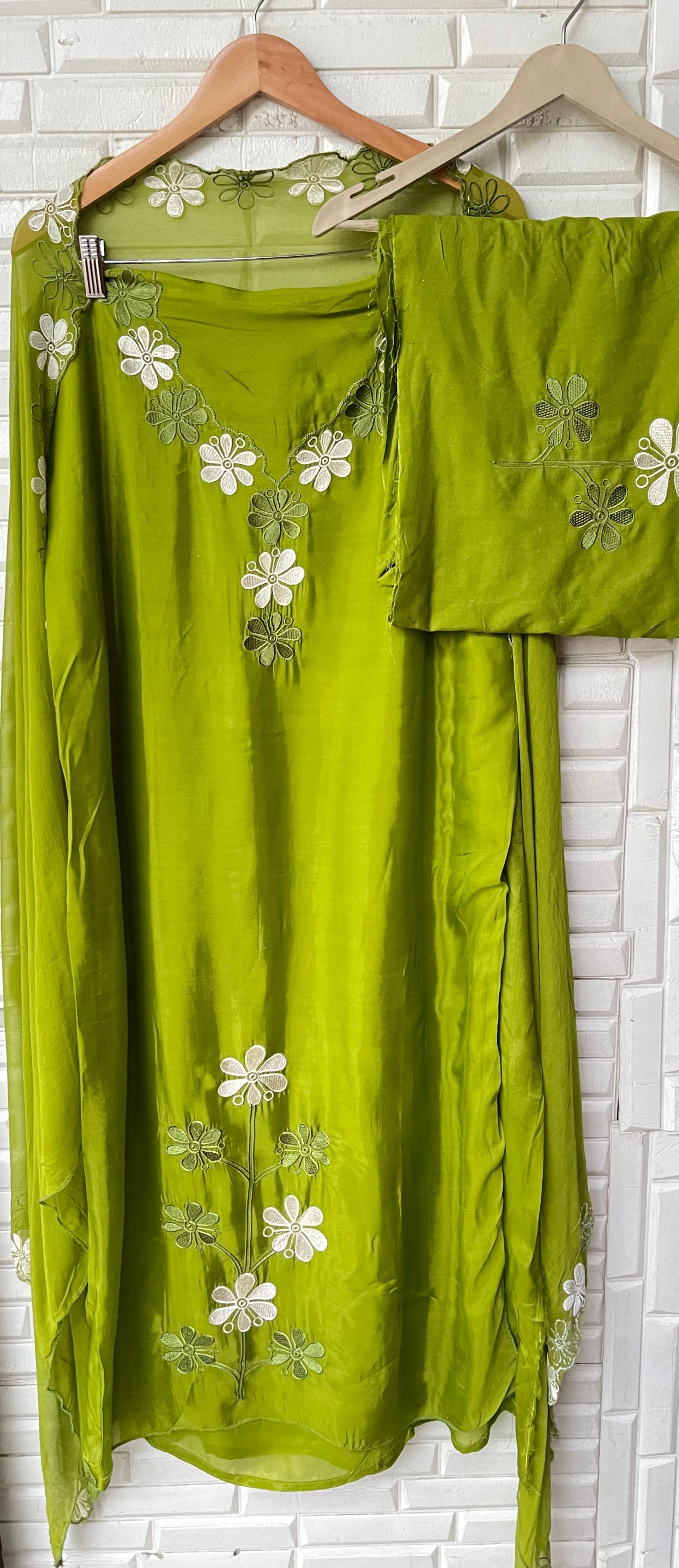 ๐ organza paper silk fabric un stitched shirt with resham embroidery with scalping