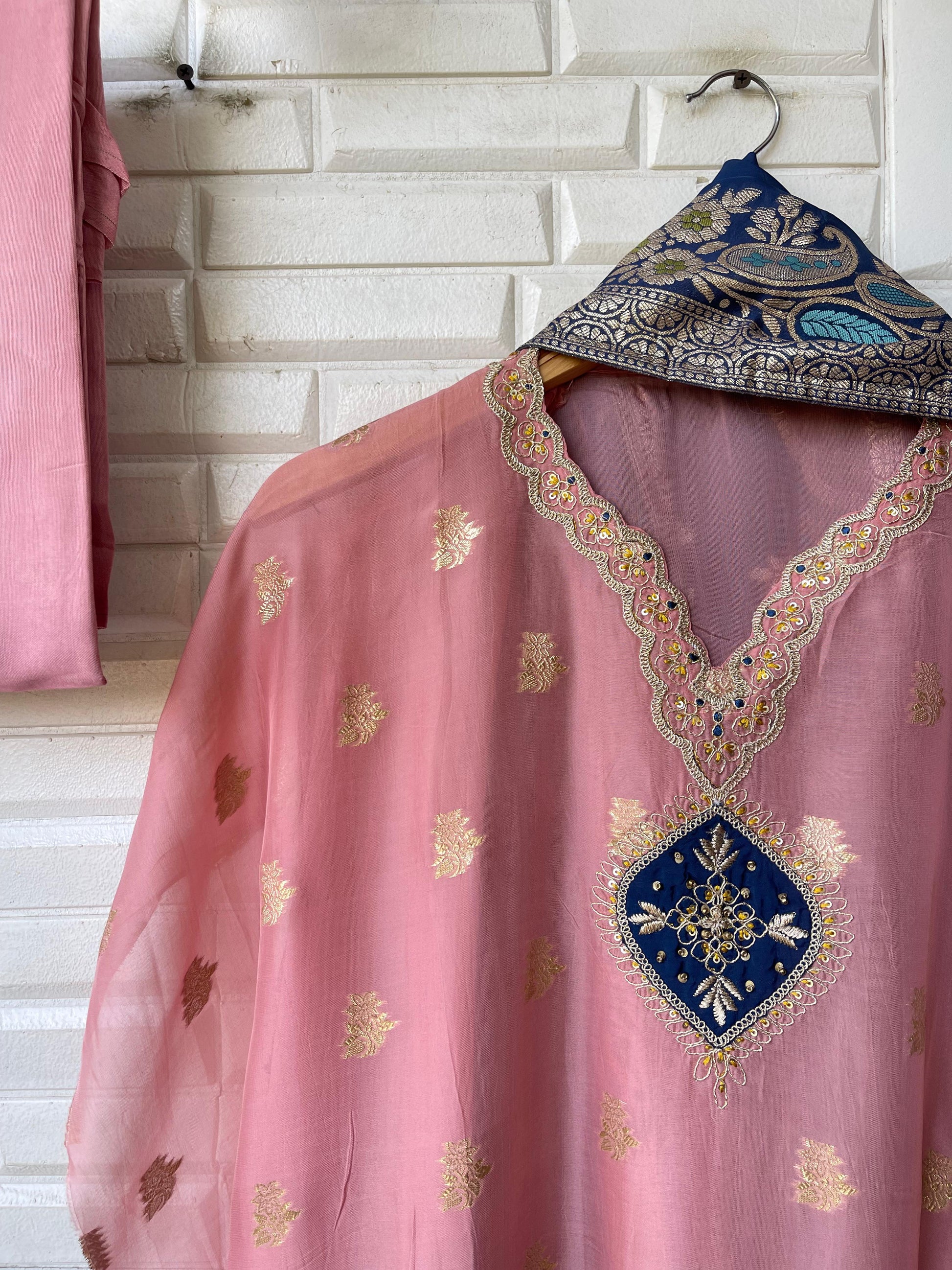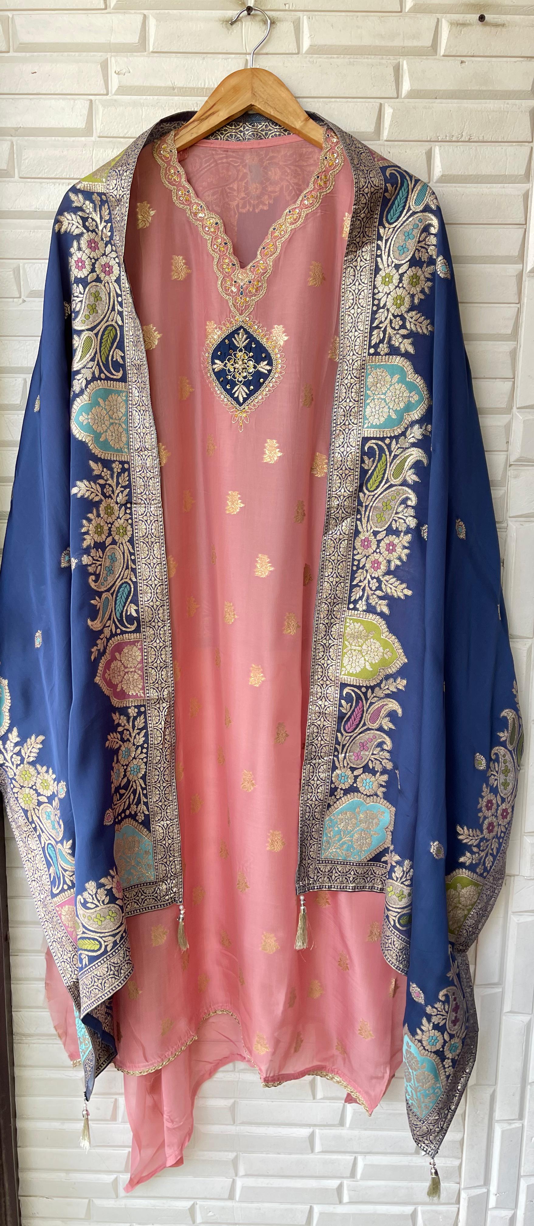 😊 banarasi organza fabric unstitched shirt with zari sequence pearl resham embroidery