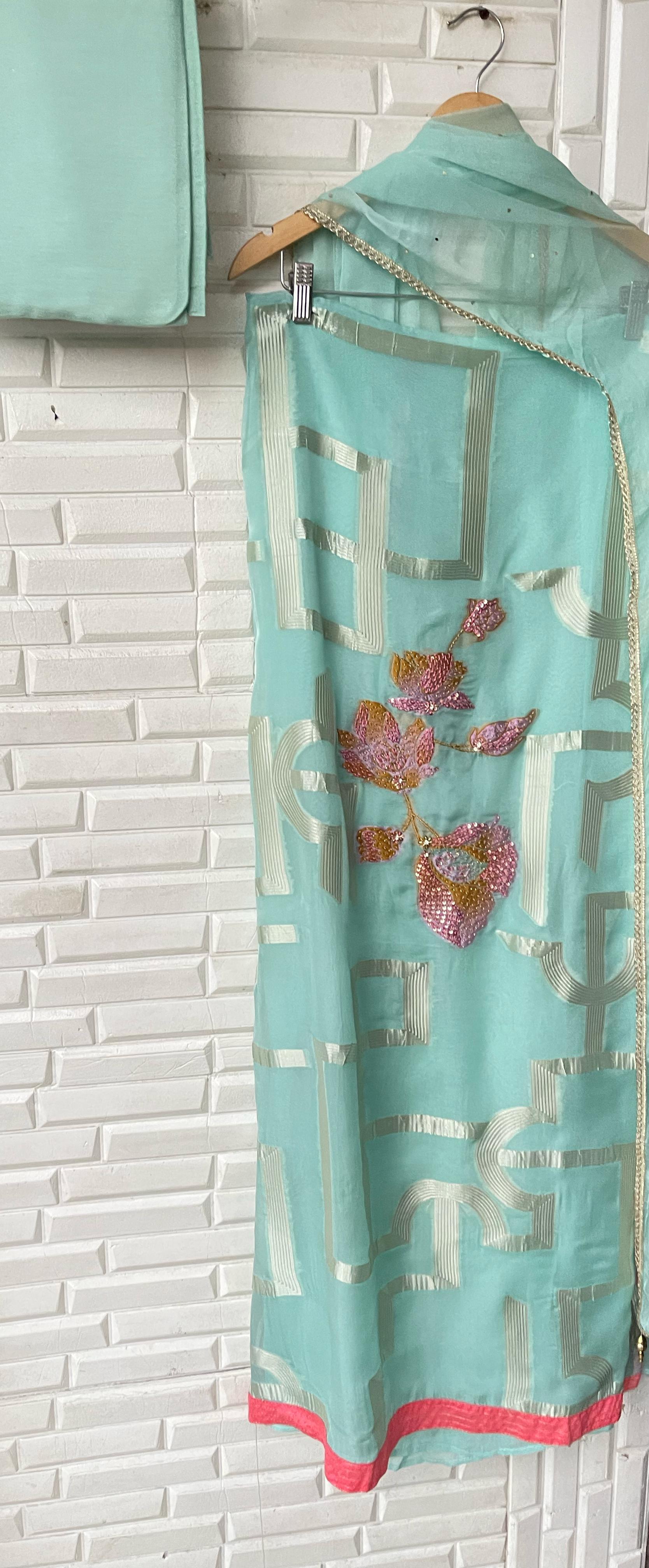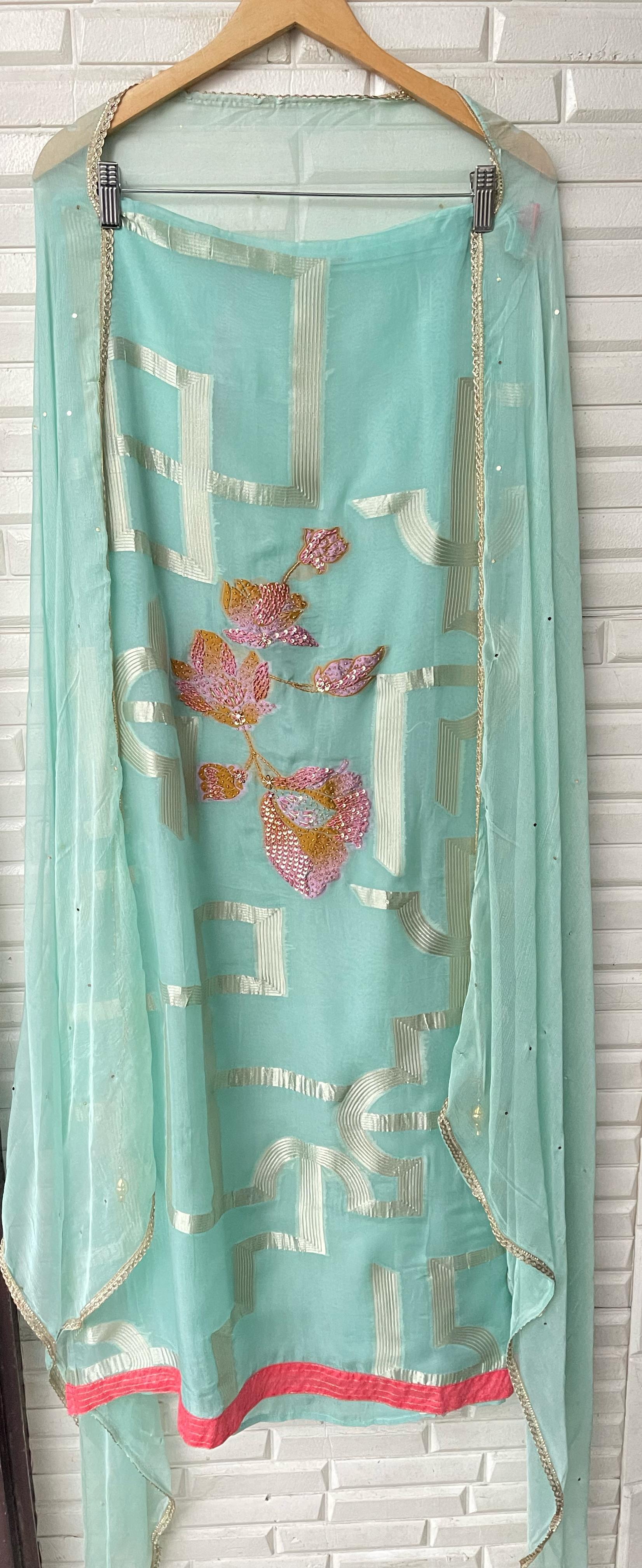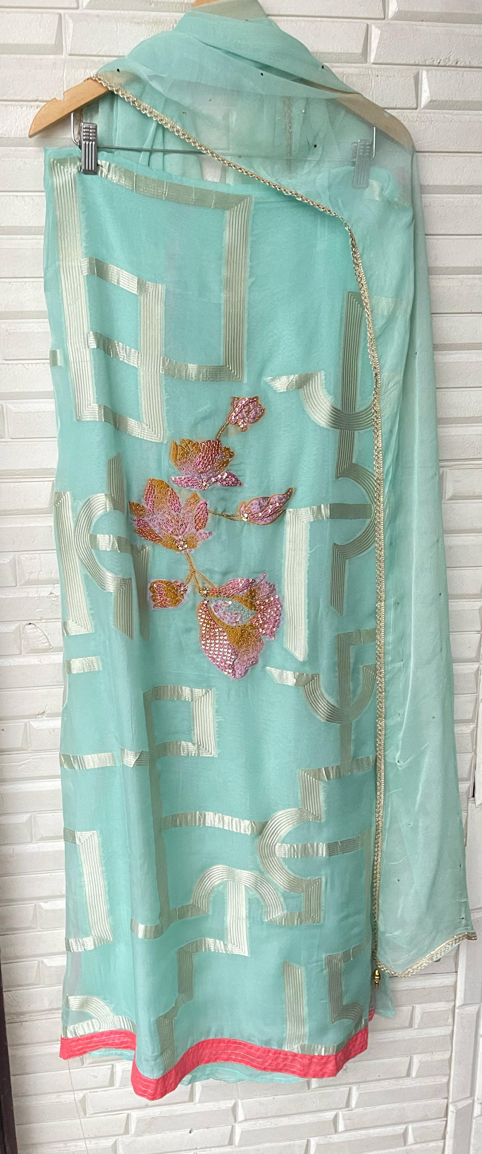 😊pure chiffon full size dupatta with lace with patri Chitta