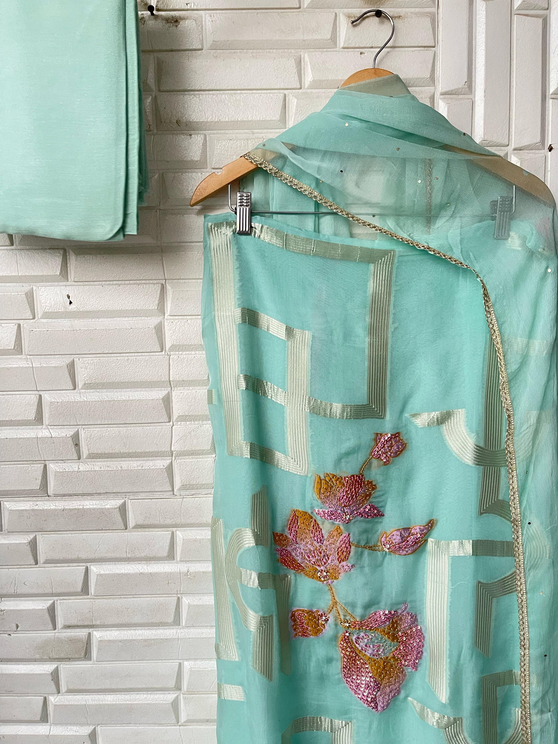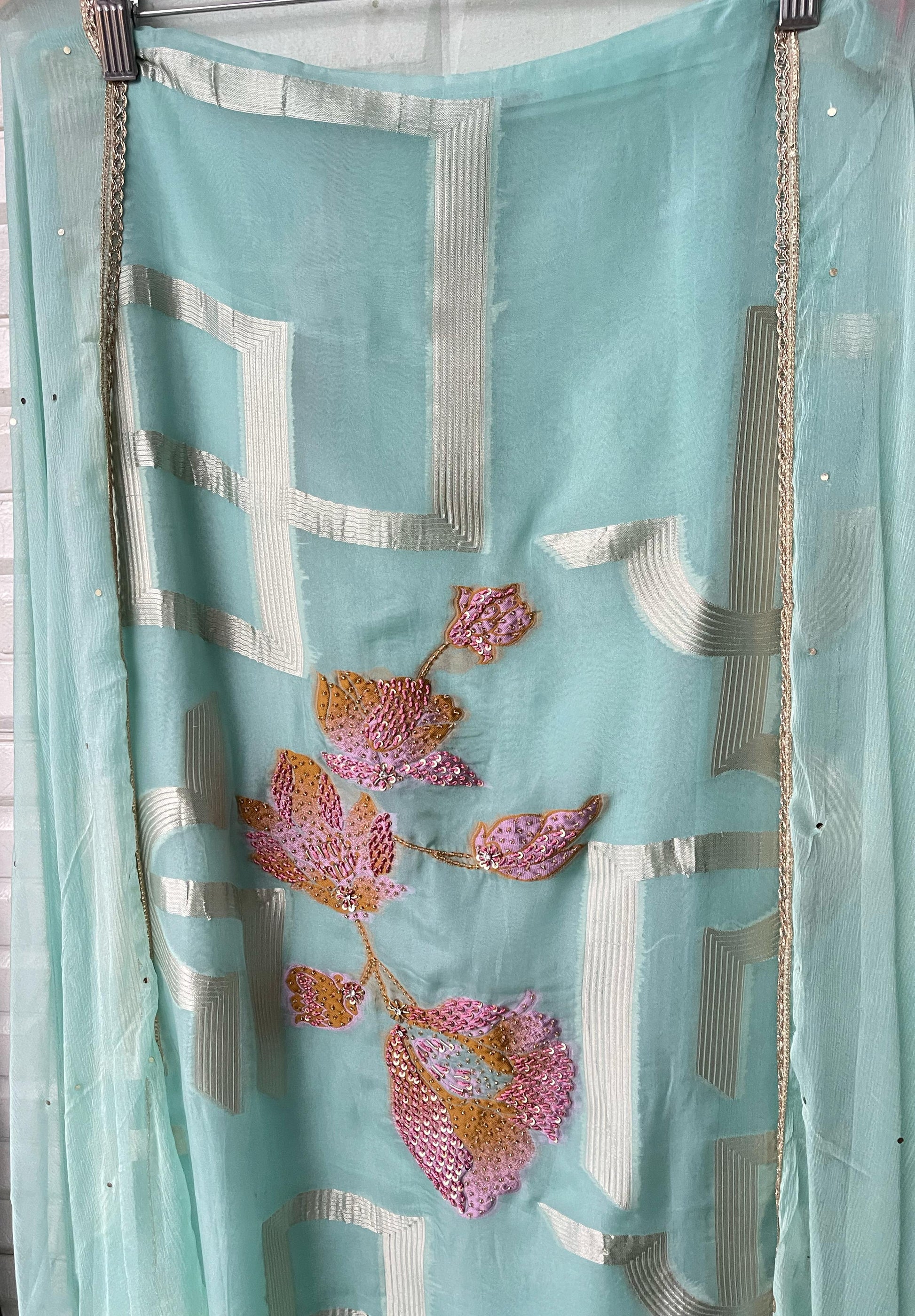 😊 stunning organza Banarsi unstitched shirt with sequins knots embroidery