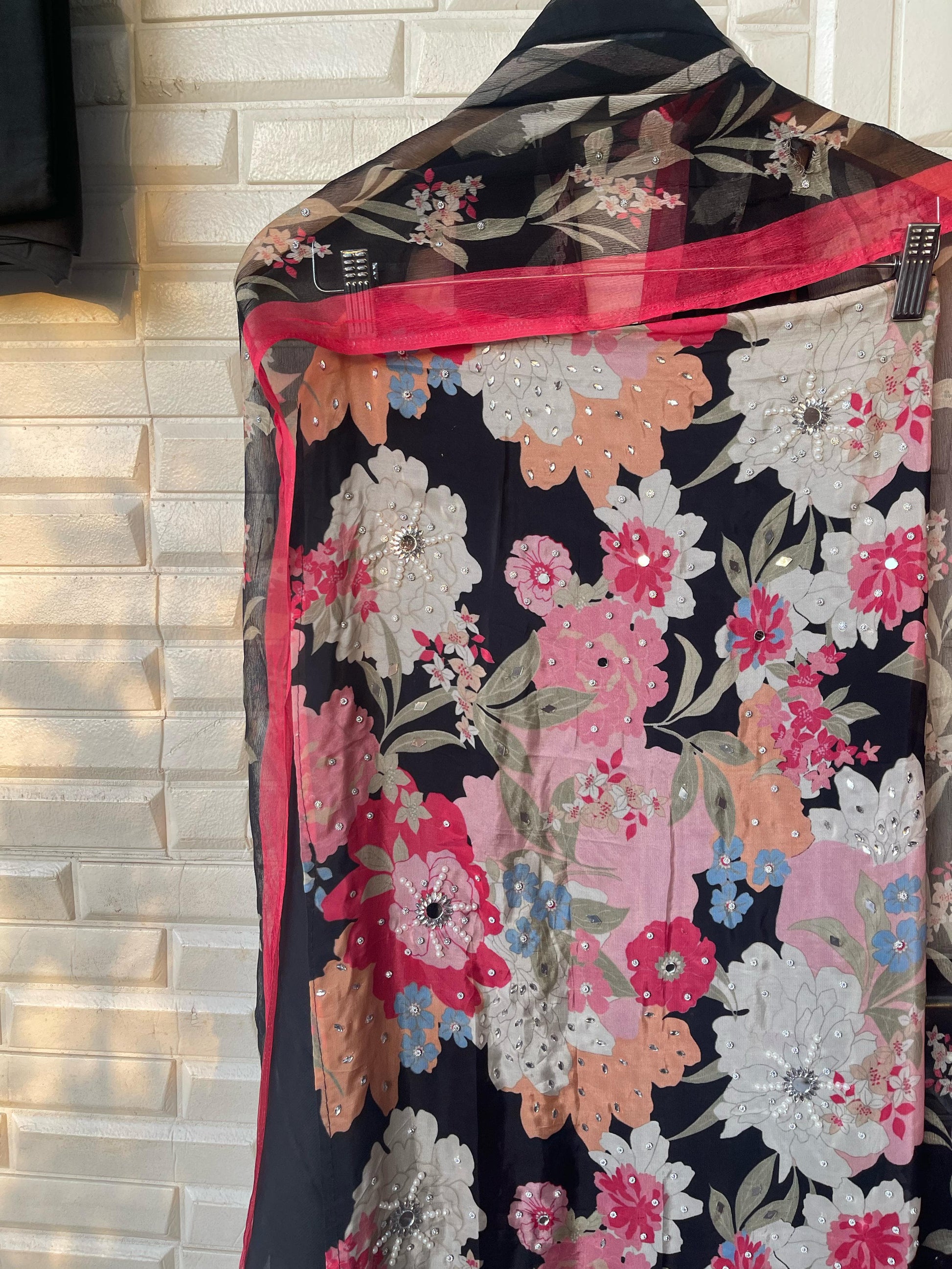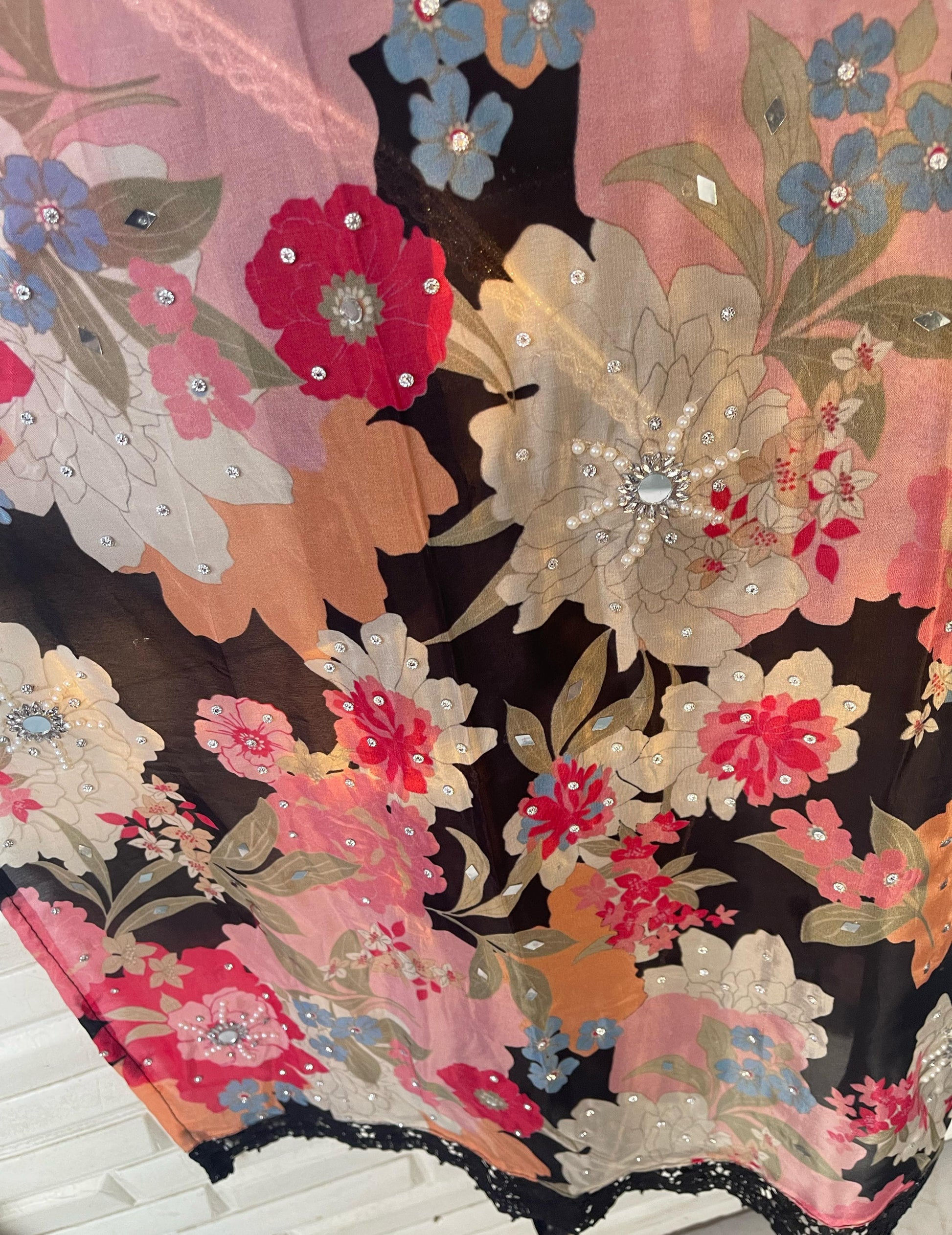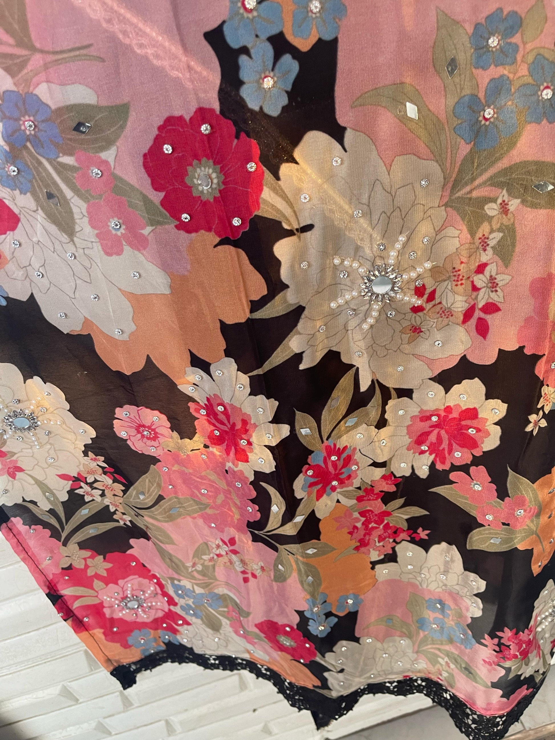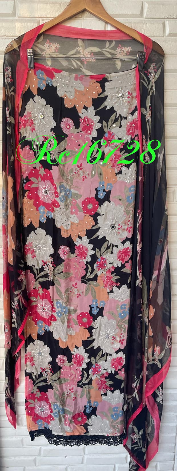 đ Organza printed fabric unstitched shirt with mirror work pearl sequence highlighting